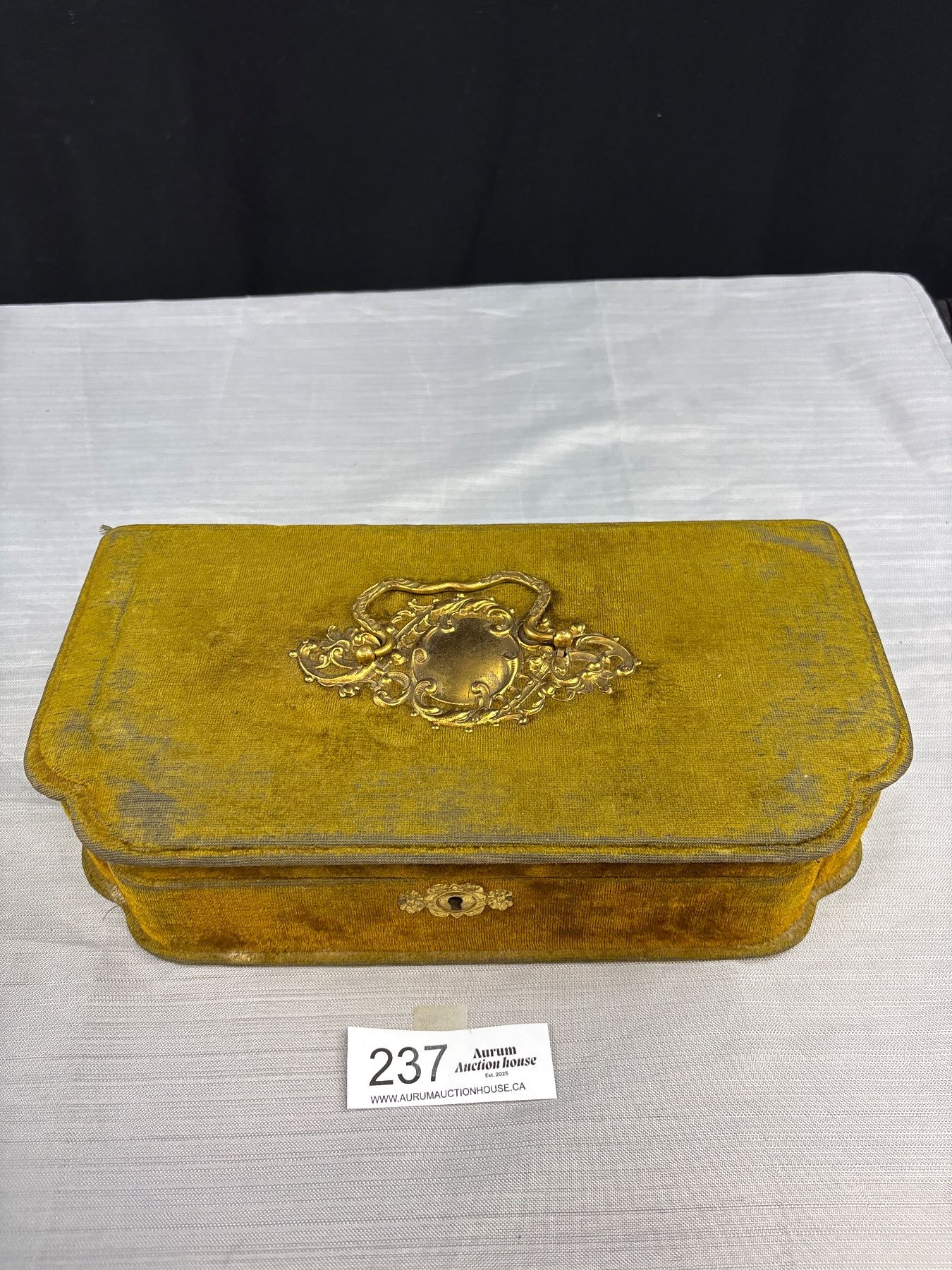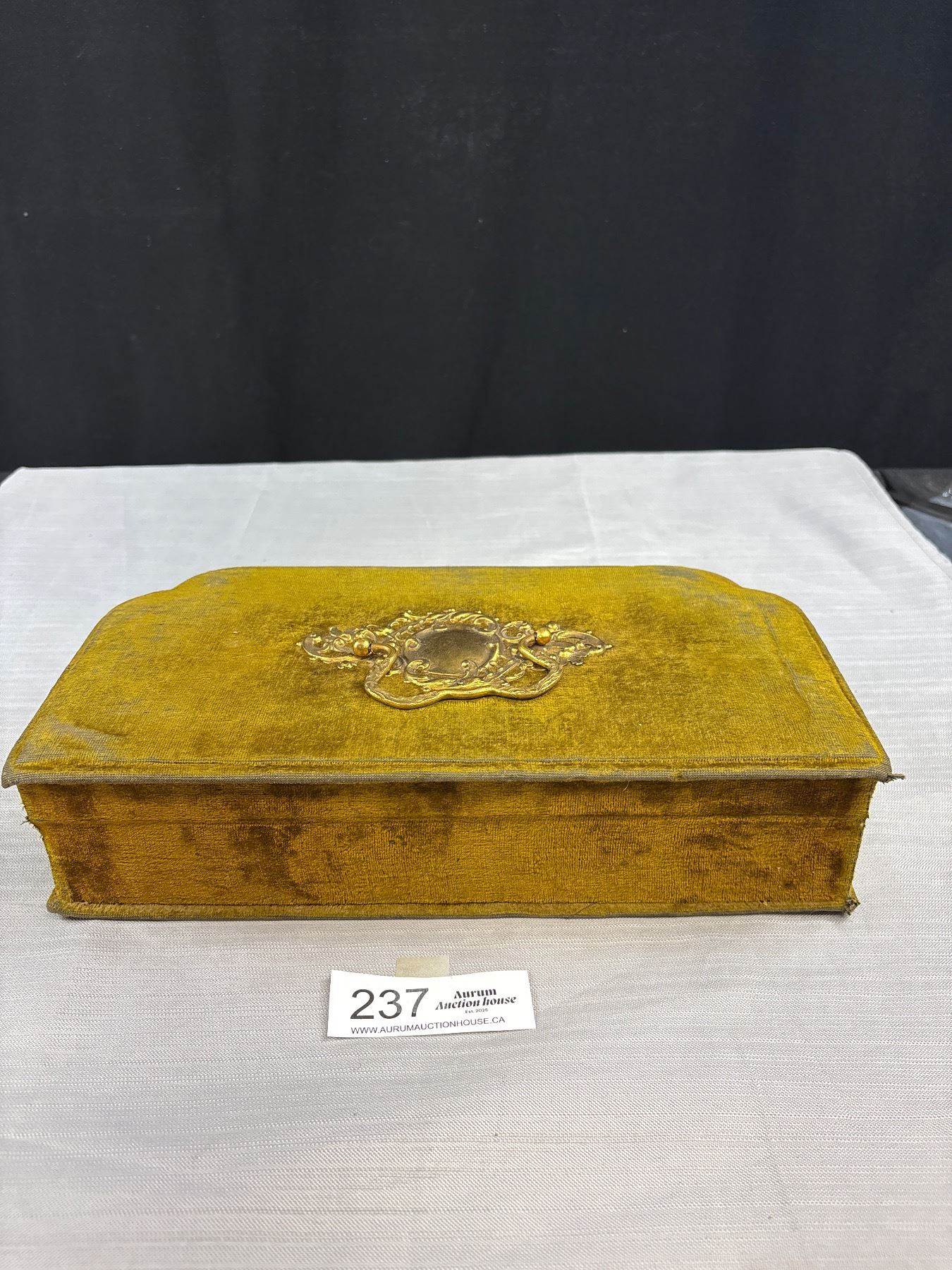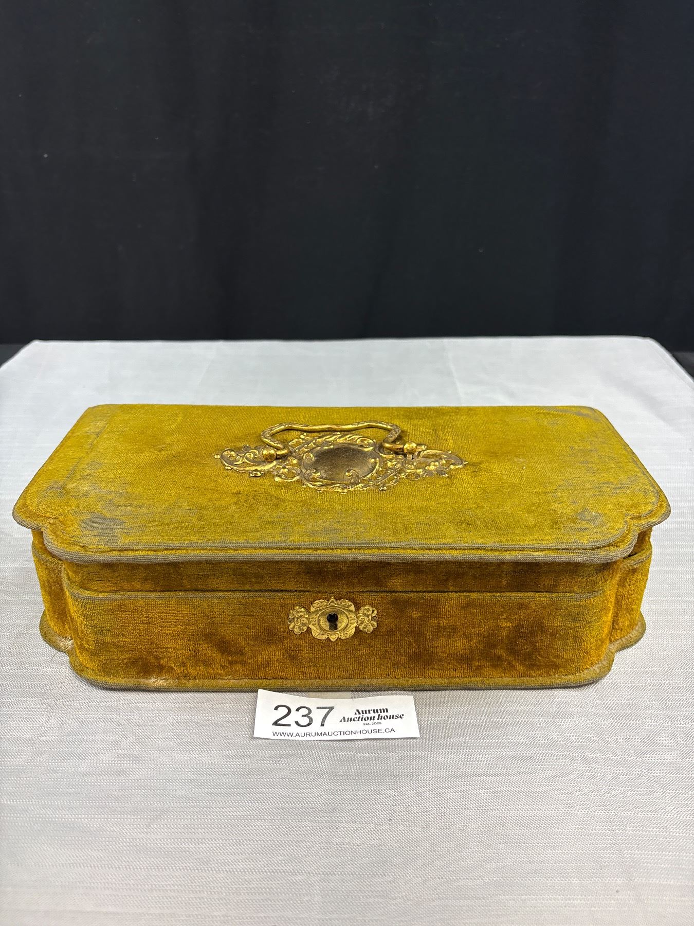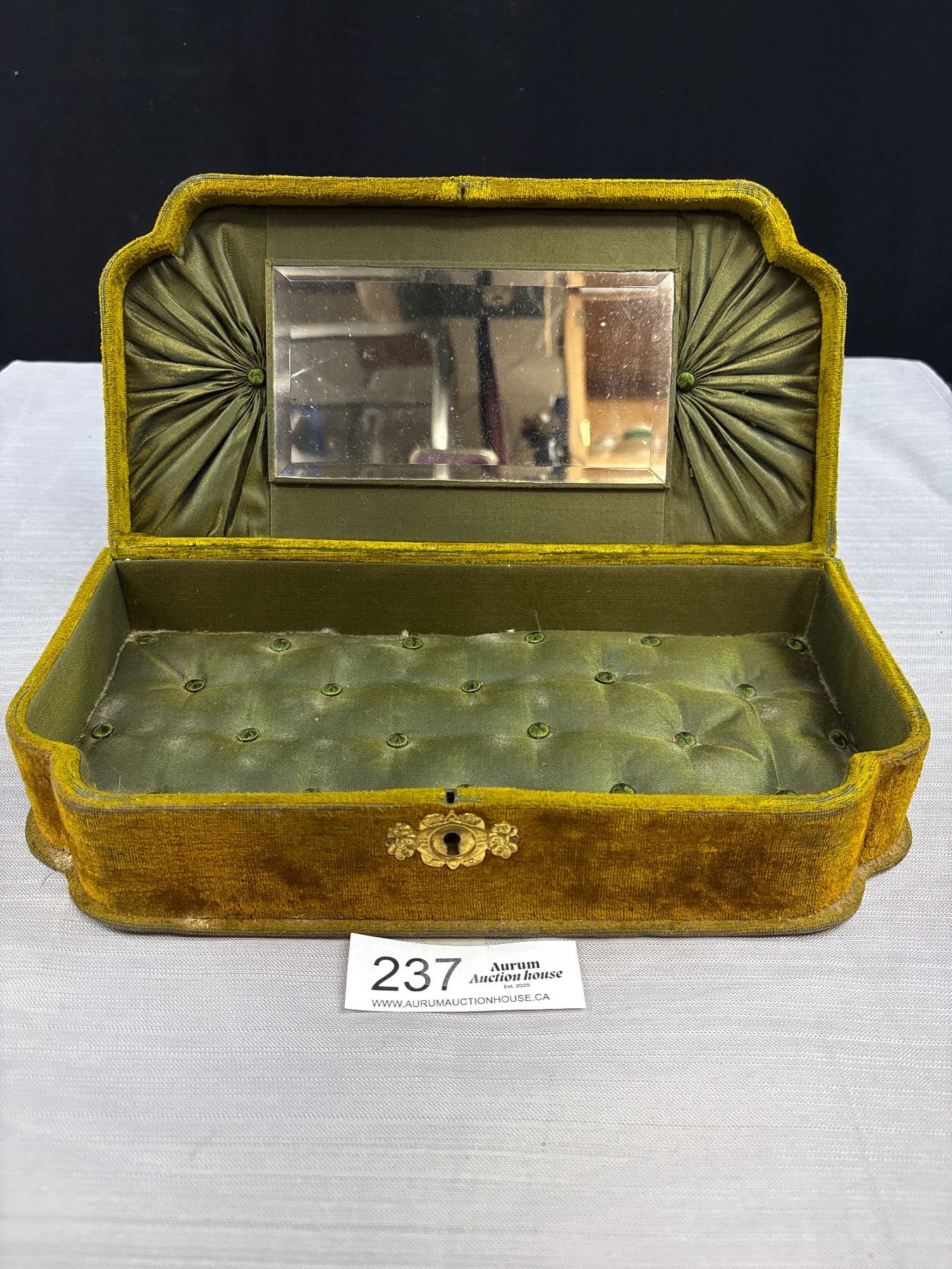 Lot 237 Antique Victorian Era Green Velvet Jewelry or Keepsake Box 12" Wide