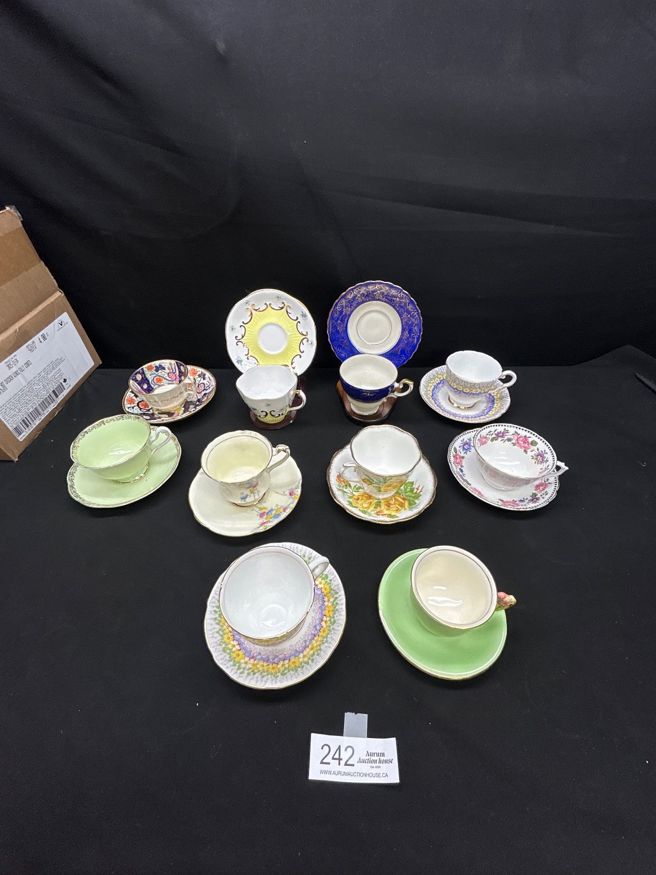 Lot 242 Lot of 10 Bone China Vintage Teacups and Saucers