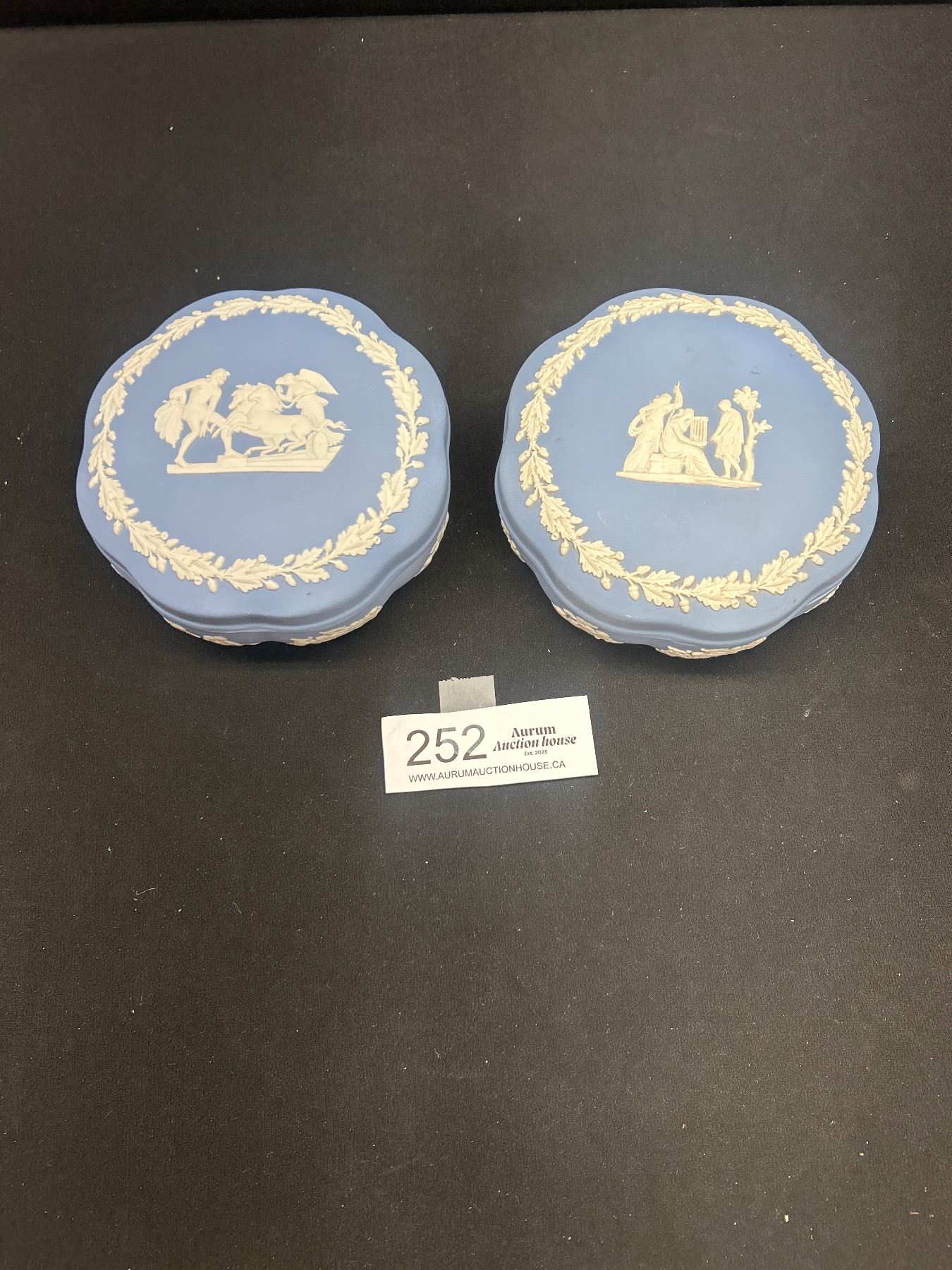 Lot 252 2 Vintage 5.5" Dia Wedgewood Trinket Boxes