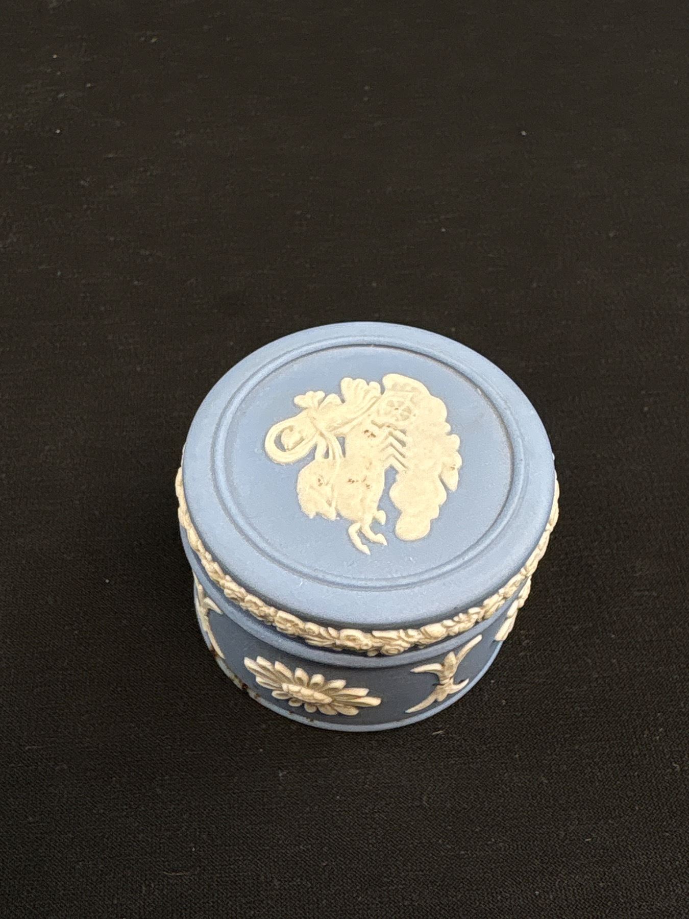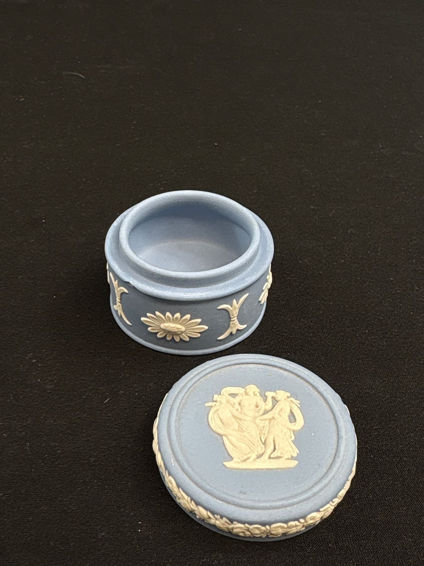 2 Small Wedgewood Jasperware Round Trinket Boxes