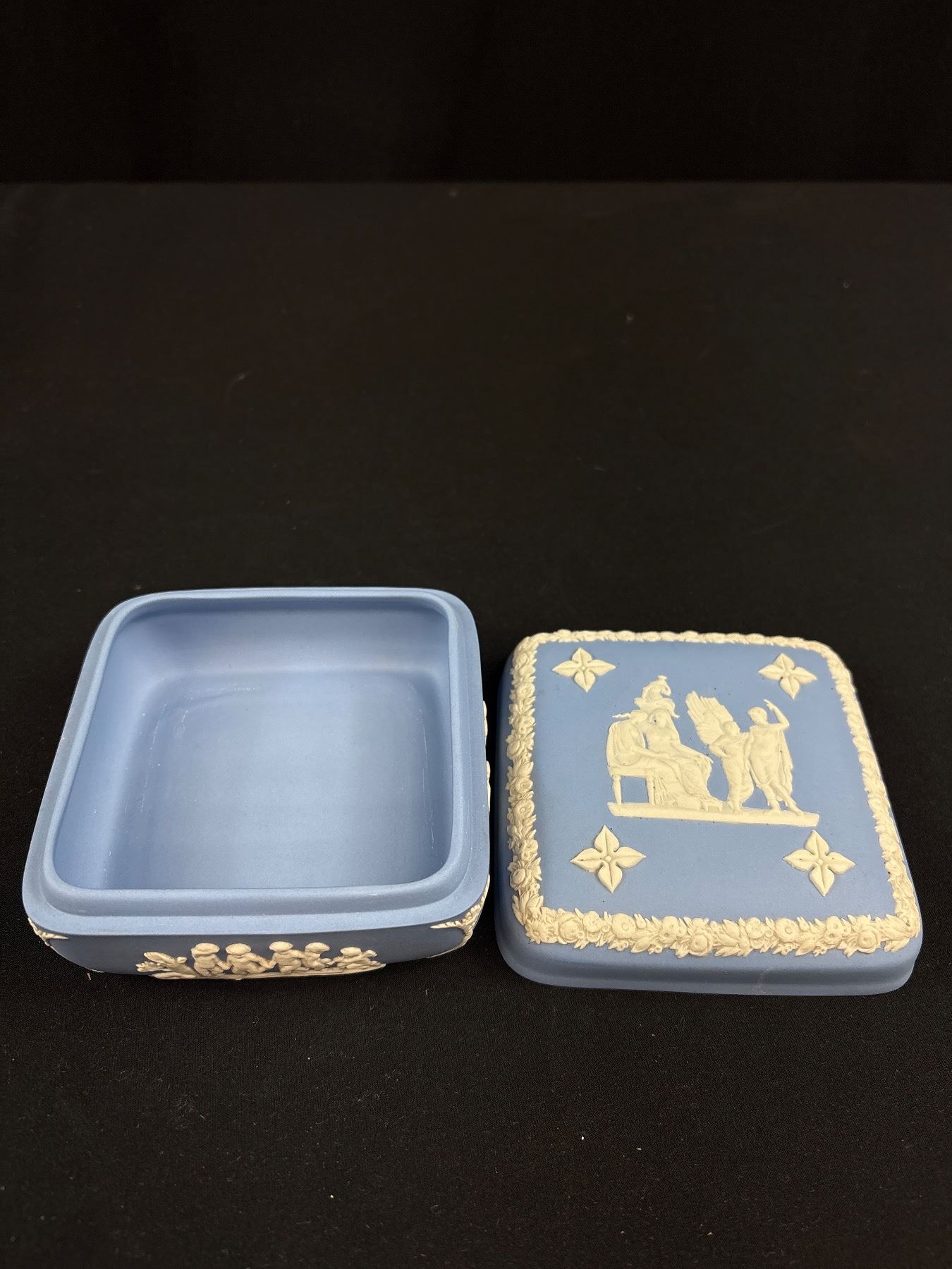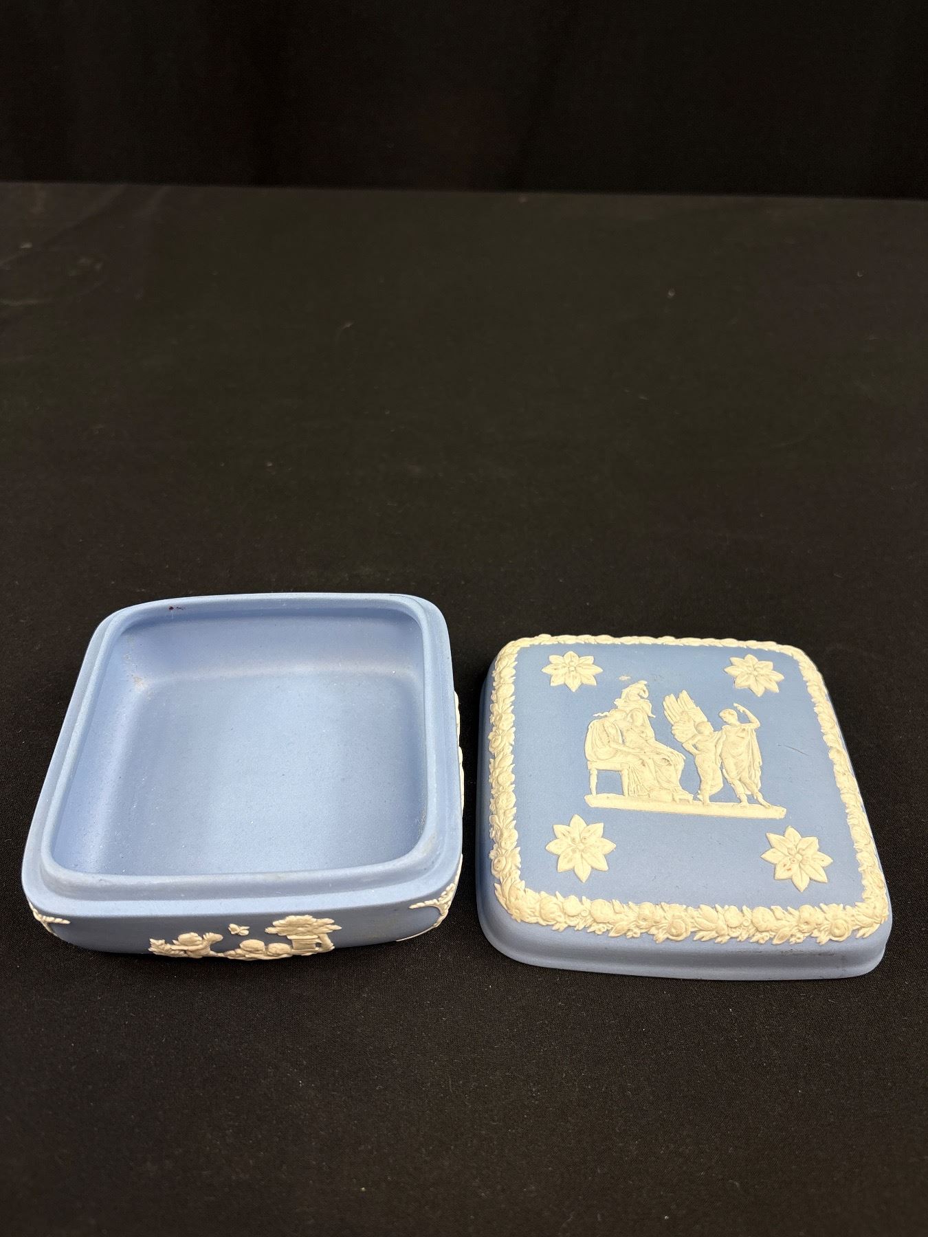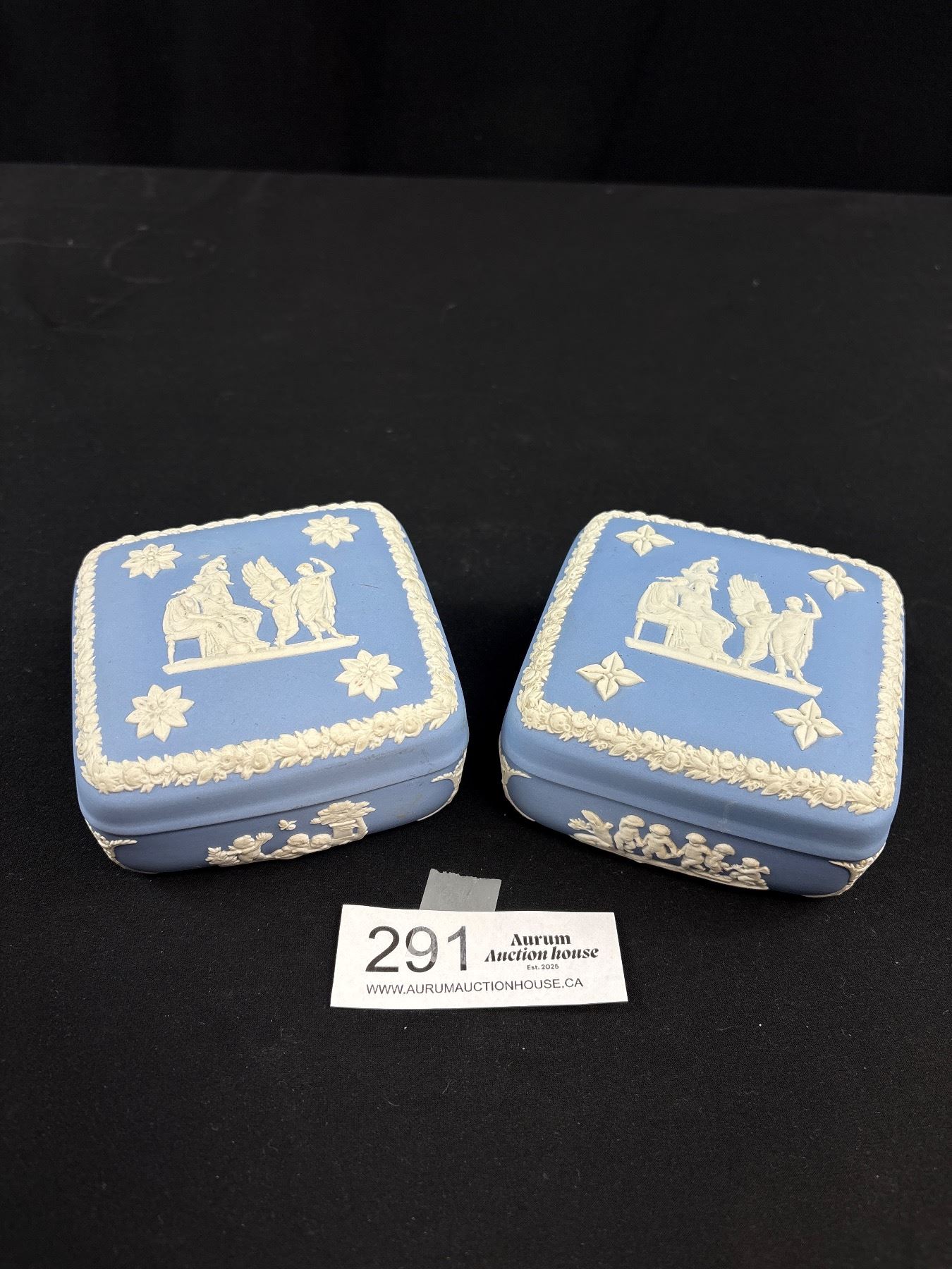 Lot 291 2 Vintage Light Blue Lidded Trinket Boxes Wedgewood Jasperware