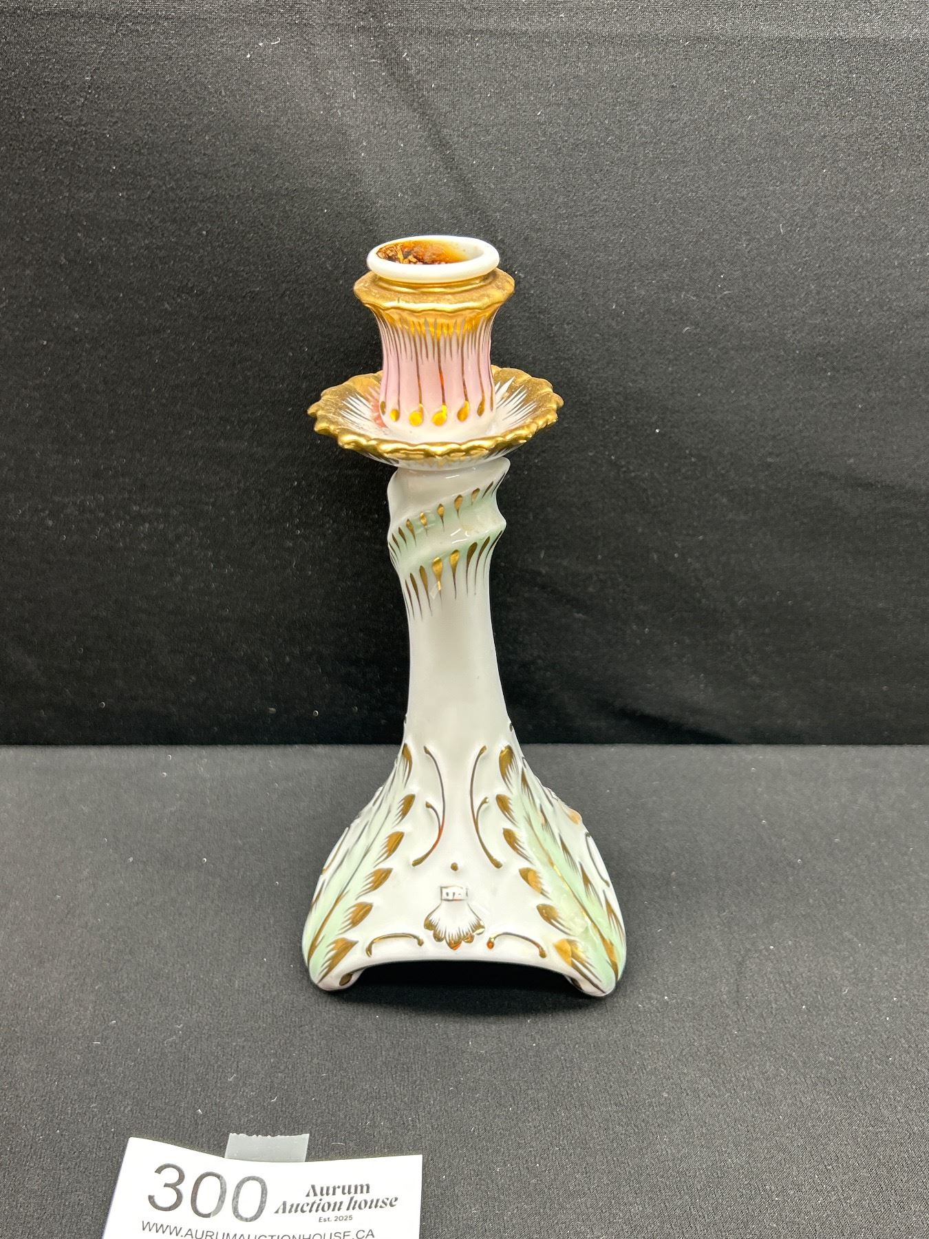 Lot 300 Vintage Hollohaza Hungary Hand Painted Porcelain Candlestick