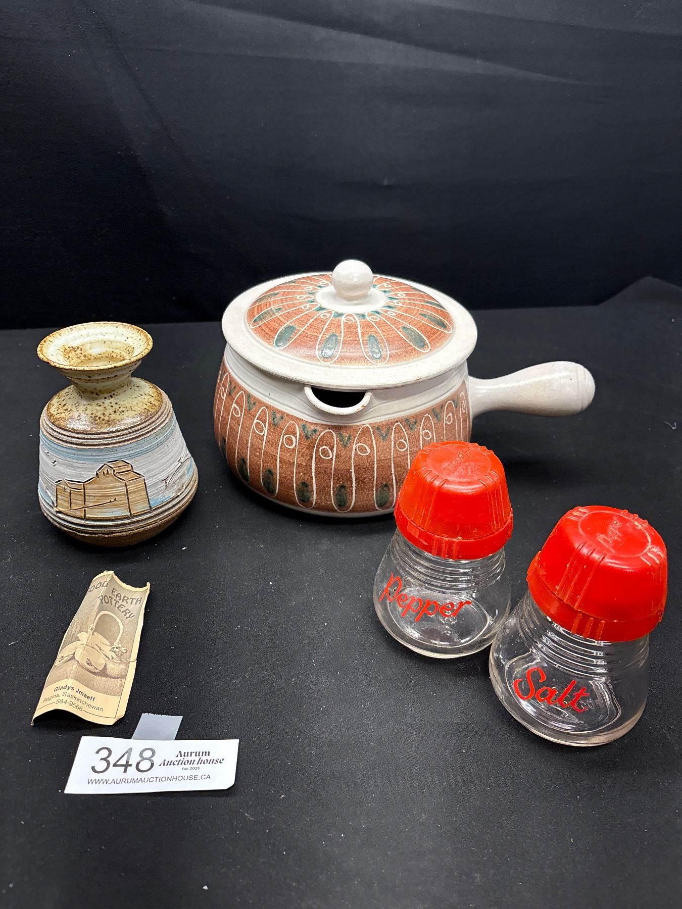Vintage Hoganas Eldfast Ceramic Bowl with Lid, Hand Made in Sweden Circa 1960's/70's, Small Good Earth Pottery Vase and Vintage S&P Shakers