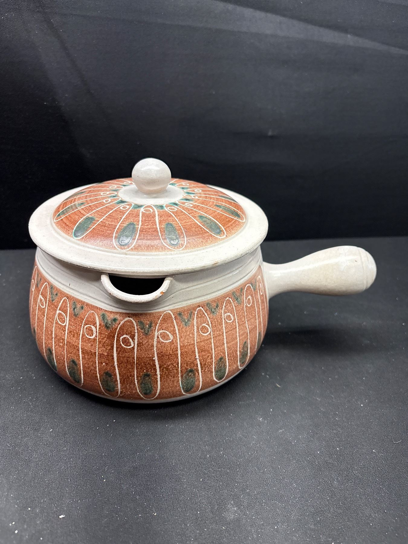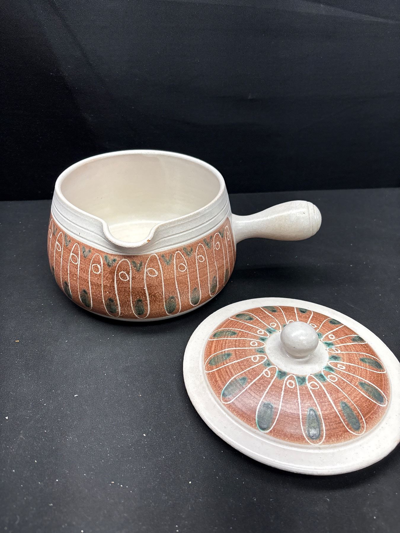 Lot 348 Vintage Hoganas Eldfast Ceramic Bowl with Lid, Hand Made in Sweden Circa 1960's/70's, Small Good Ear