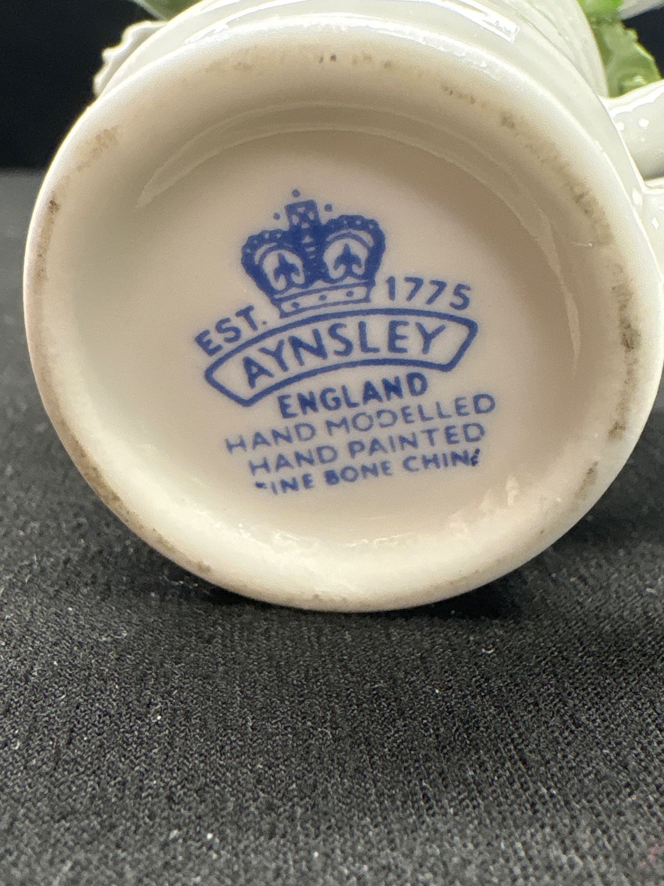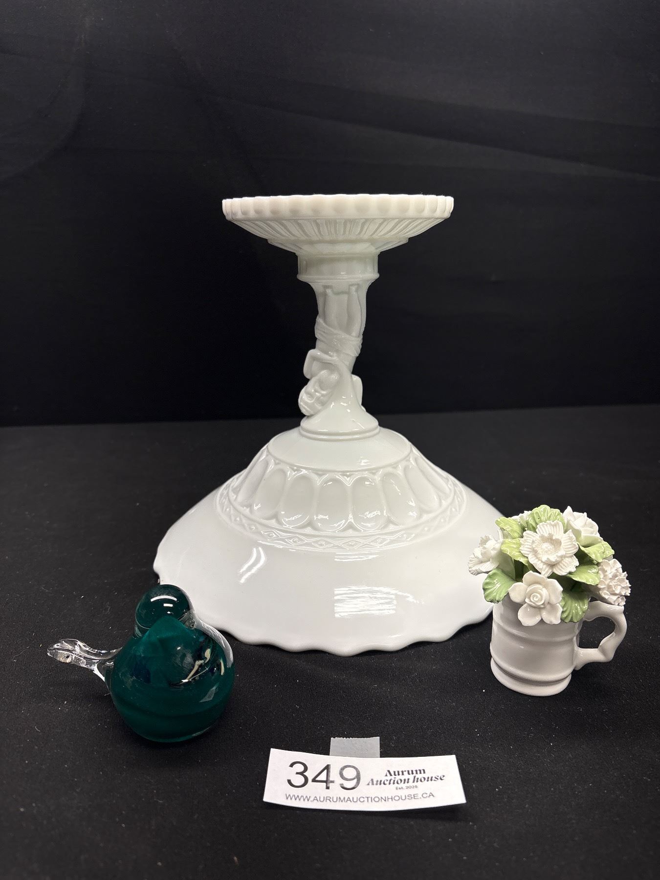 Lot 349 Signed Art Glass Bird, Small Aynsley Bone China Flowers and Milk Glass Complete