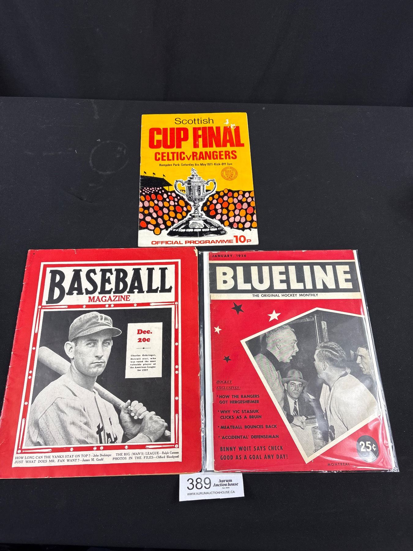 Lot 389 1937 Baseball Magazine, 1956 NHL Blueline Magazine and 1971 Football Scottish Cup Final Program