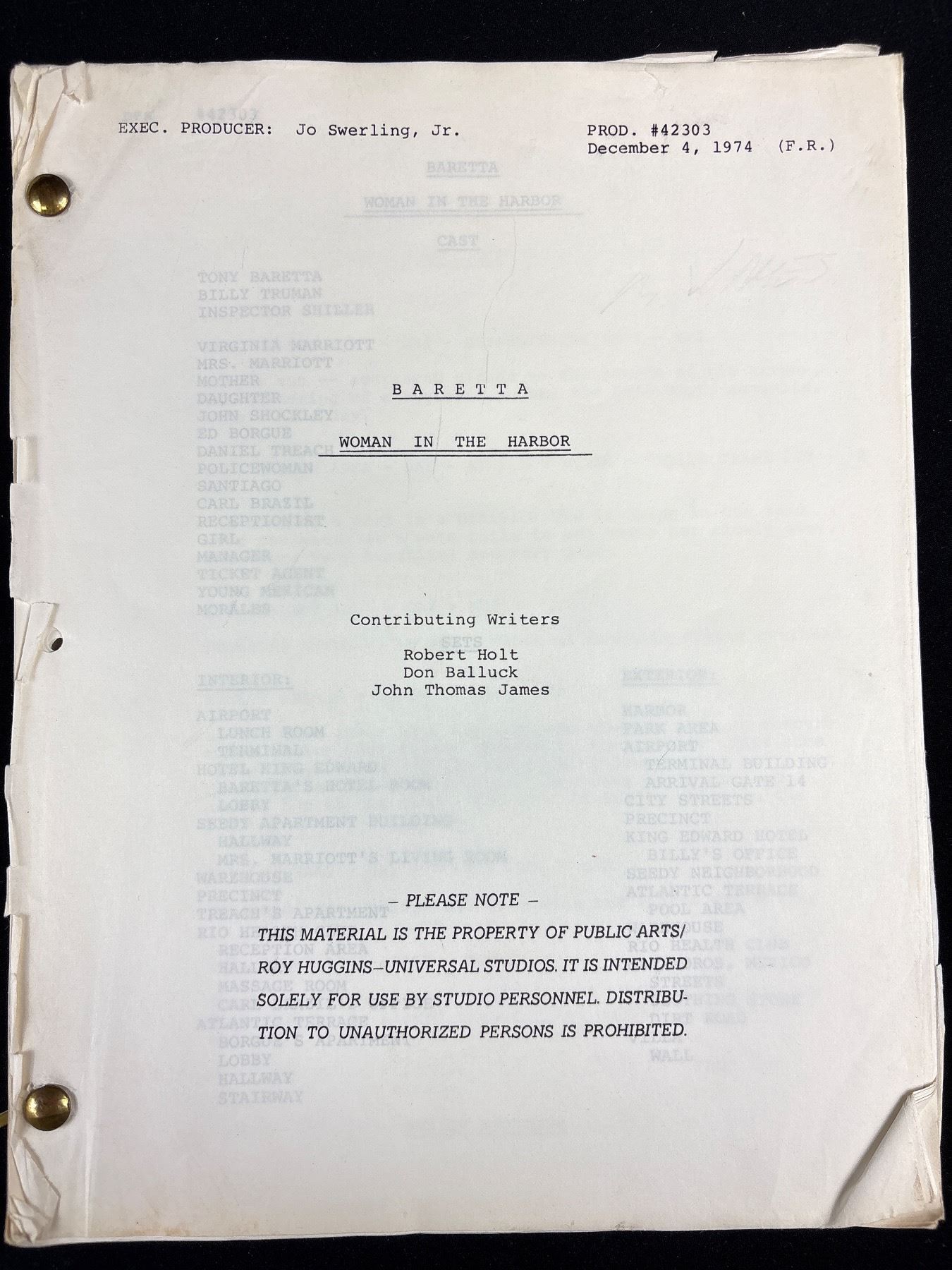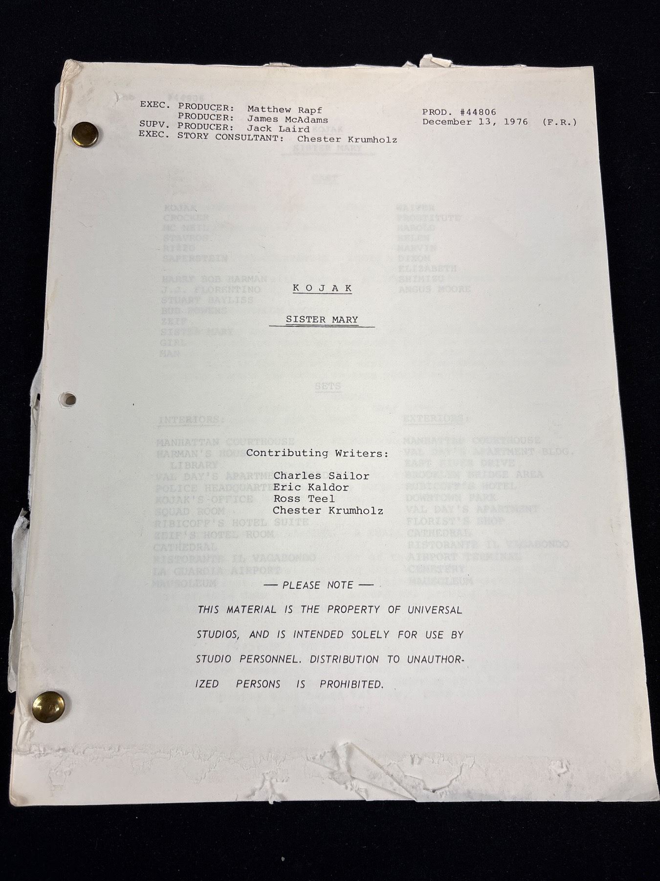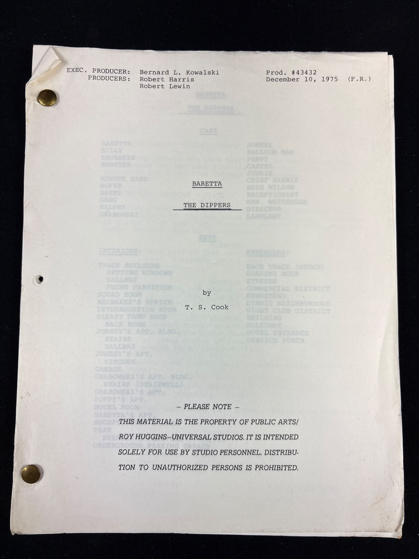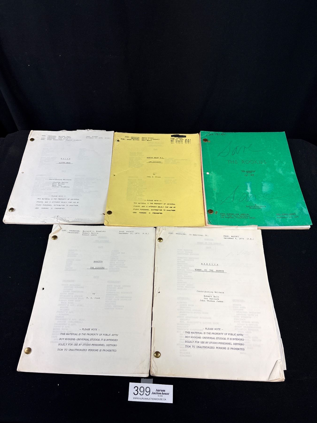 Lot 399 Lot of 5 Mid 1970's TV Series Scripts 2 Baretta, Kojak, Marcus Welby MD and The Rookies
