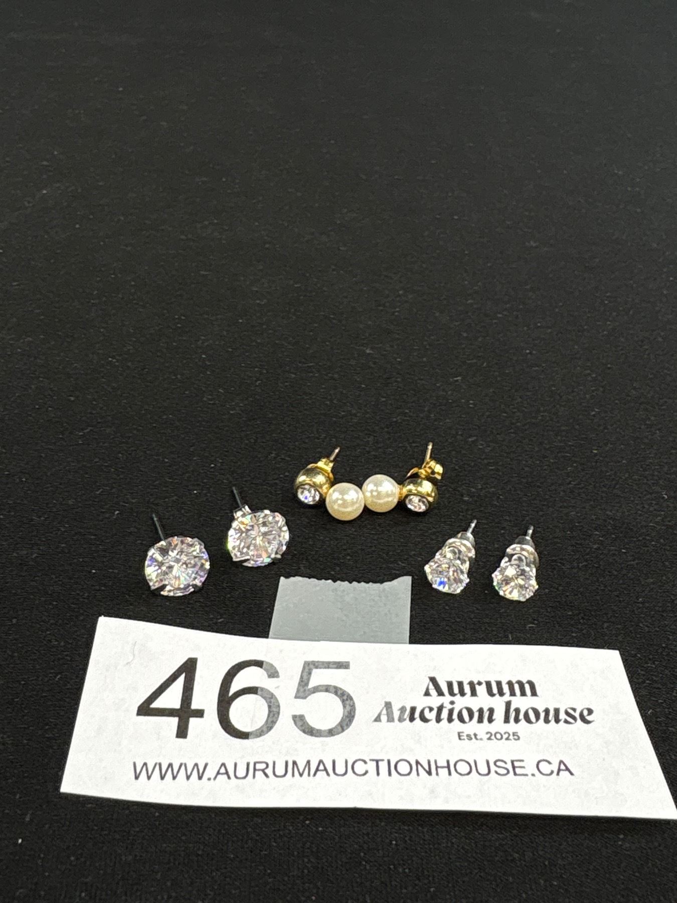 Lot 465 3 Pairs of Stud Earrings