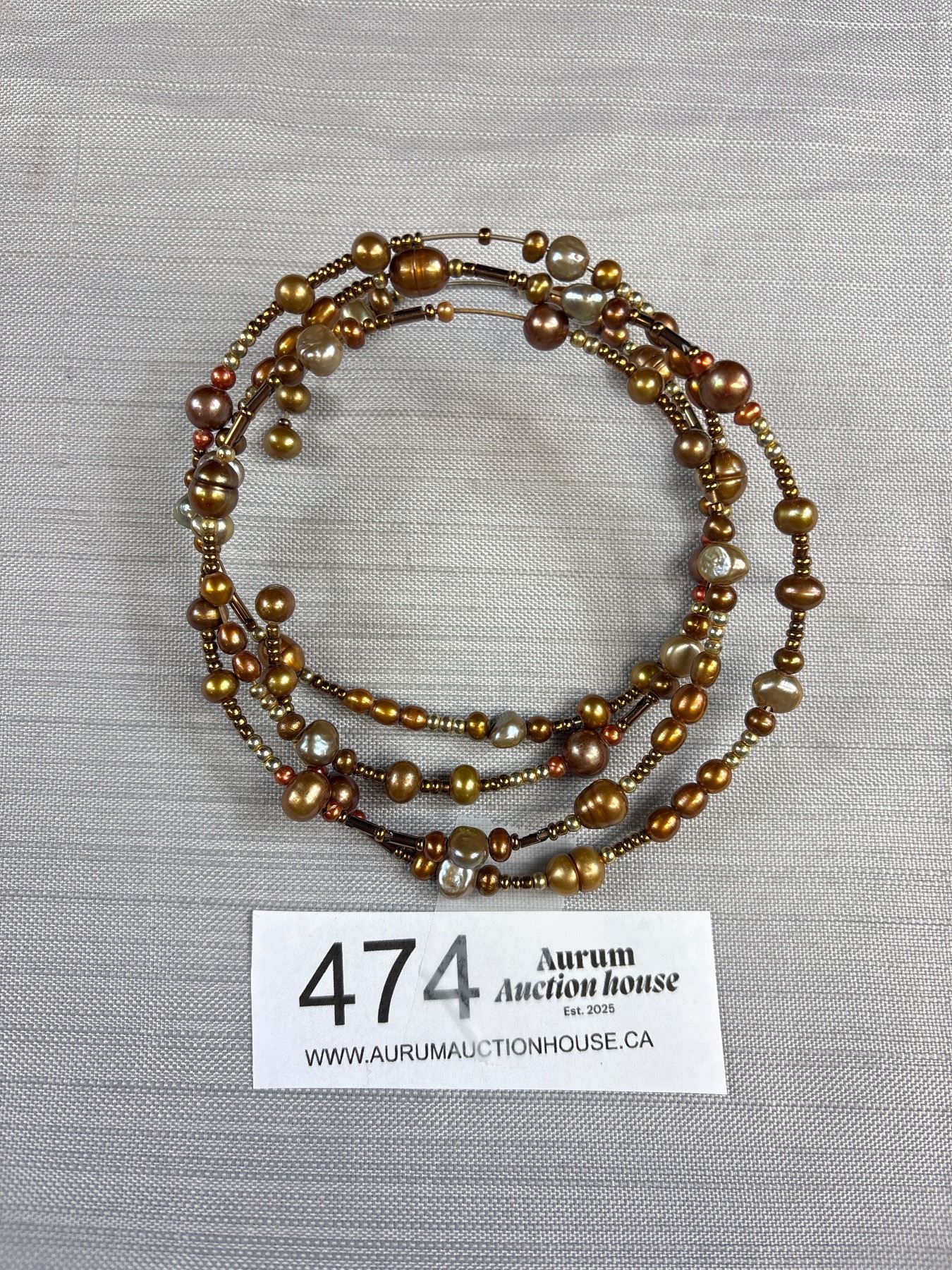 Lot 474 Triple Strand Genuine Pearls Bangle