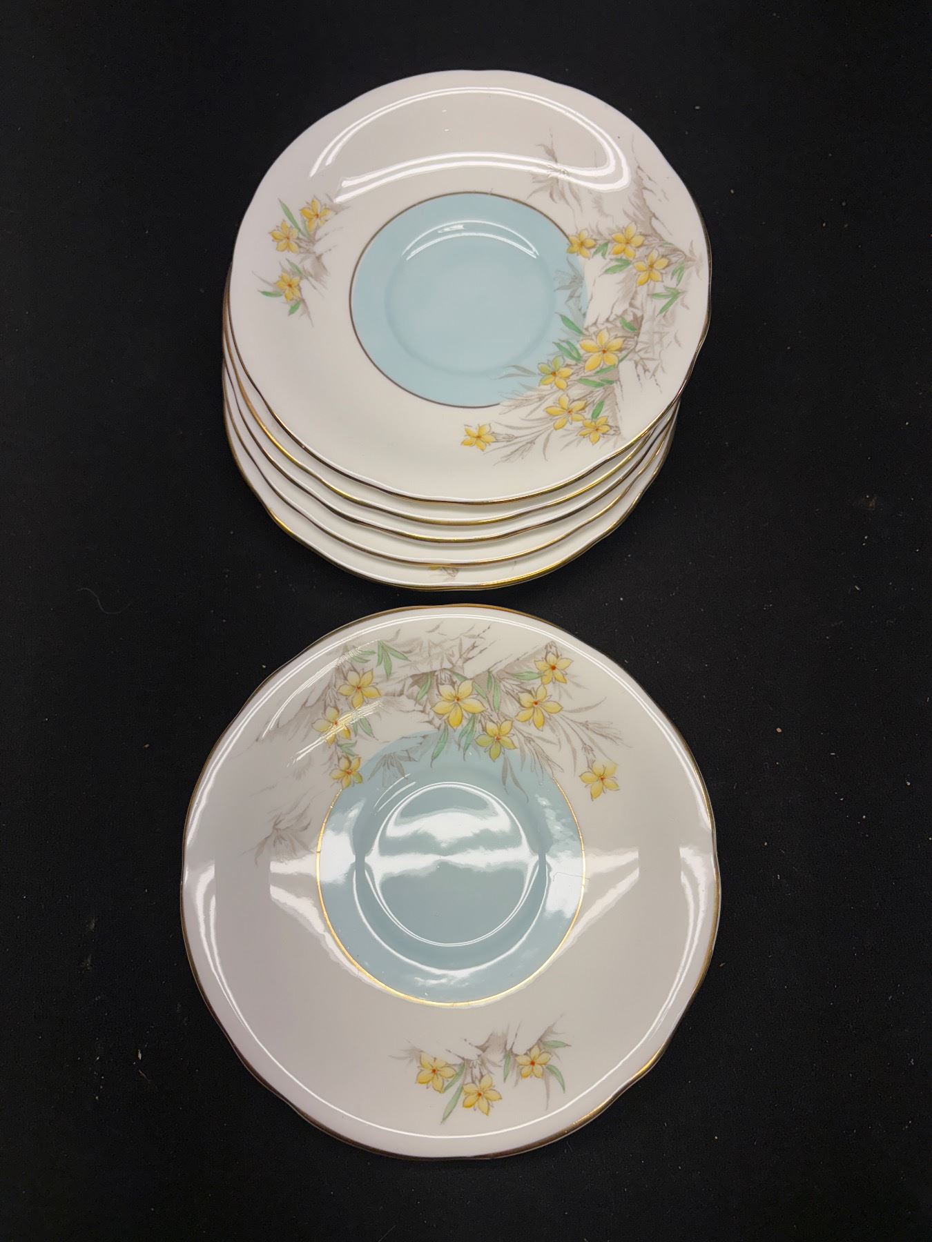 Vintage Matching Aynsley Bone China Lot, 5 Teacups, 6 Saucers, 6 Side Plates and Creamer