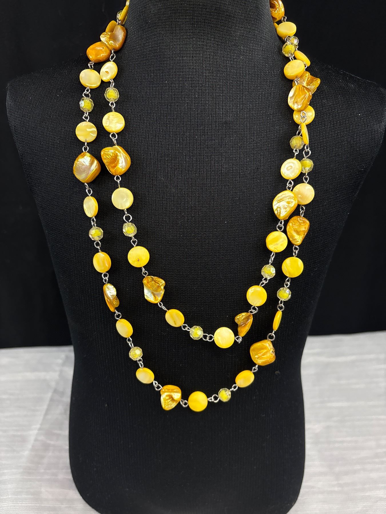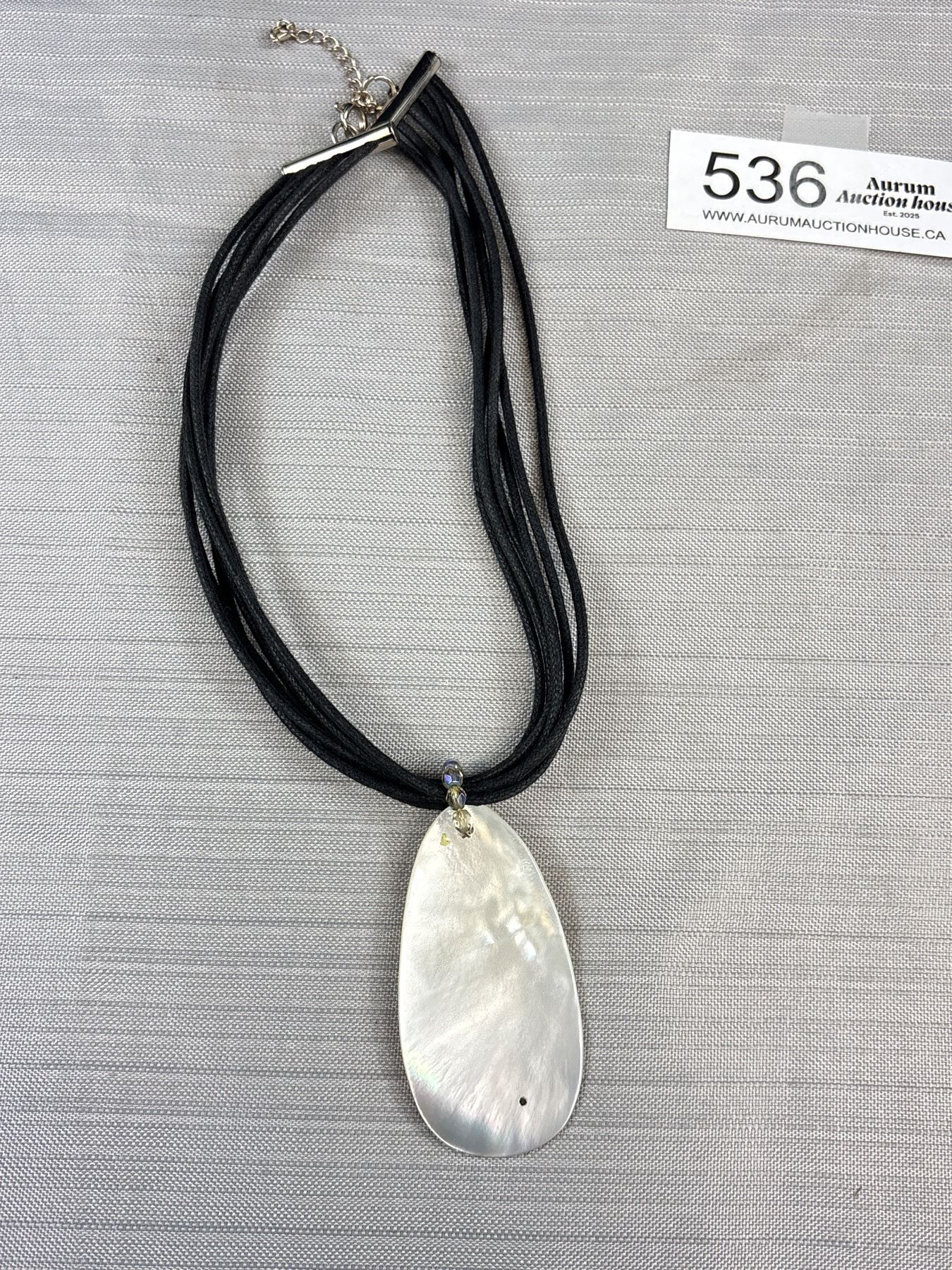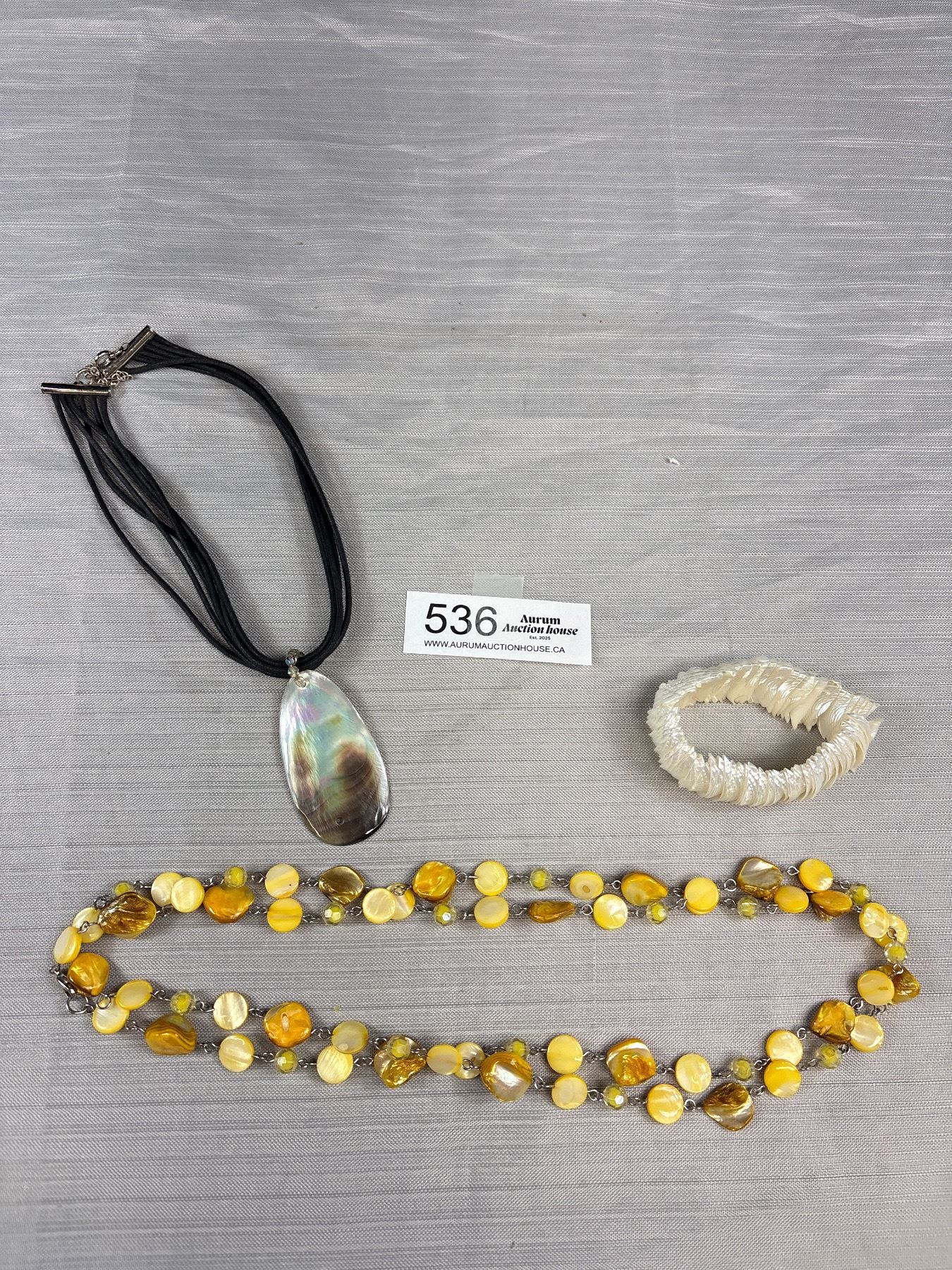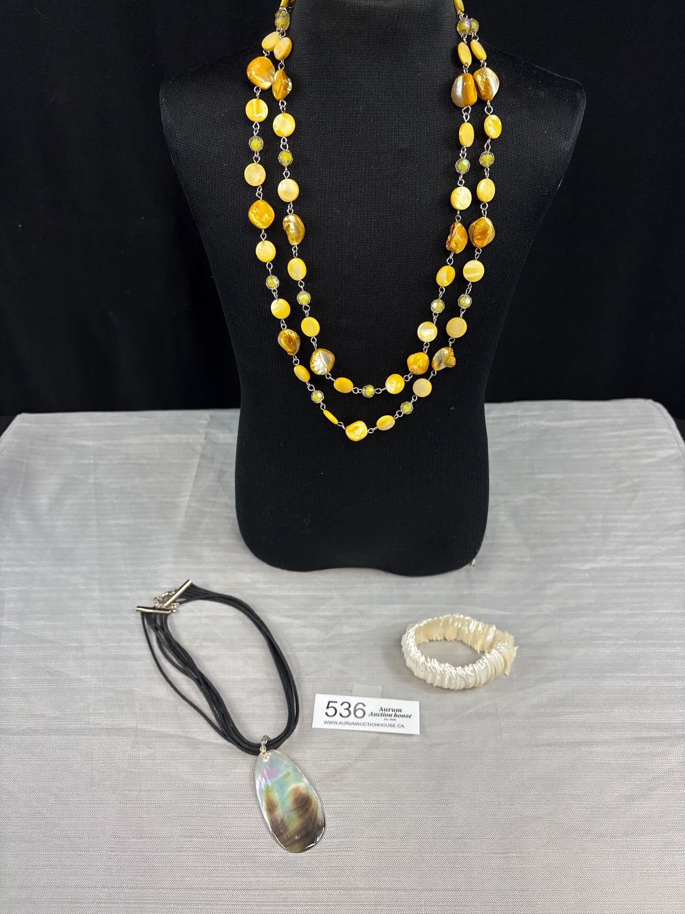 Lot 536 Mother of Pearl Beads Necklace, Pendant w/ Black Cord Necklace + Stretch Bracelet