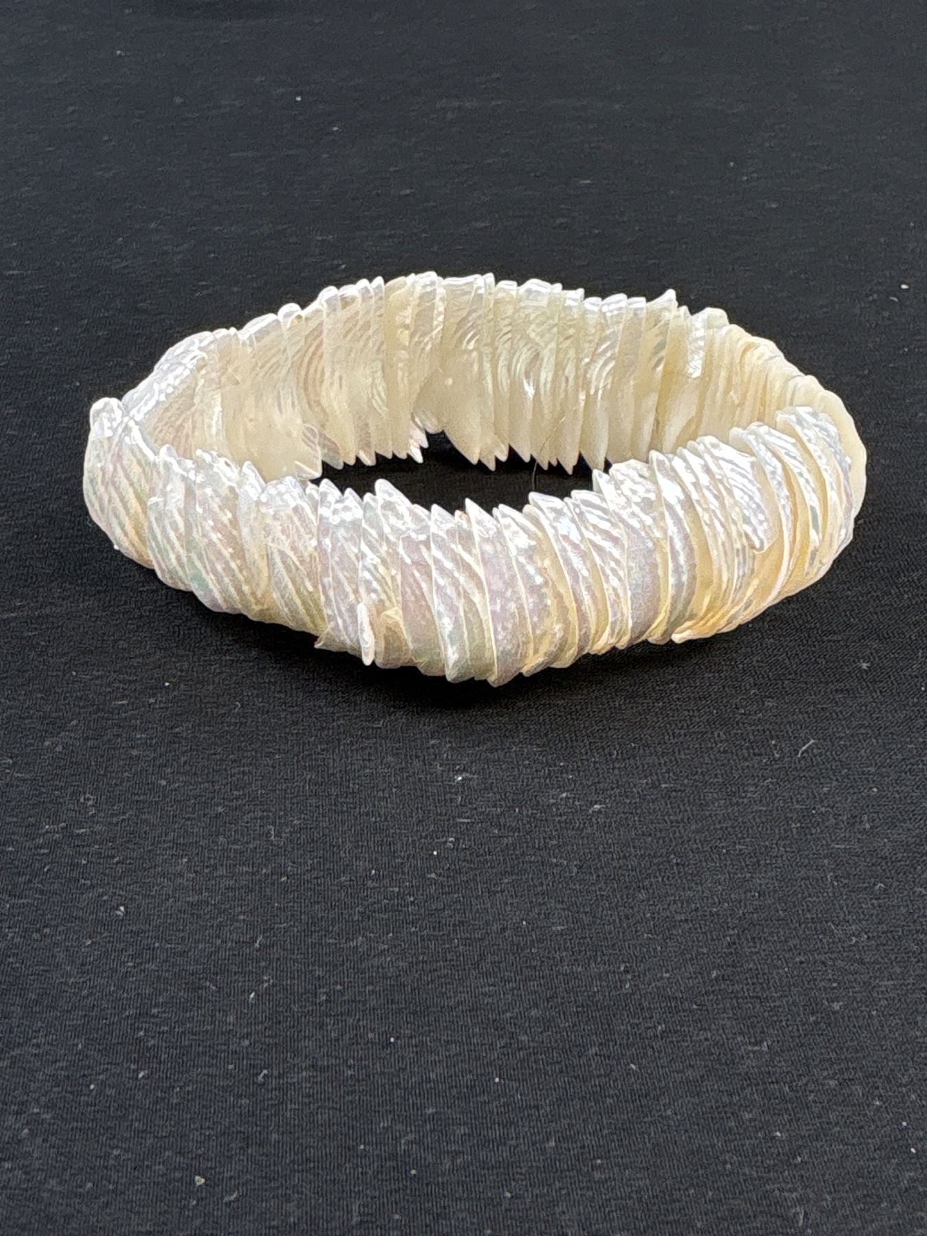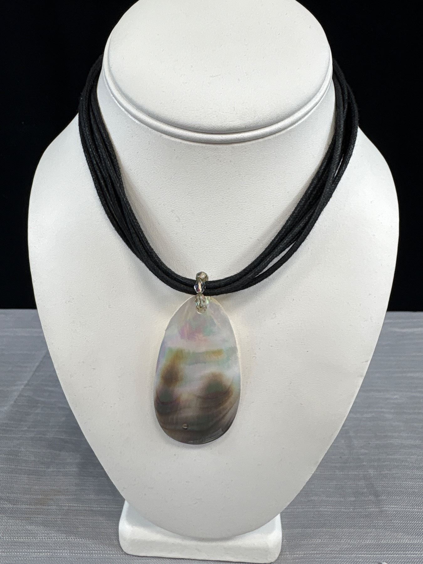 Mother of Pearl Beads Necklace, Pendant w/ Black Cord Necklace + Stretch Bracelet