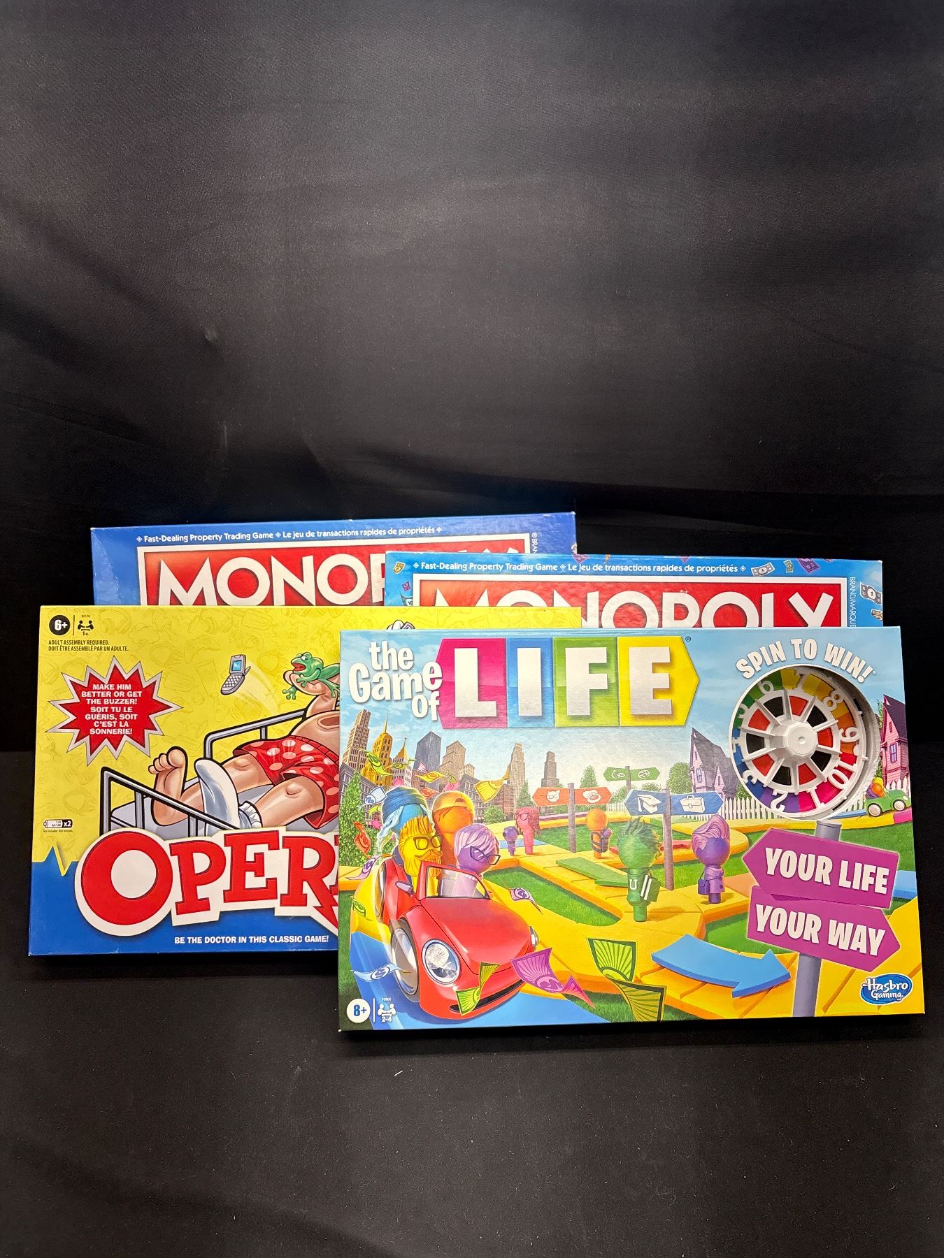 Lot of 4 Boardgames, 2 Monopoly, The Game of Life and Operation *Looks Complete*