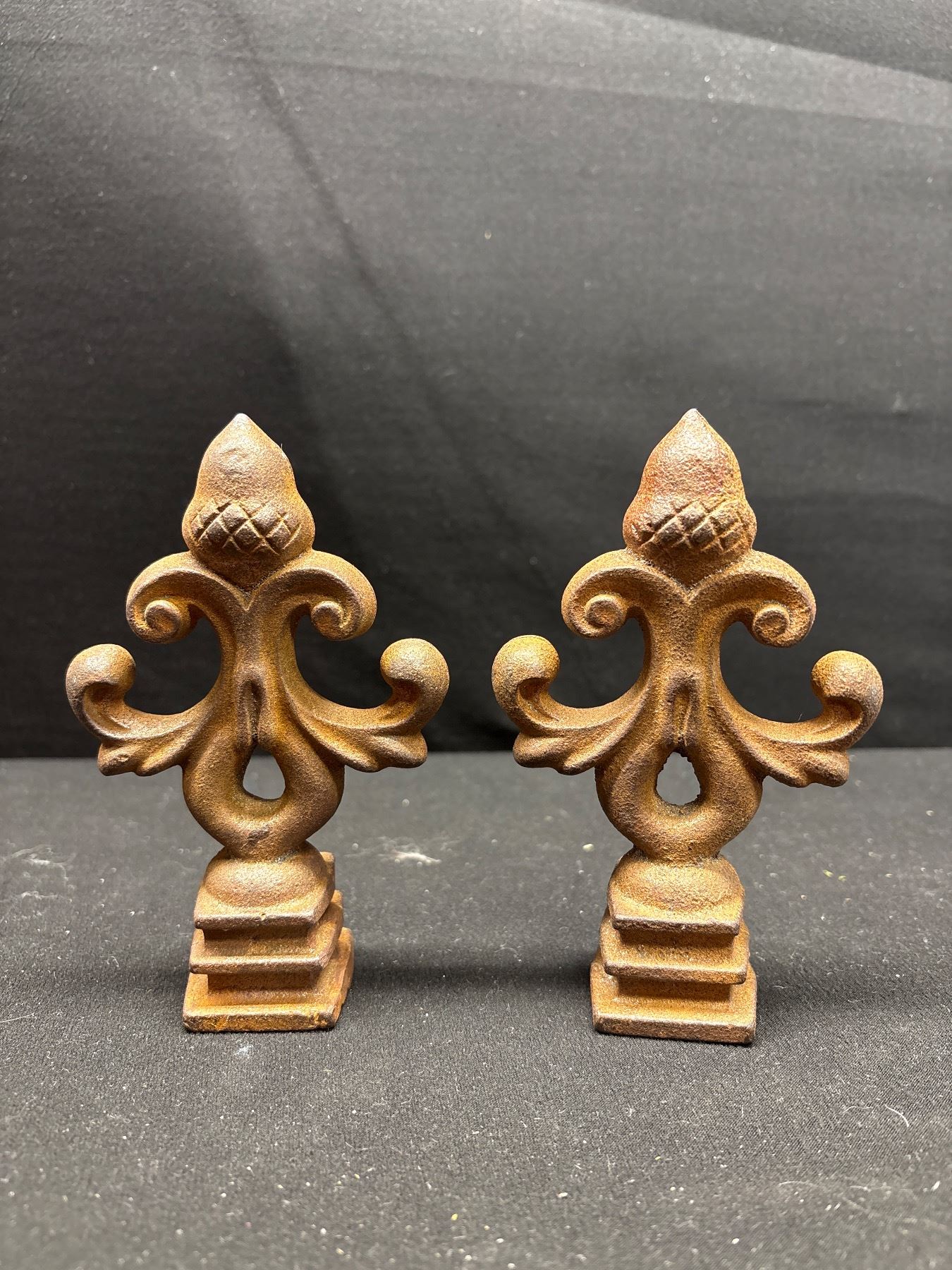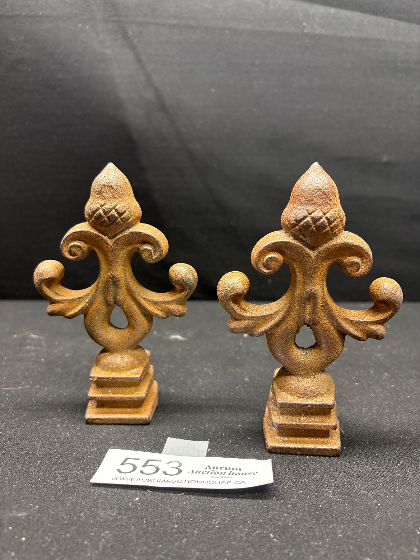 Lot 553 Set of 2 Vintage Cast Iron Fence Tops