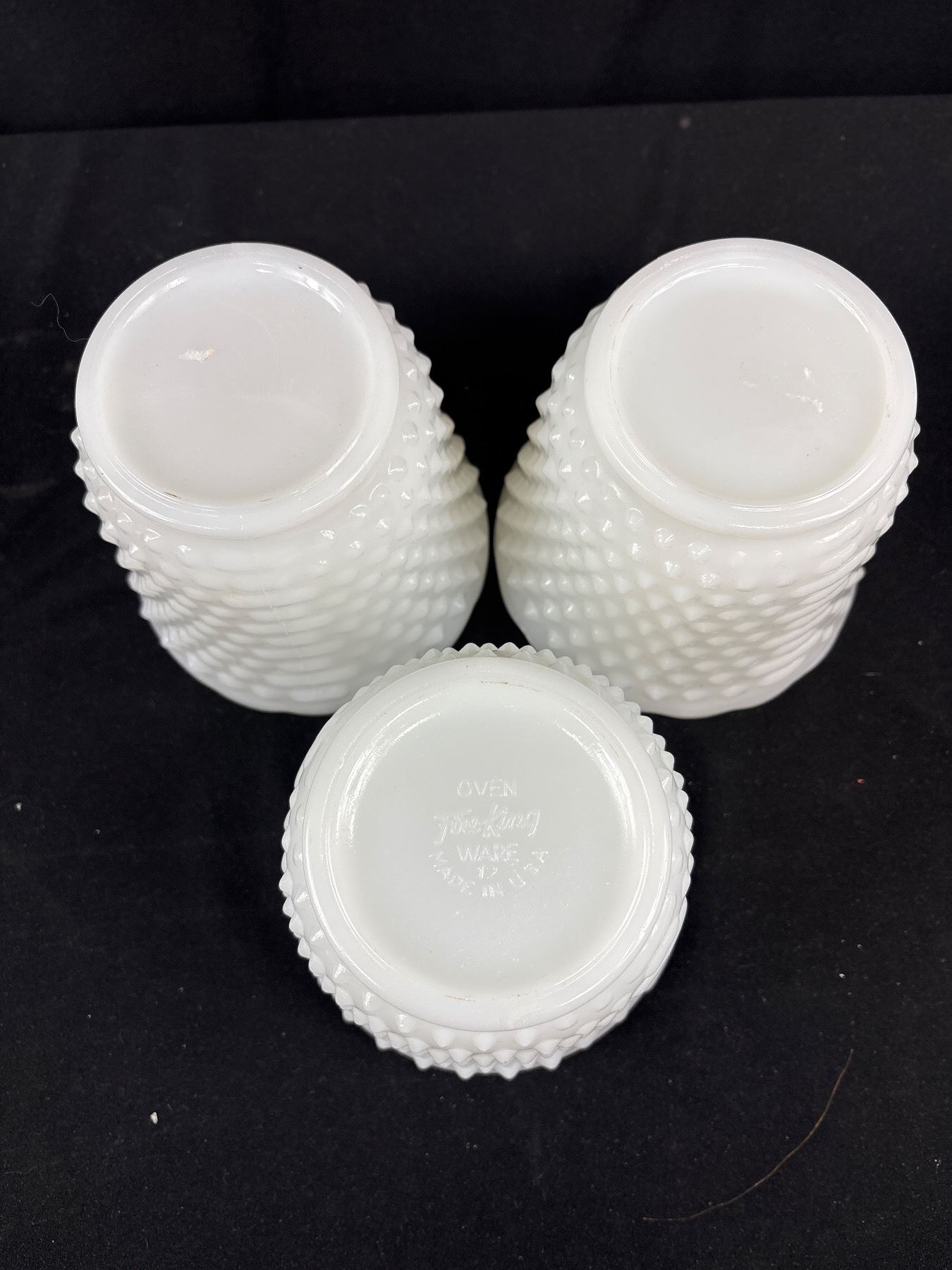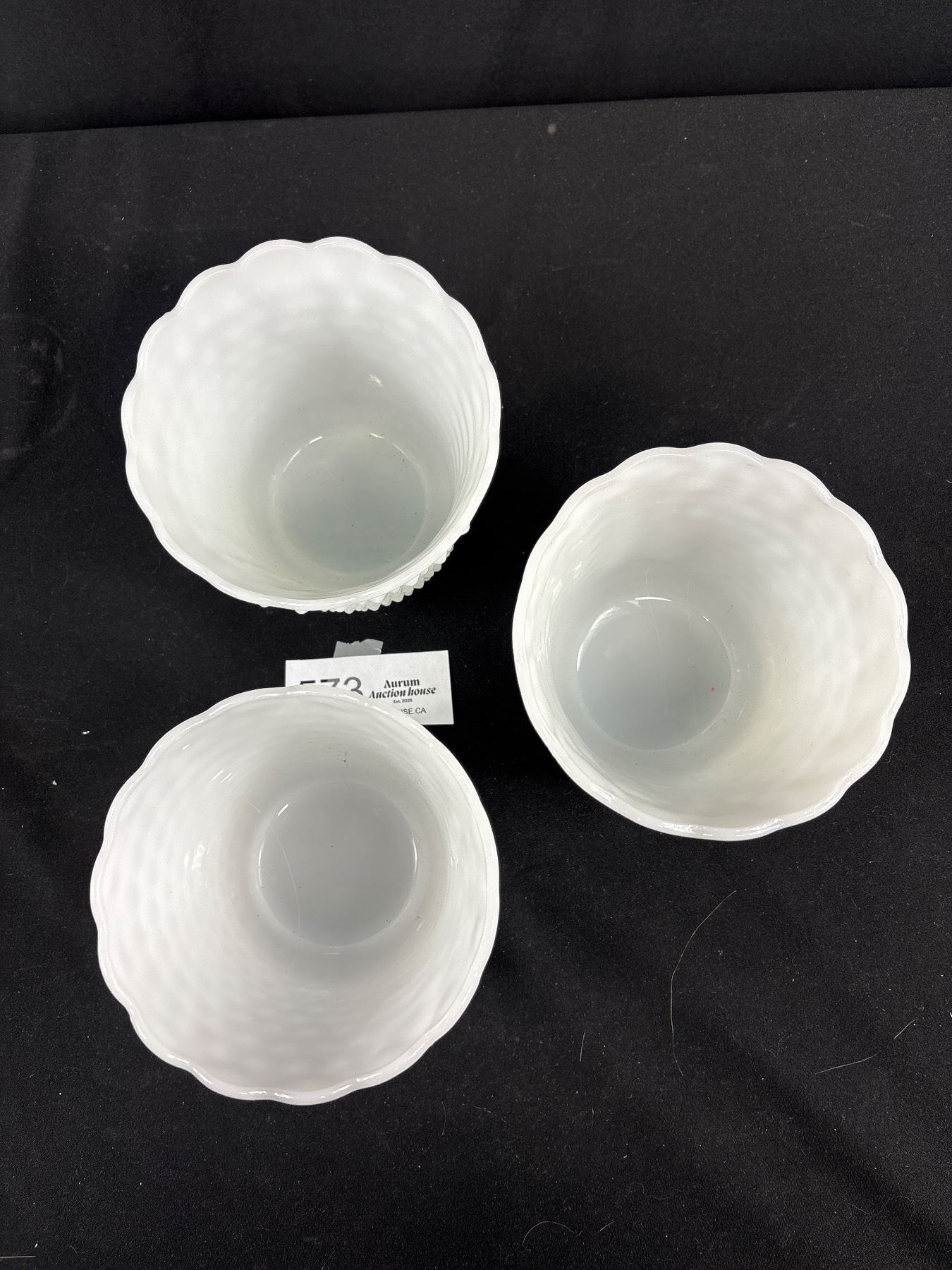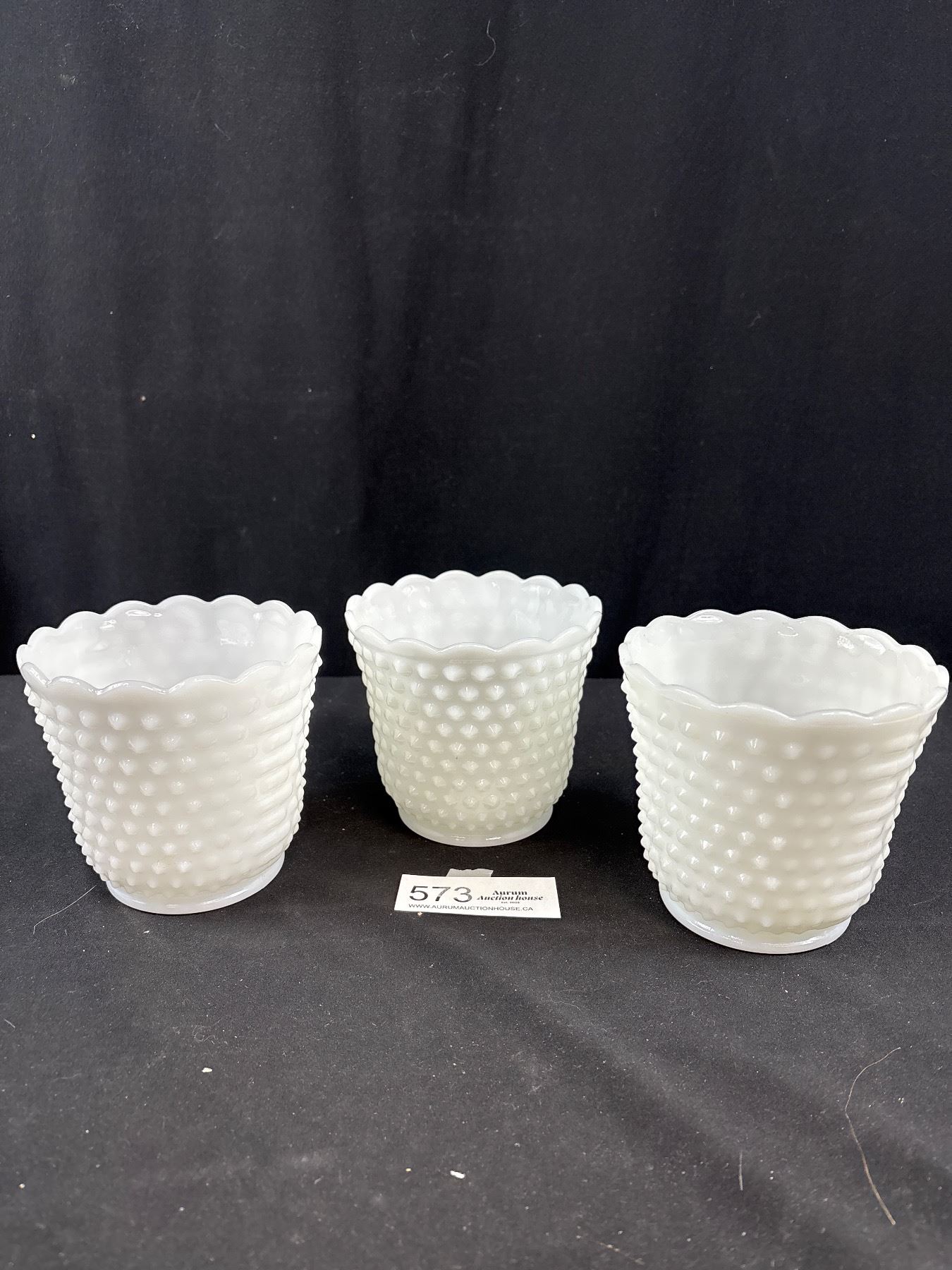 Lot 573 Lot of 3 Vintage Milk Glass Hobnail Planter Vases 4" Tall