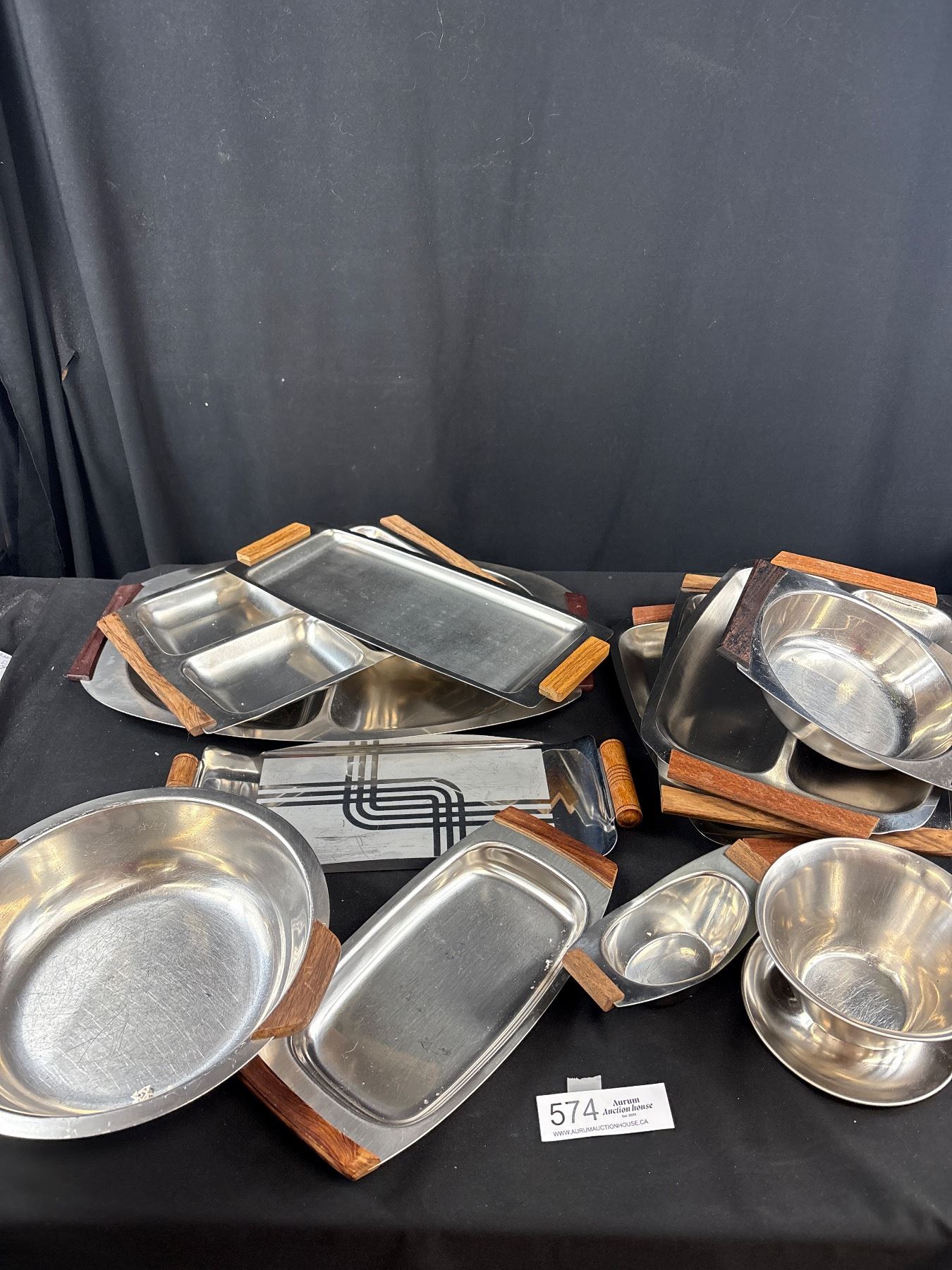 Lot 574 Large Lot of Mid Century Danish Stainless Steel Serving Dishes