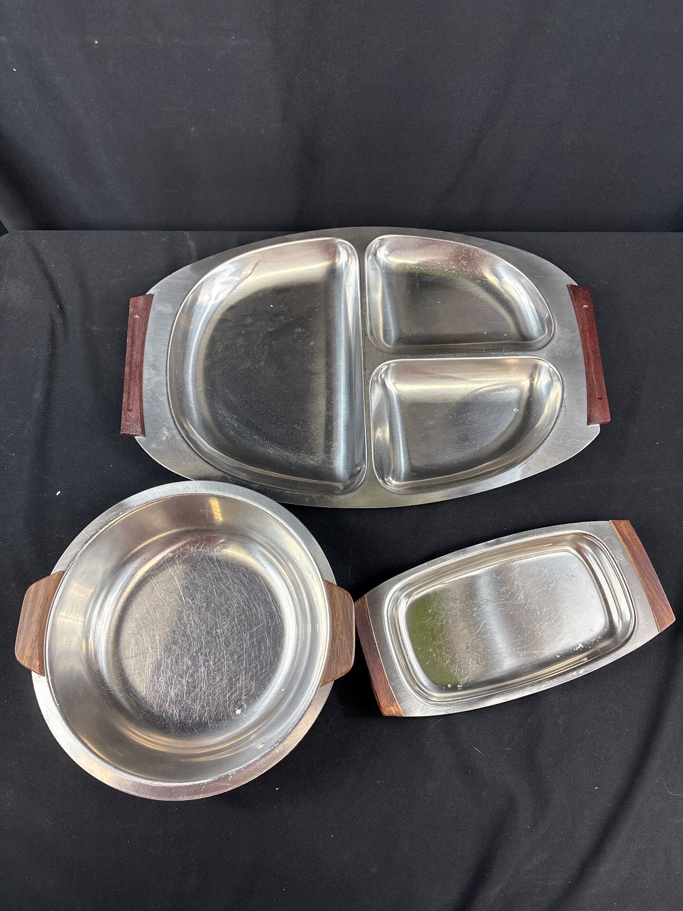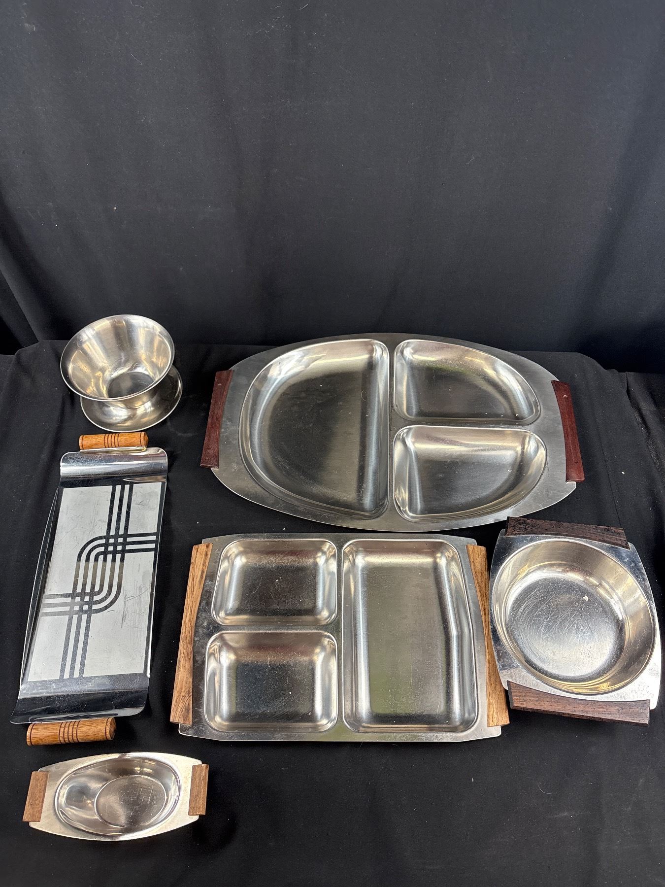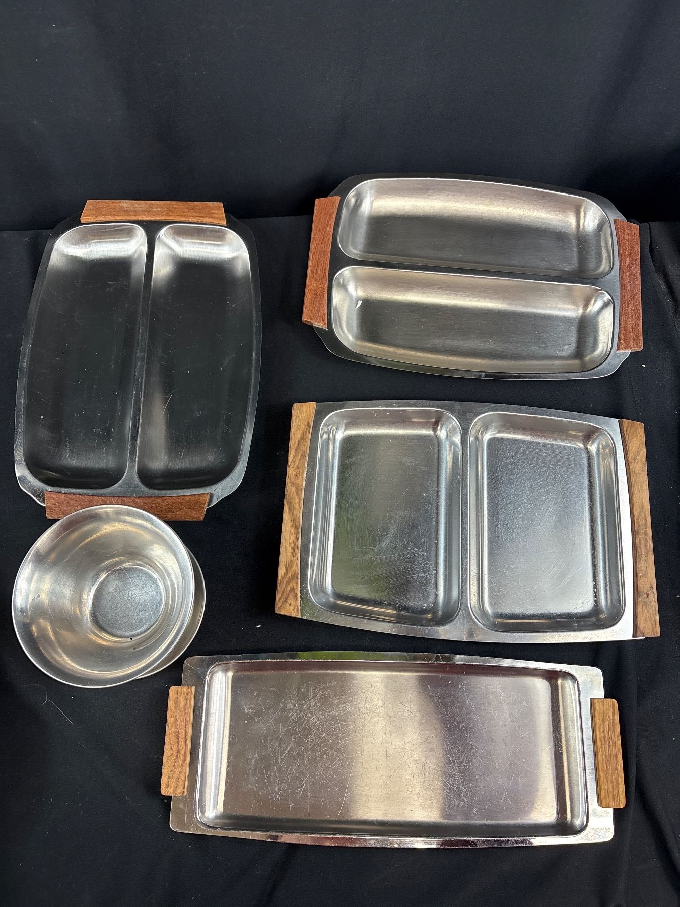 Large Lot of Mid Century Danish Stainless Steel Serving Dishes
