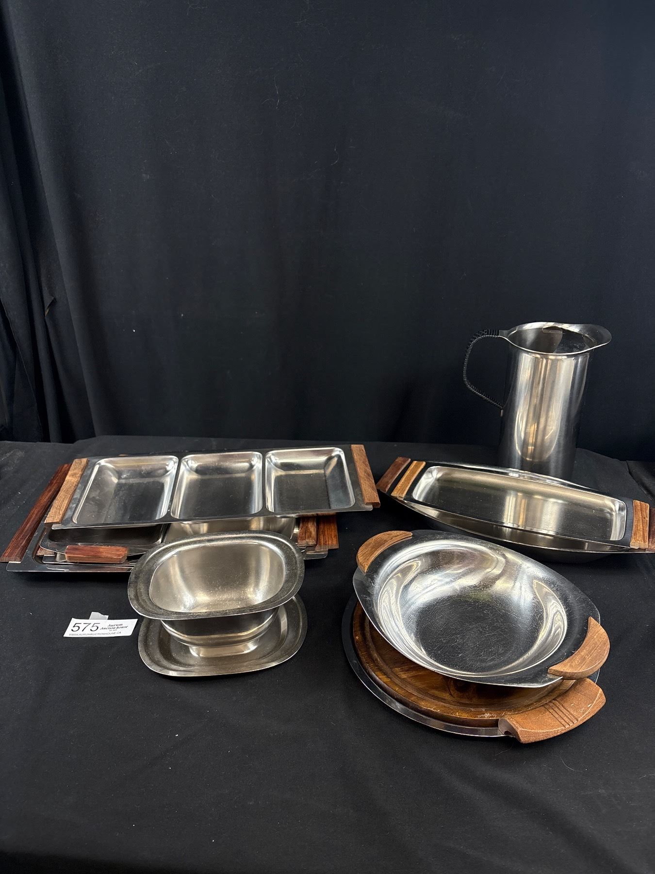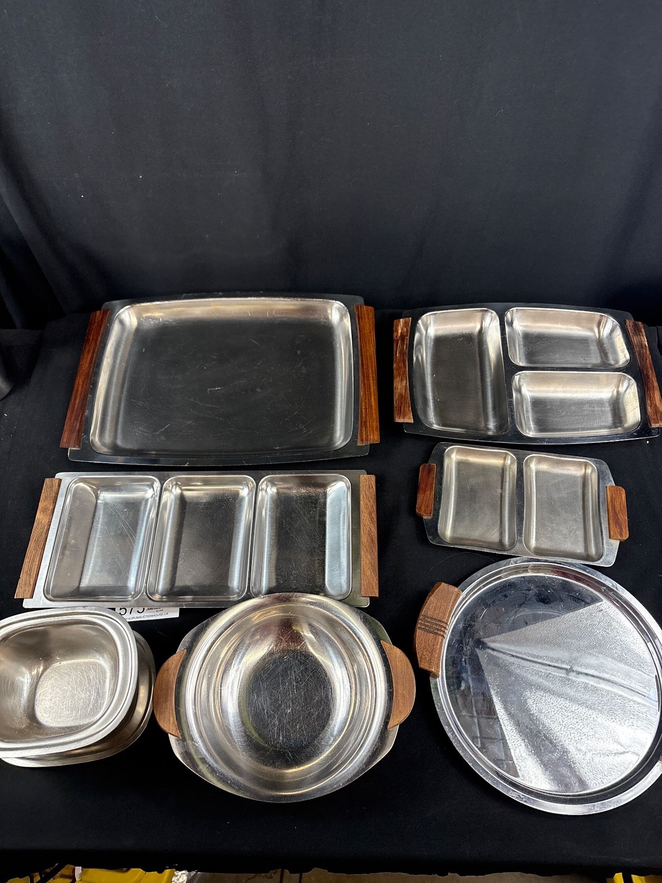 Lot 575 Large Lot of Mid Century Danish Stainless Steel Serving Dishes