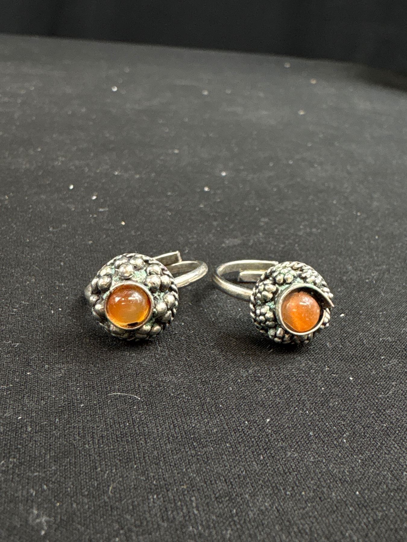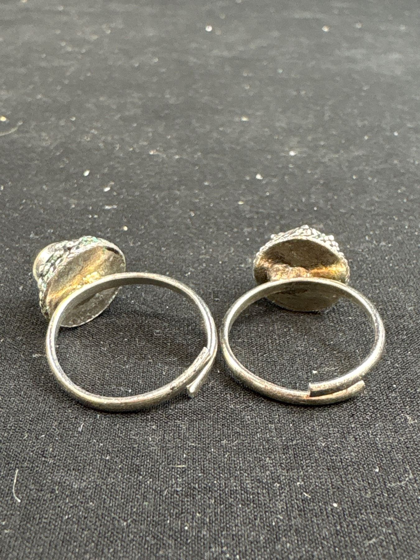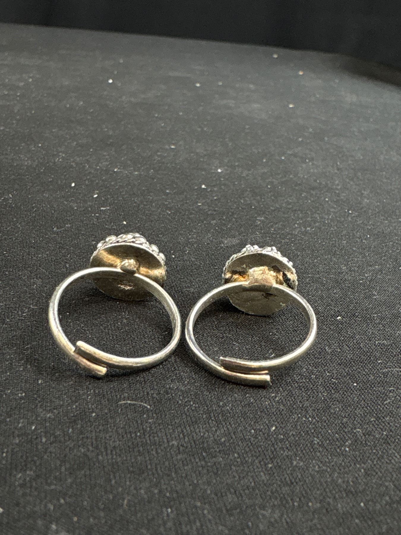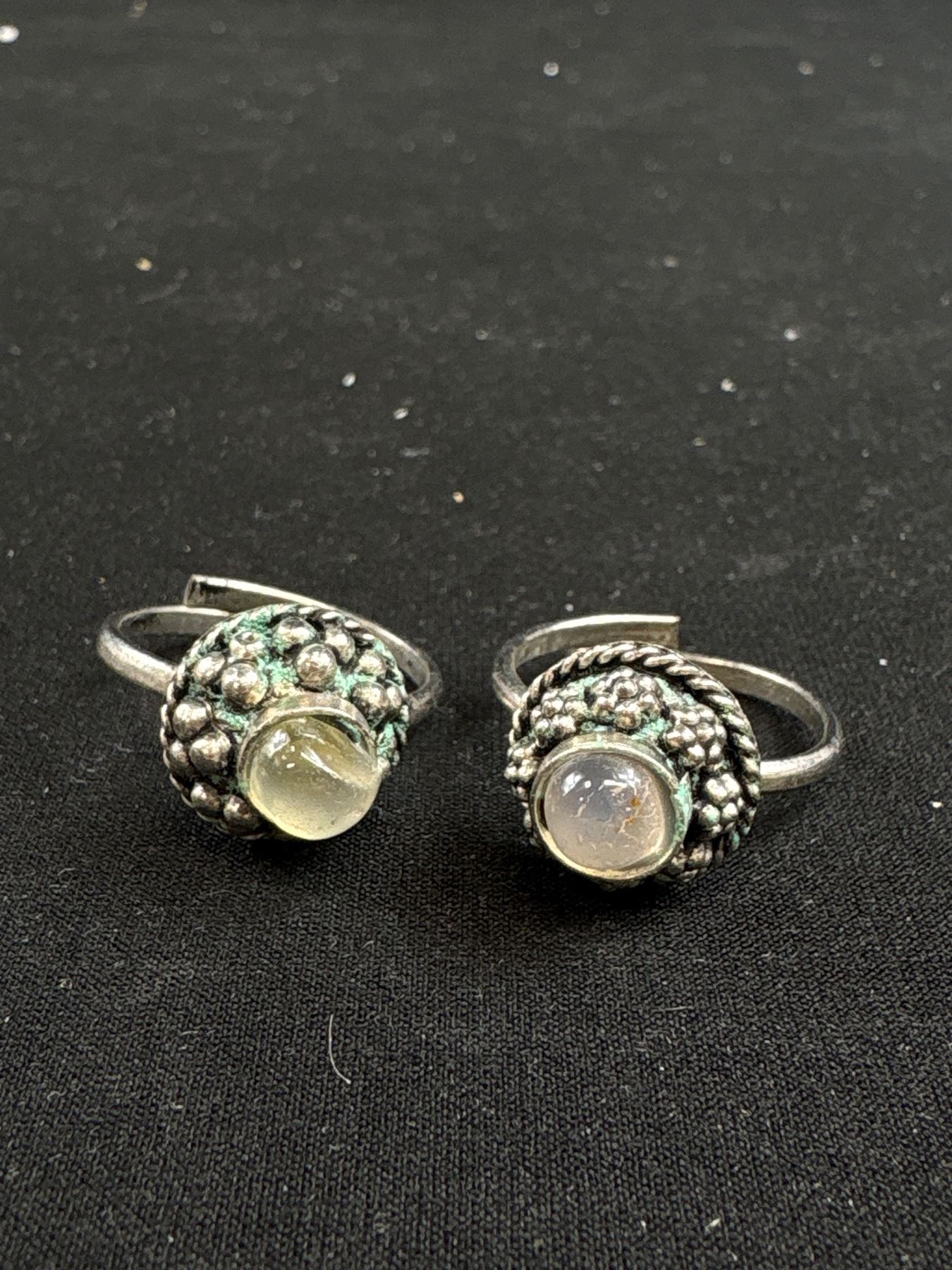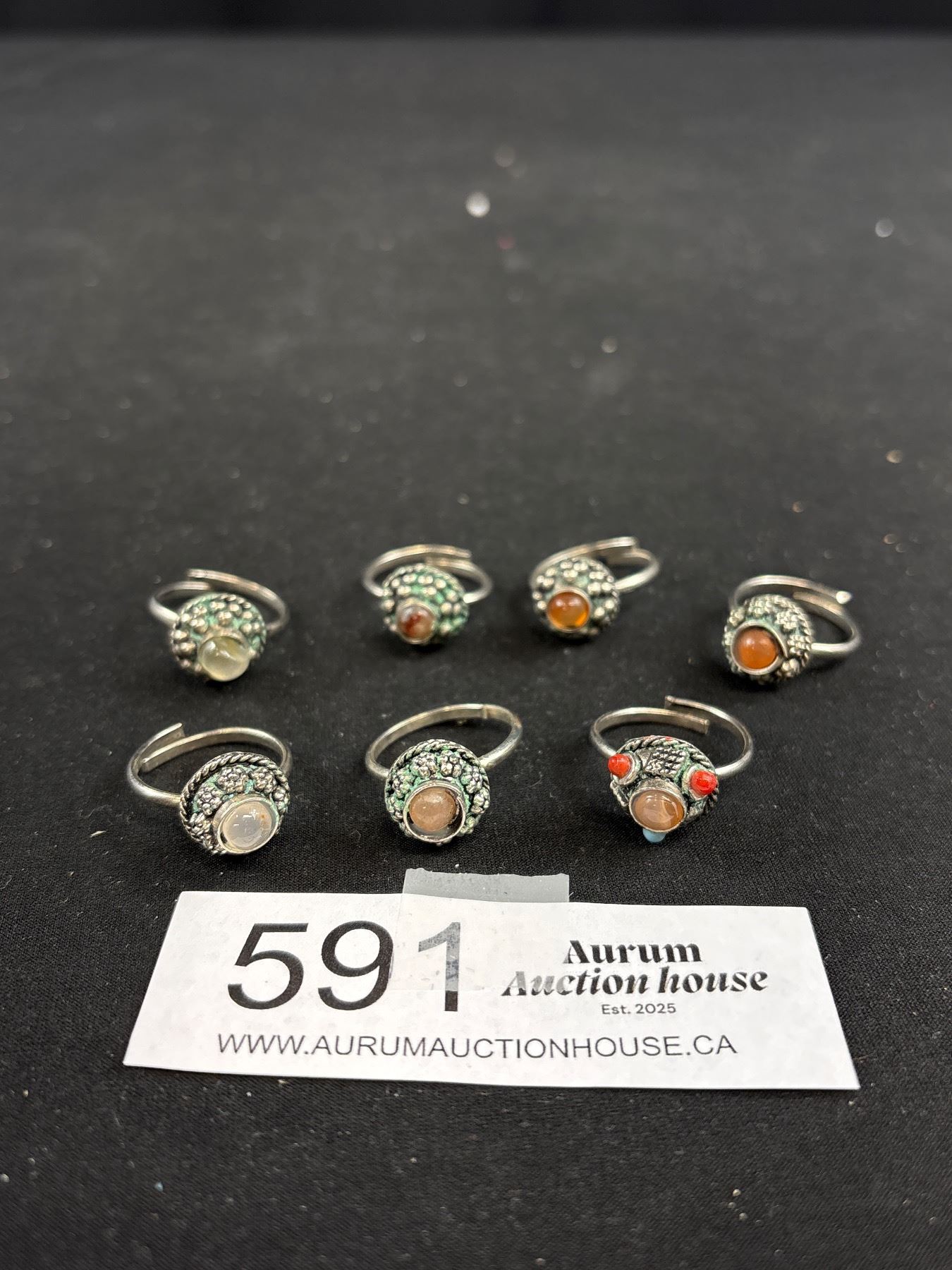 Lot 591 7 Vintage Silver Tone Rings w/ Real Stones, Self Adjustable Sizes