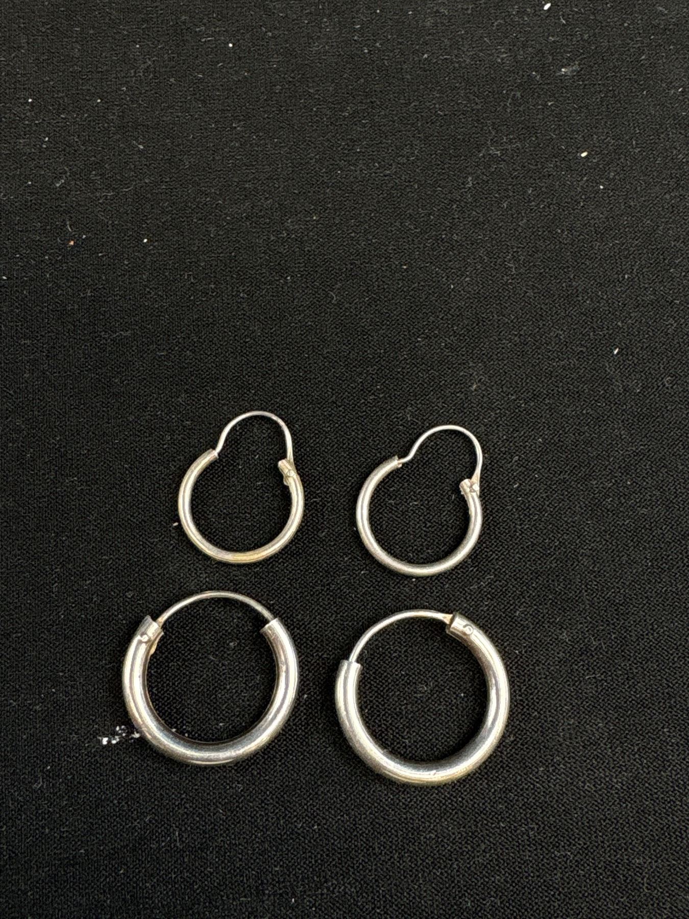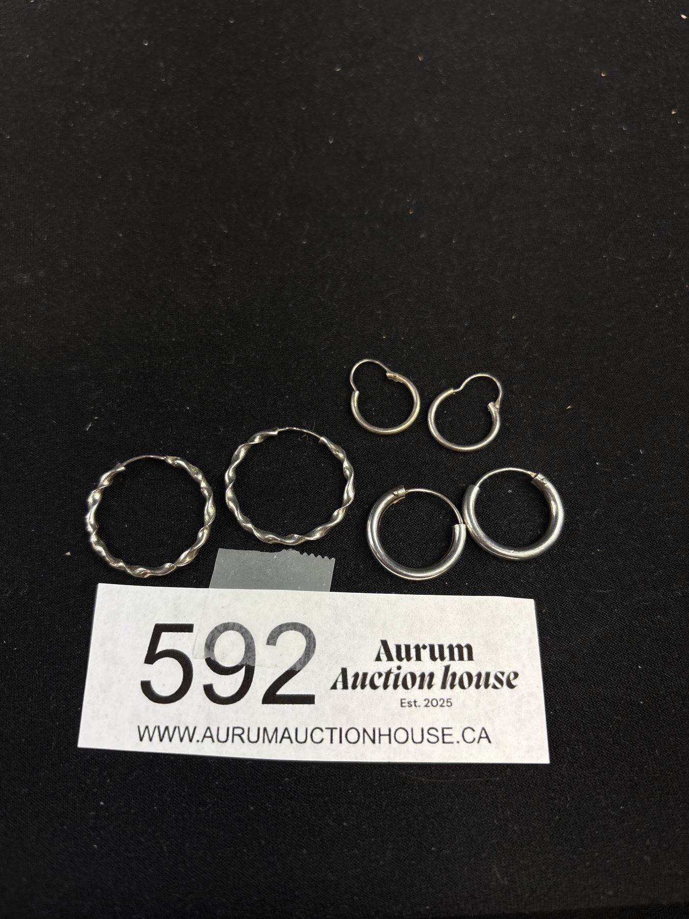 Lot 592 3 Pairs of Sterling Silver Hoop Earrings