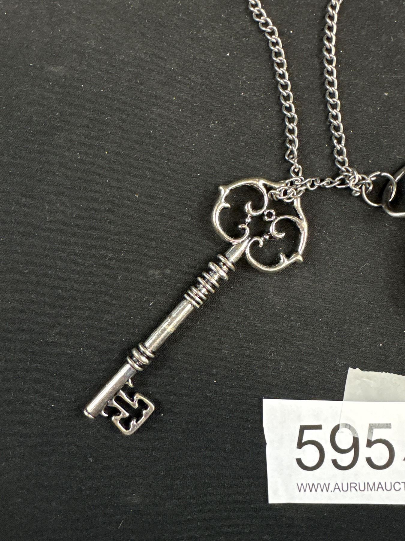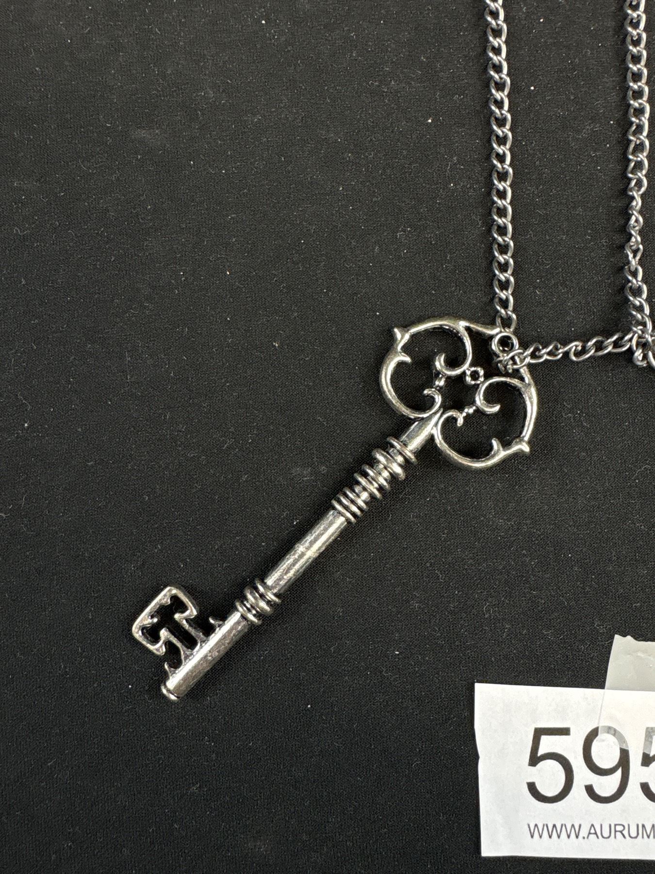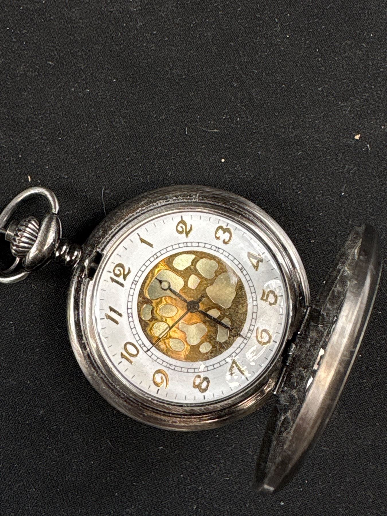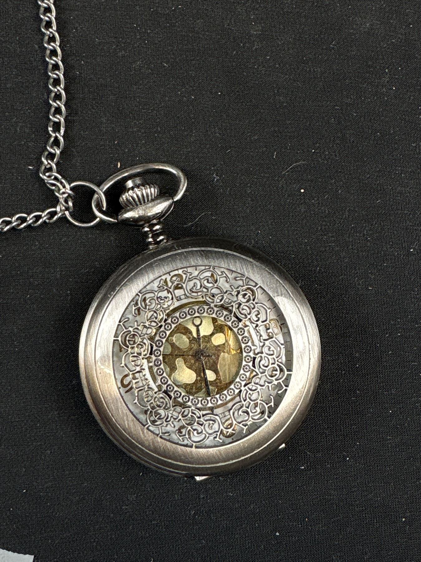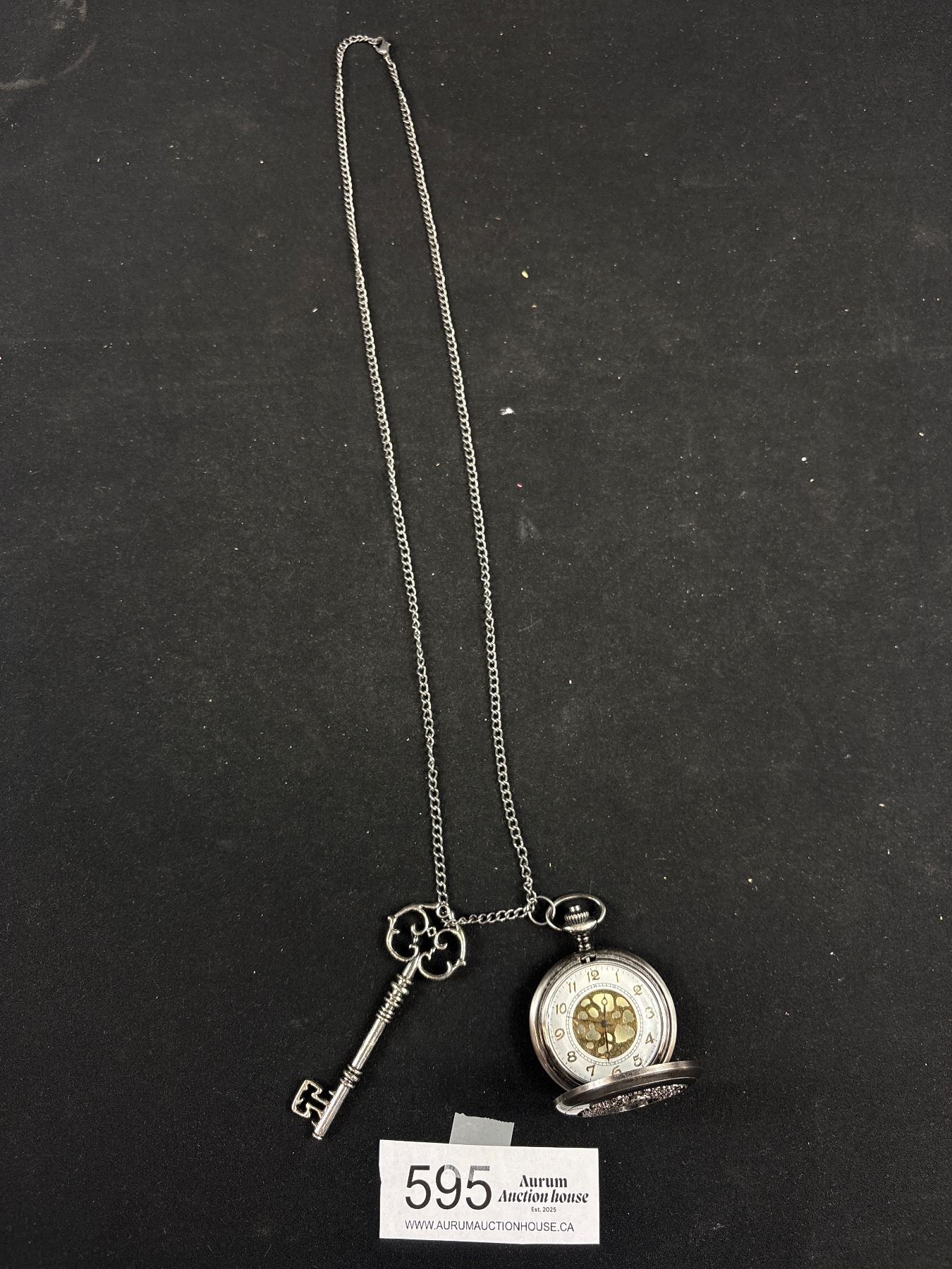 Lot 595 Hunter Case Quartz Pocket Watch w/ Chain + Key Pendant/Fob