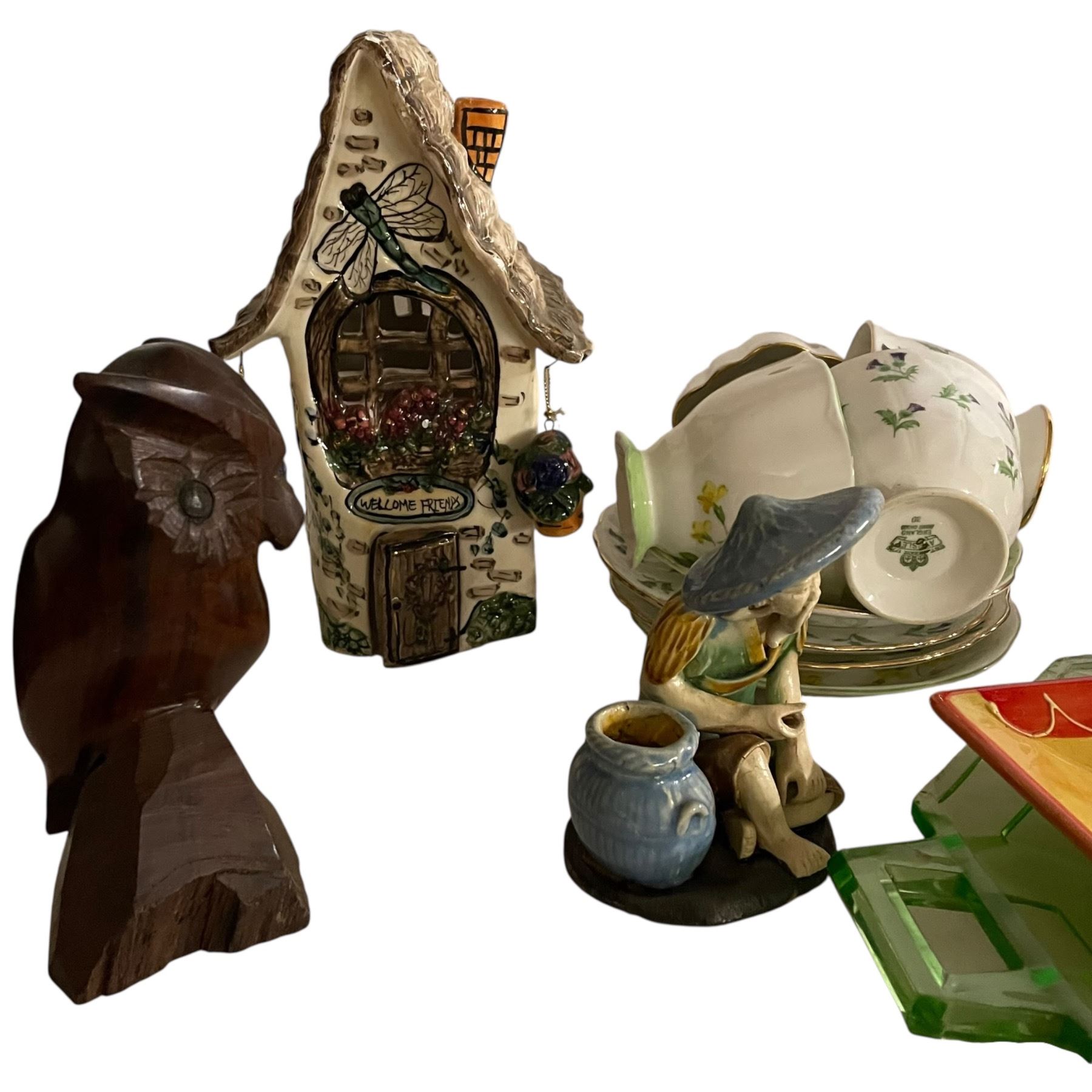 Bone Chin Teacups and Saucer, Uranium Glass and More