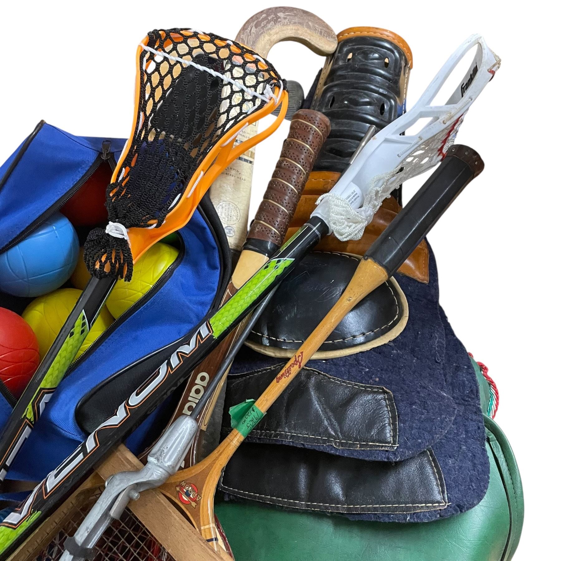 Sporting Goods Lot: Lacrosse, Tennis, Hockey, Croquet, Bocce, Field Hockey and More