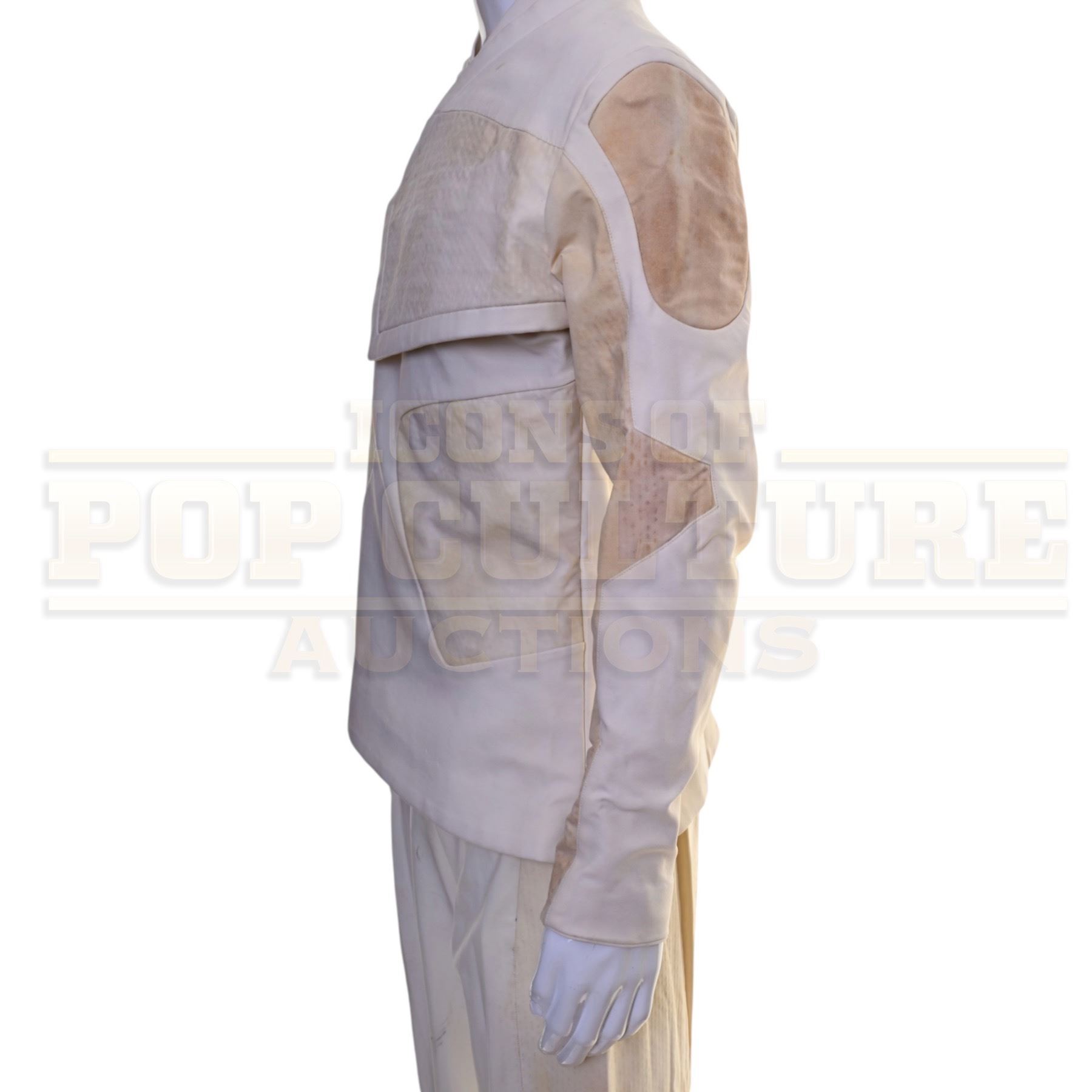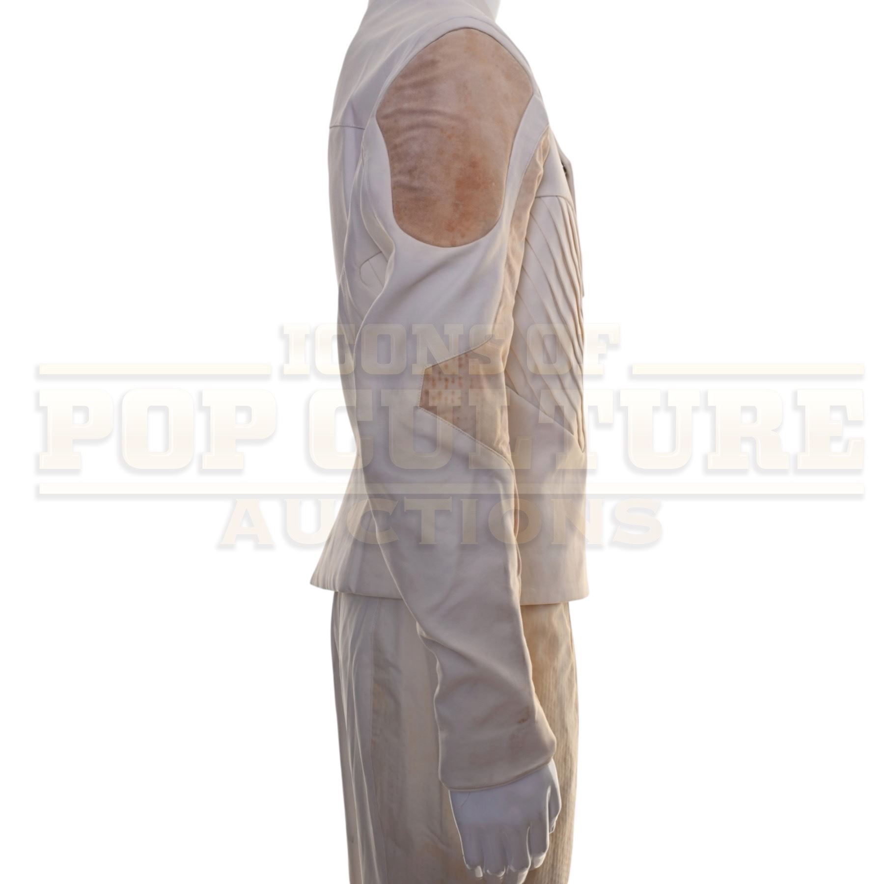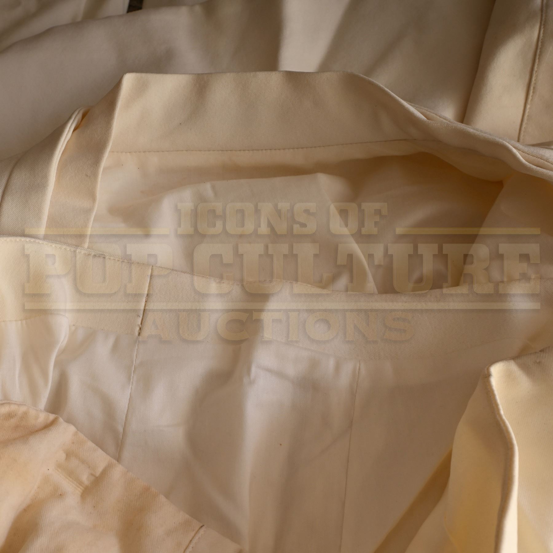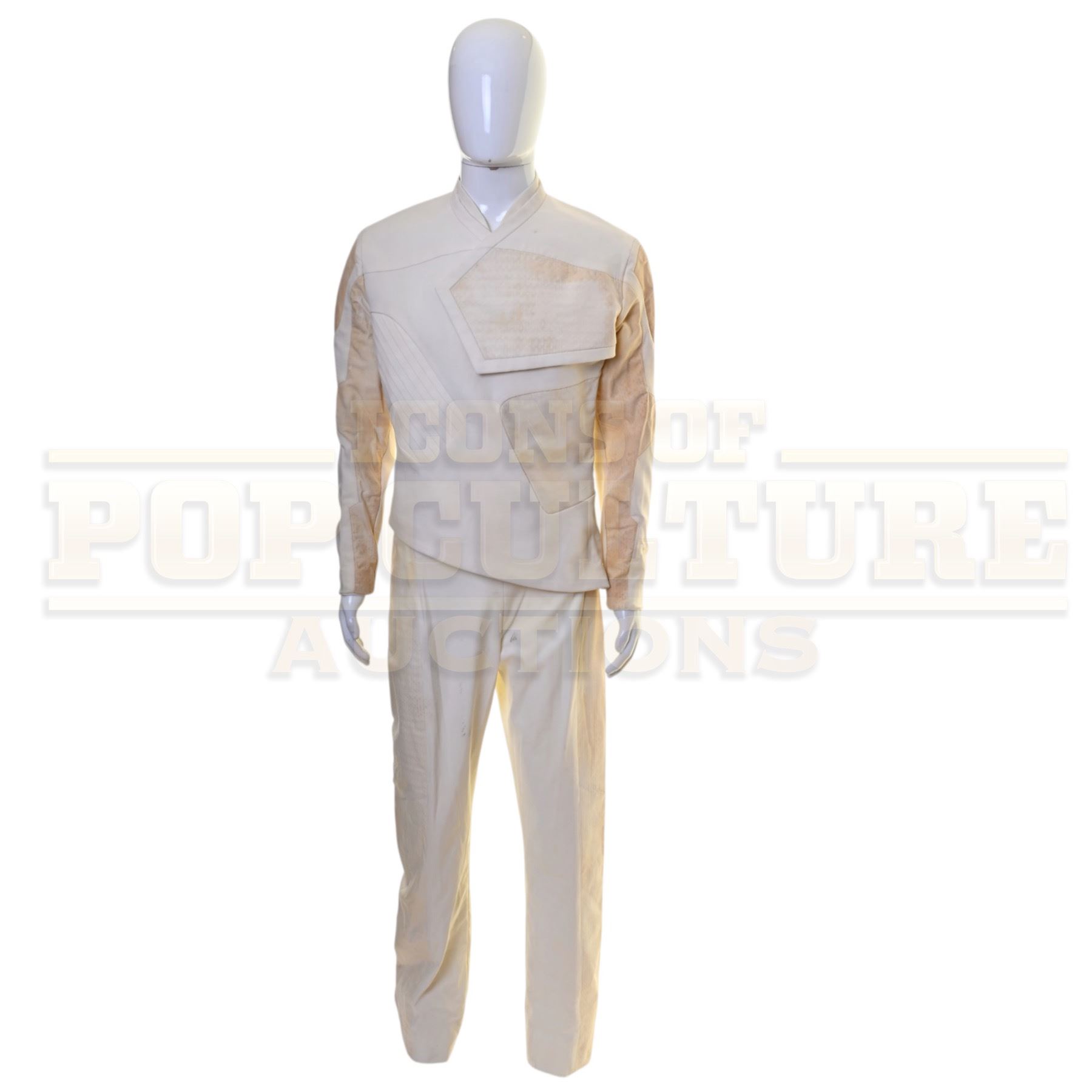 This military uniform was custom-made by the production for use by various actors. The uniform consists of a white tunic and a pair of white pants.