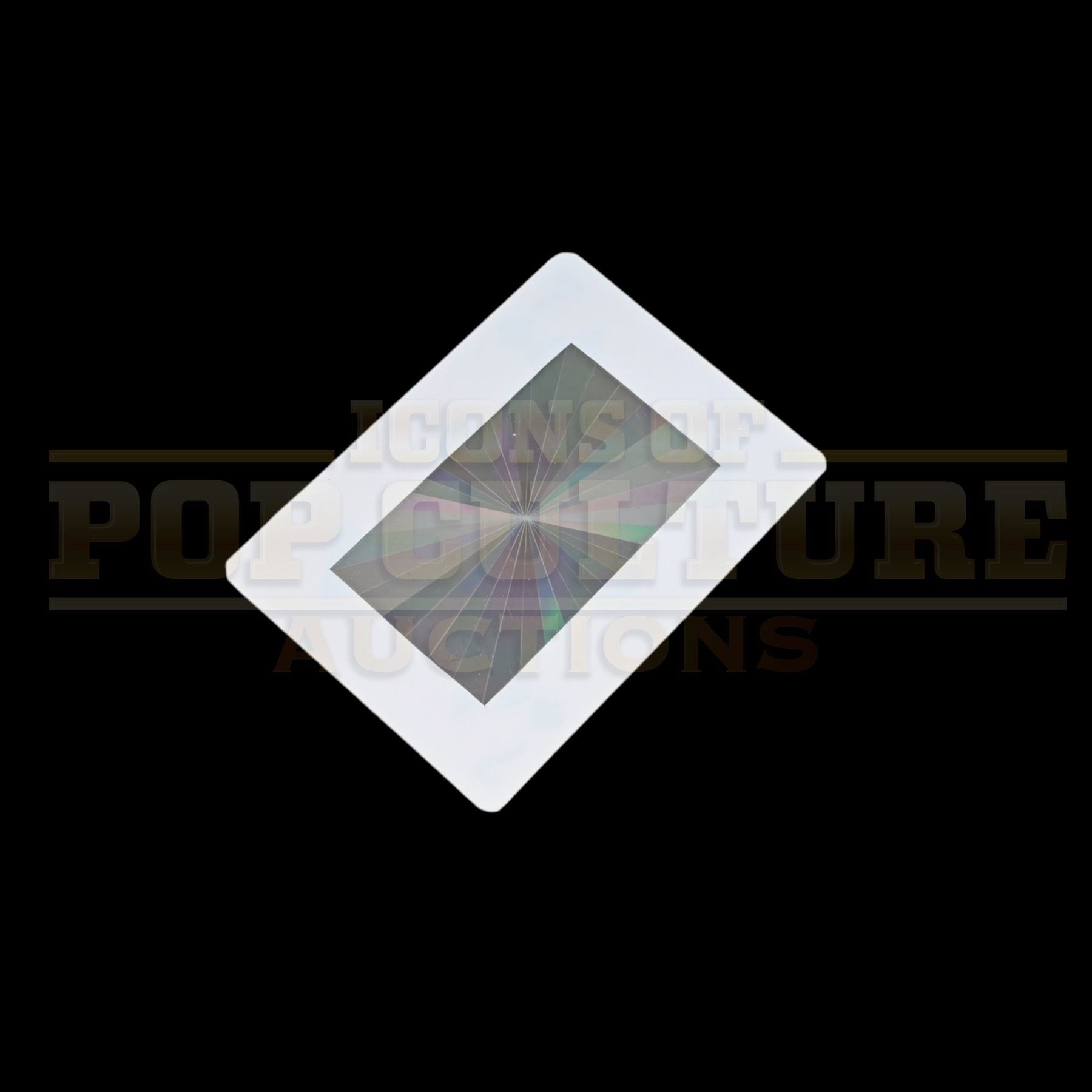 This prop card was custom-made by the production for use by Brendan Fraser as "DJ Drake" and Jenna Elfman as "Kate". The card features the x-ray window that allows DJ Drake and Kate to view the map within the Mona Lisapainting. The card is standard size, in good condition.