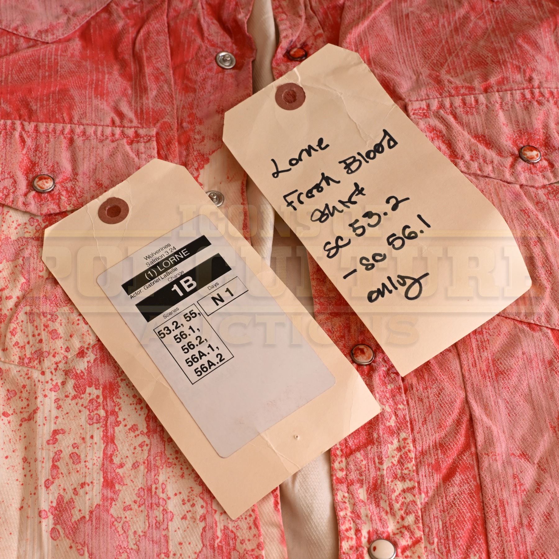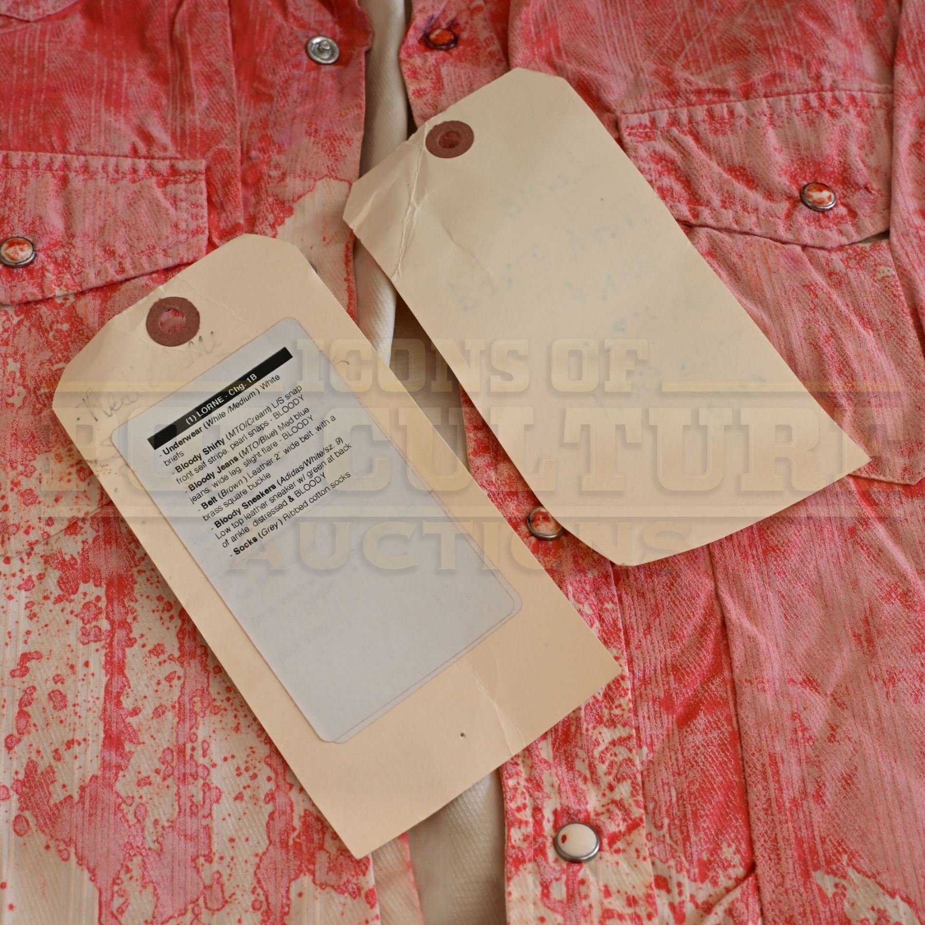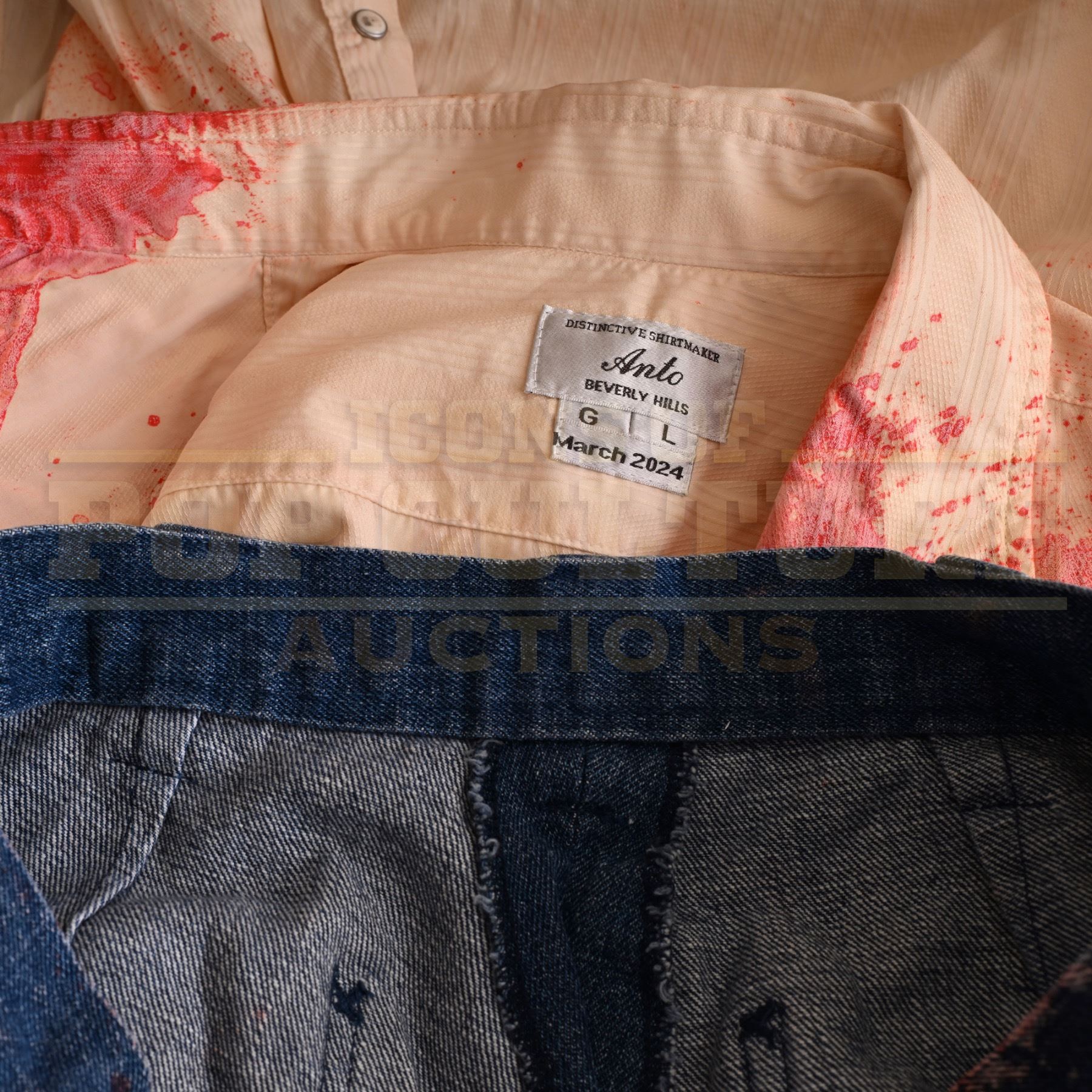 The item(s) may exhibit varying levels of wear and studio distressing, as detailed in the listing images that provide an accurate representation of the condition. All inner wardrobe tags have been photographed to offer insight into size and use. If tags are absent from the photographs, it indicates that they were removed by the studio, and no size information is available.