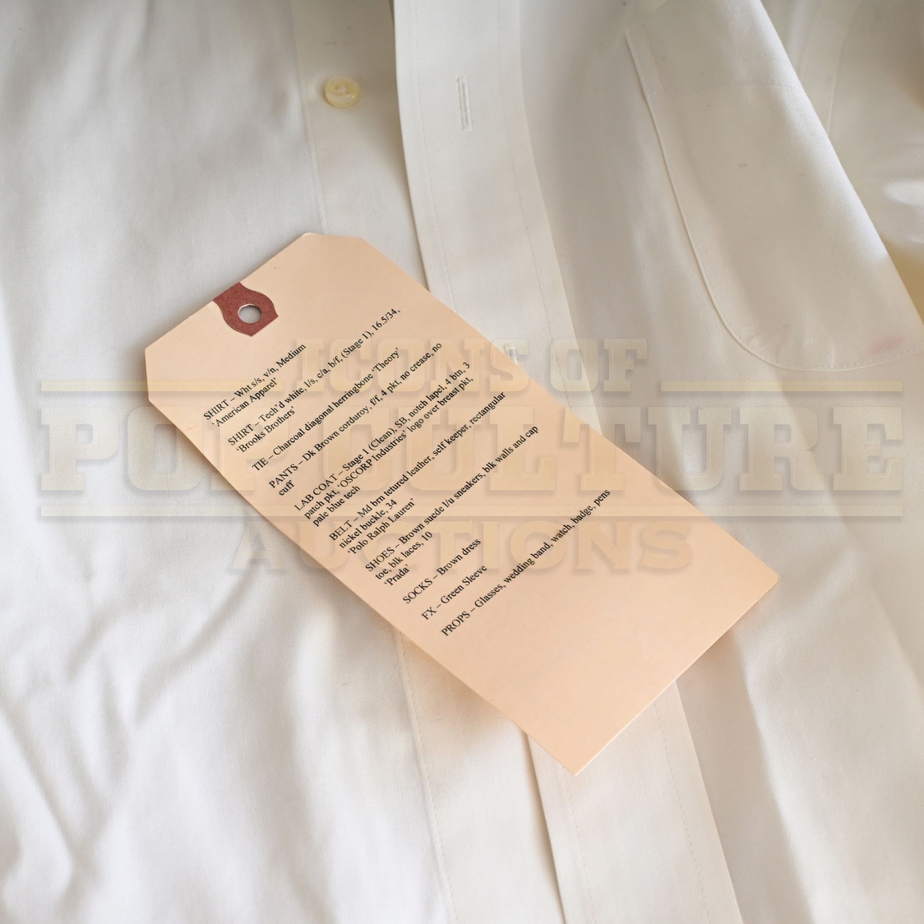 This is an original costume acquired by the production of the film "The Amazing Spider-Man". This costume is not a replica; it is an actual piece acquired by the production for use by Rhys Ifans as “Dr. Curt Connors”.