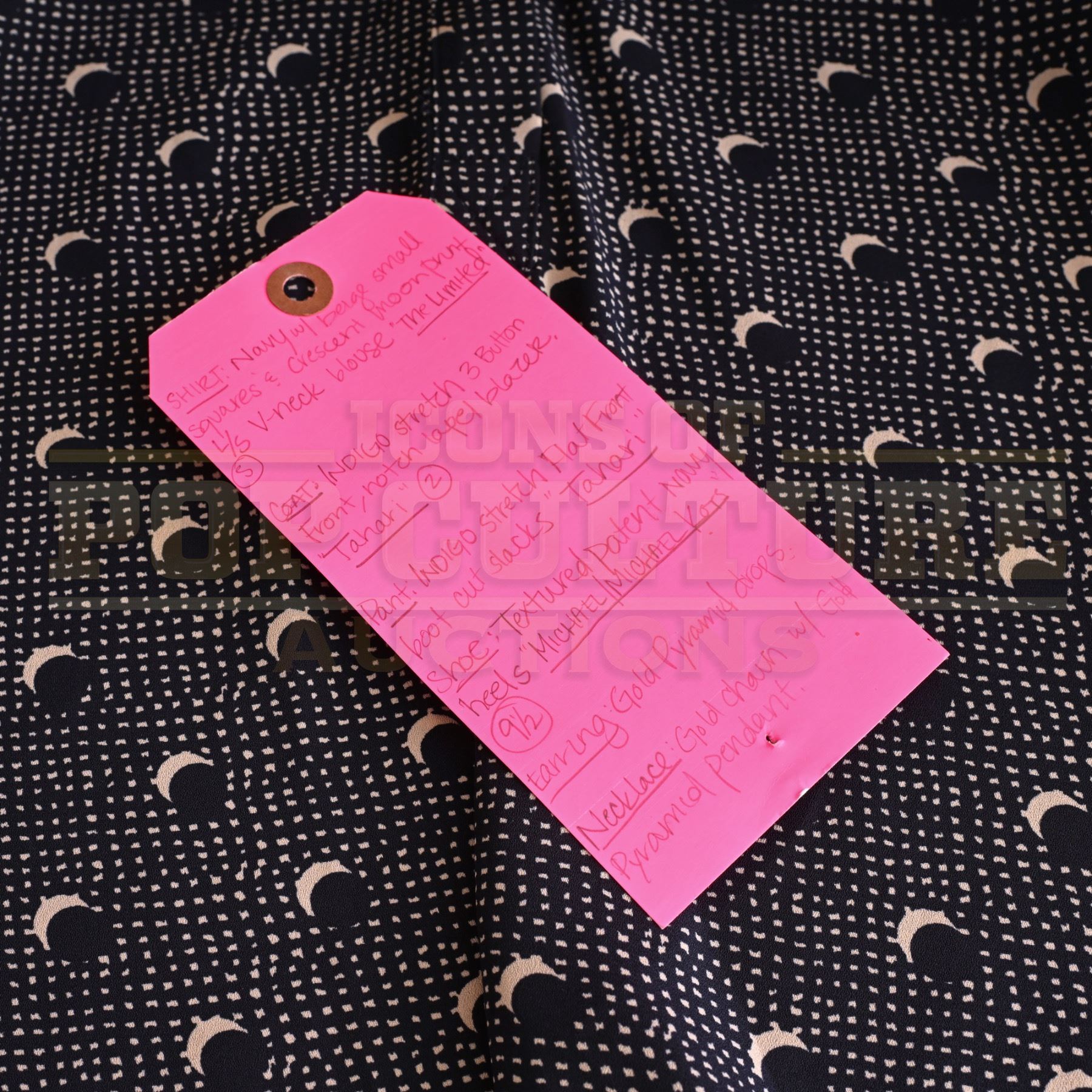 The item(s) may exhibit varying levels of wear and studio distressing, as detailed in the listing images that provide an accurate representation of the condition. All inner wardrobe tags have been photographed to offer insight into size and use. If tags are absent from the photographs, it indicates that they were removed by the studio, and no size information is available.