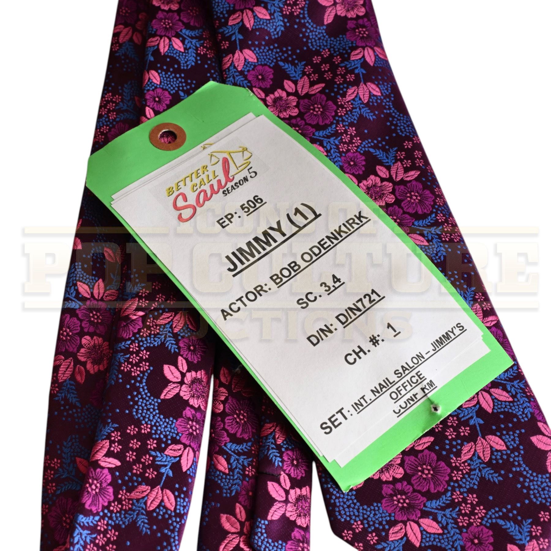 This is an original tie acquired by the production of the series "Better Call Saul" This tie is not a replica; it is an actual piece acquired by the production for use by Bob Odenkirk as “Jimmy McGill” in the season five episode titled “Wexler v. Goodman”. The tie was worn by Bob Odenkirk as “Jimmy McGill/Saul Goodman" during the scenes, as Jimmy and his video crew film a hit job on Mesa Verde at the nail salon. The tie features a unique pattern that is an exact screen mach in the episode.