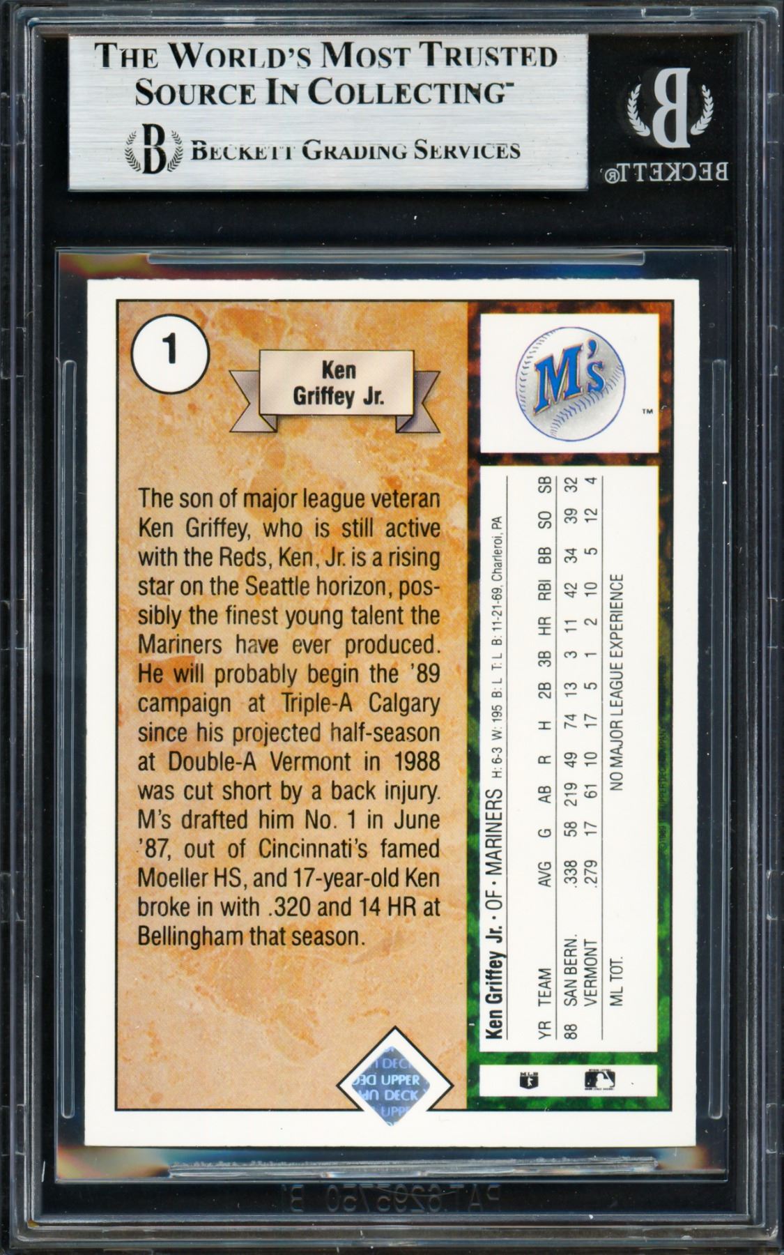 Lot 105 1989 UPPER DECK KEN GRIFFEY JR SIGNED TRADING CARD - BECKETT ENCASED