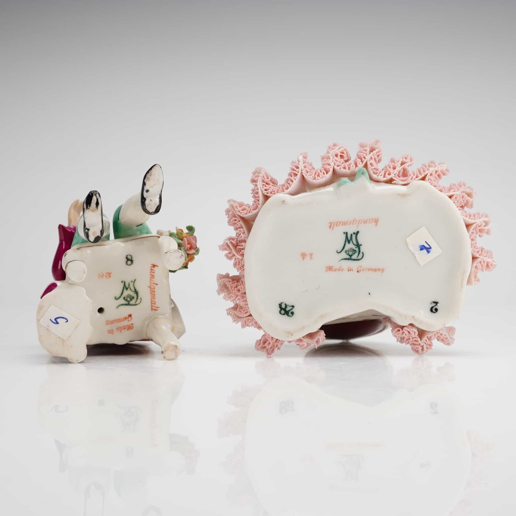 Lot 33 2pc Frankenthal Wessel Porcelain Lace Figurines