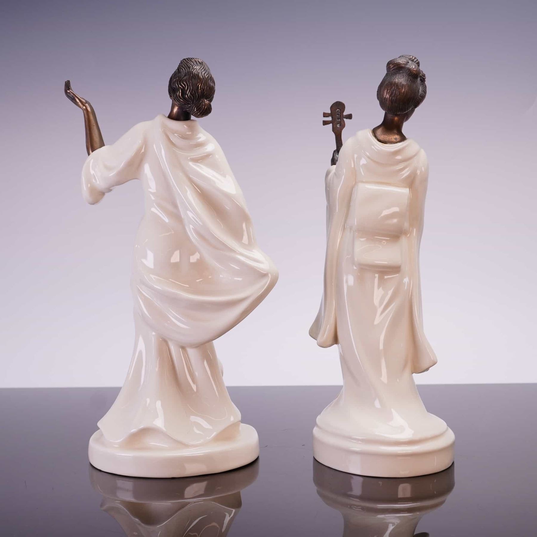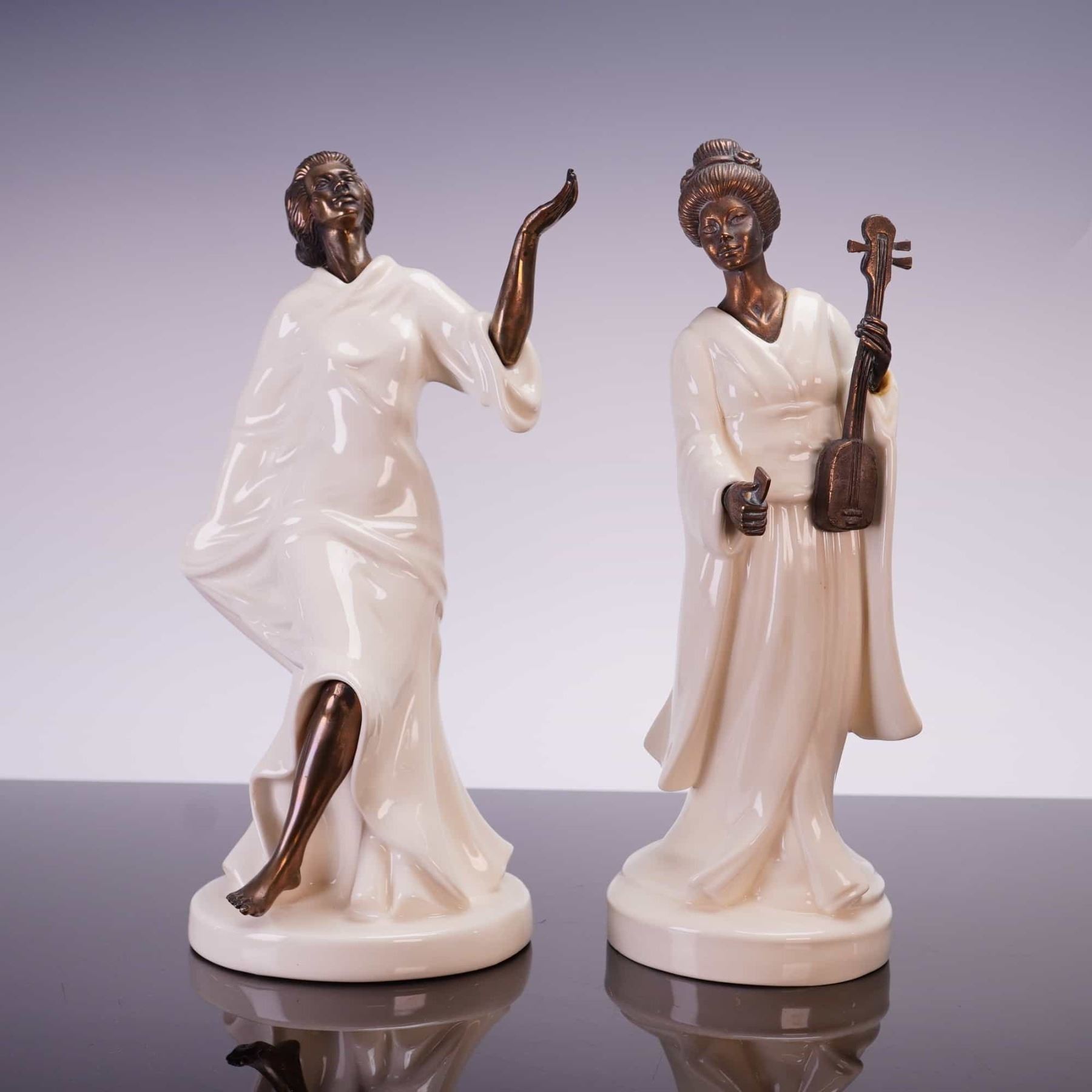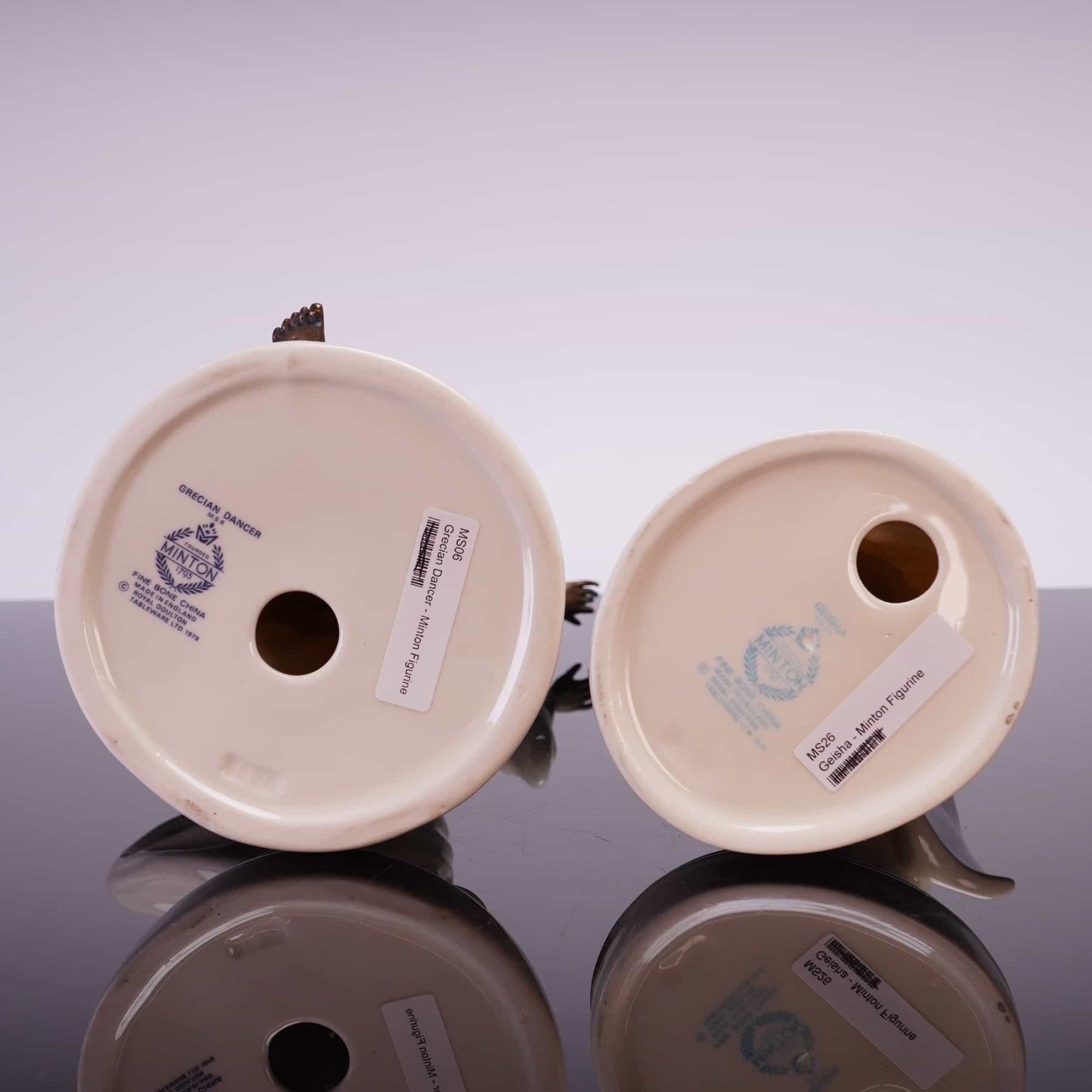 Lot 34 2pc Minton Bone China and Bronze Figurines, Grecian Dancer and Geisha