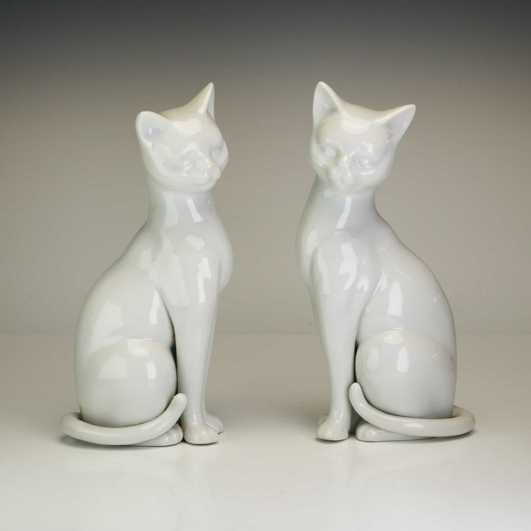 Lot 45 Pair of Otagiri Japanese White Porcelain Cat Figurines