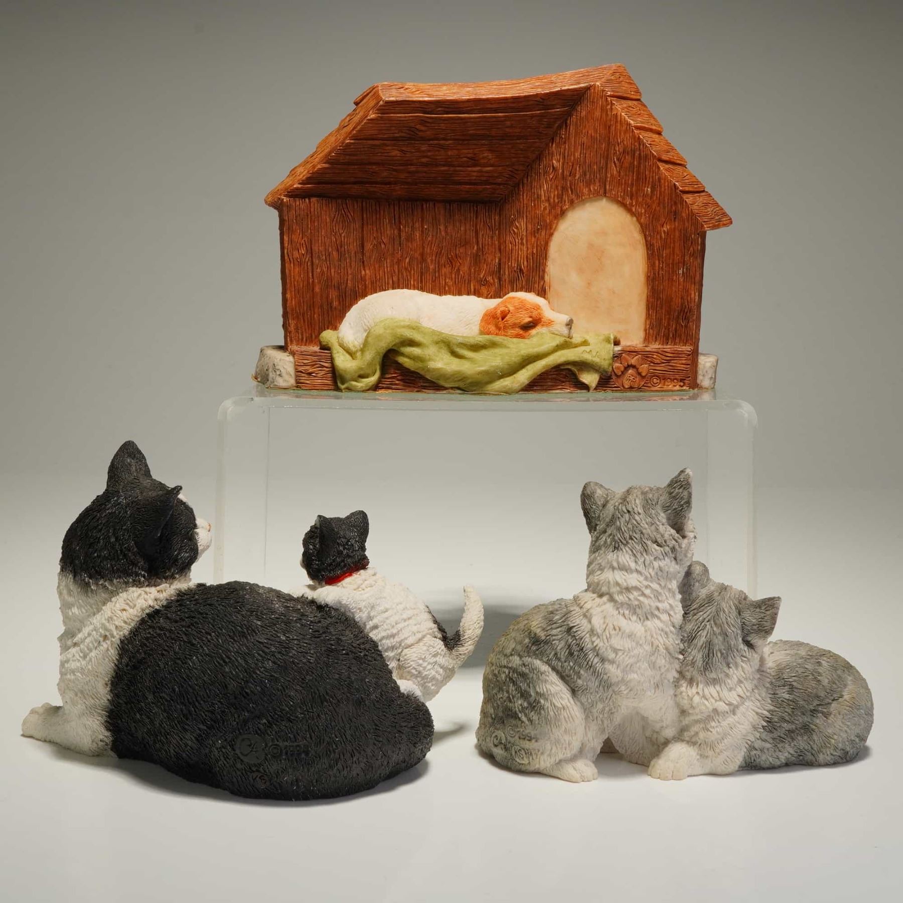 Lot 46 3pc Barkers and Country Artists Resin Cat and Dog Figurines