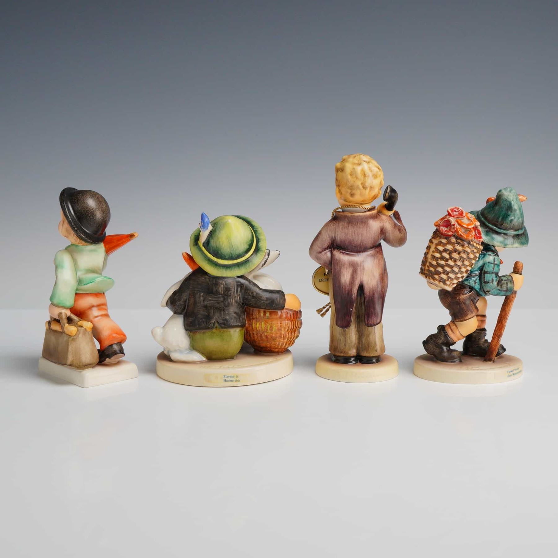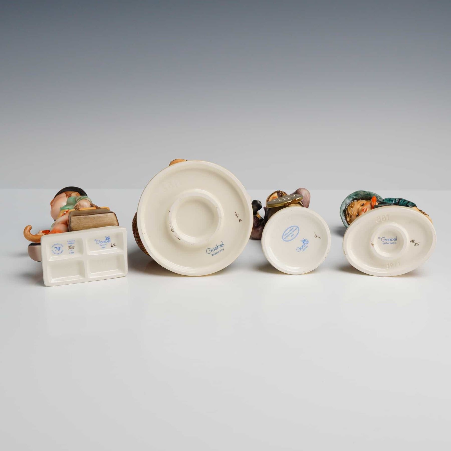Lot 91 Goebel M.I. Hummel Figurines, The Little Boss, Flower Vendor, Playmates, and Merry Wanderer