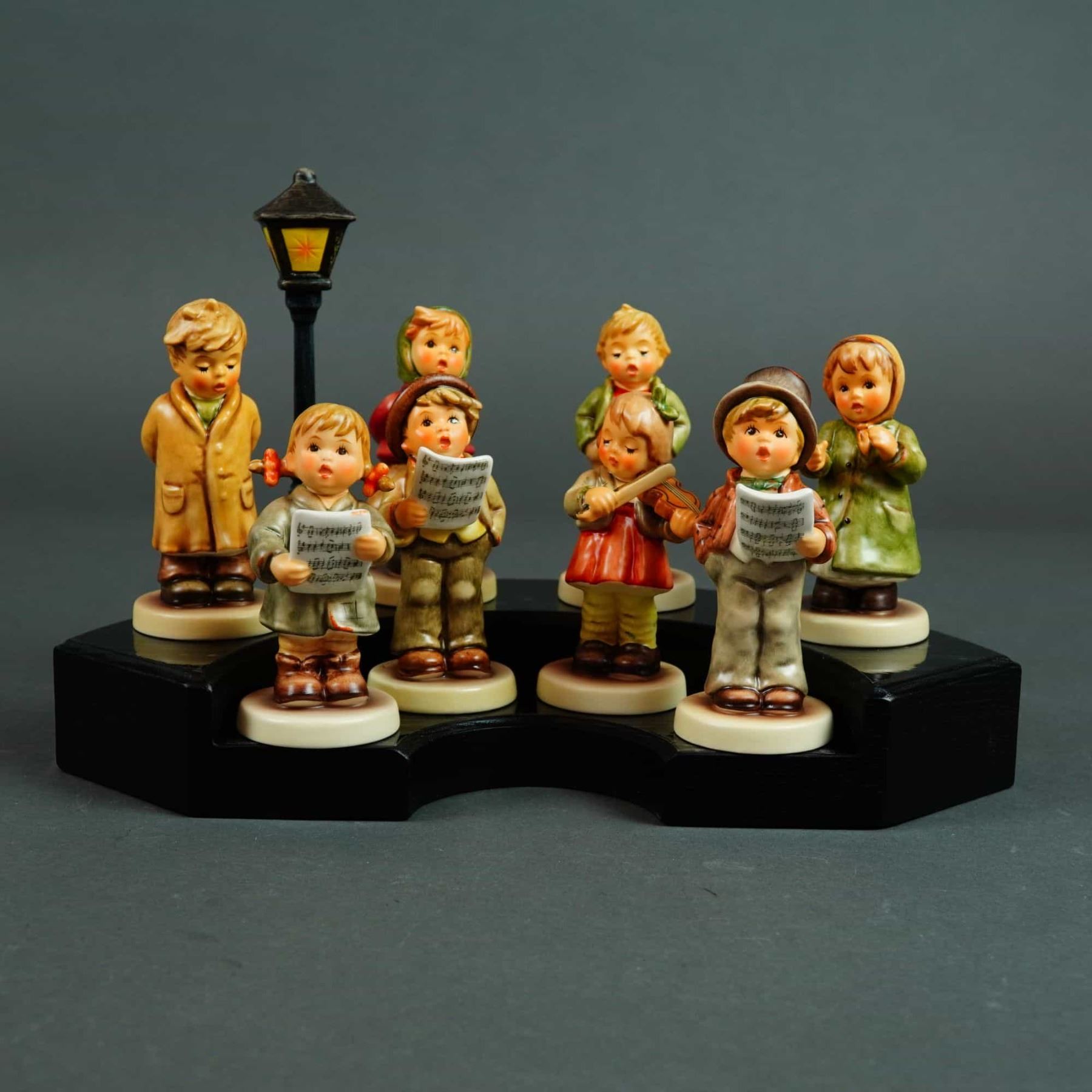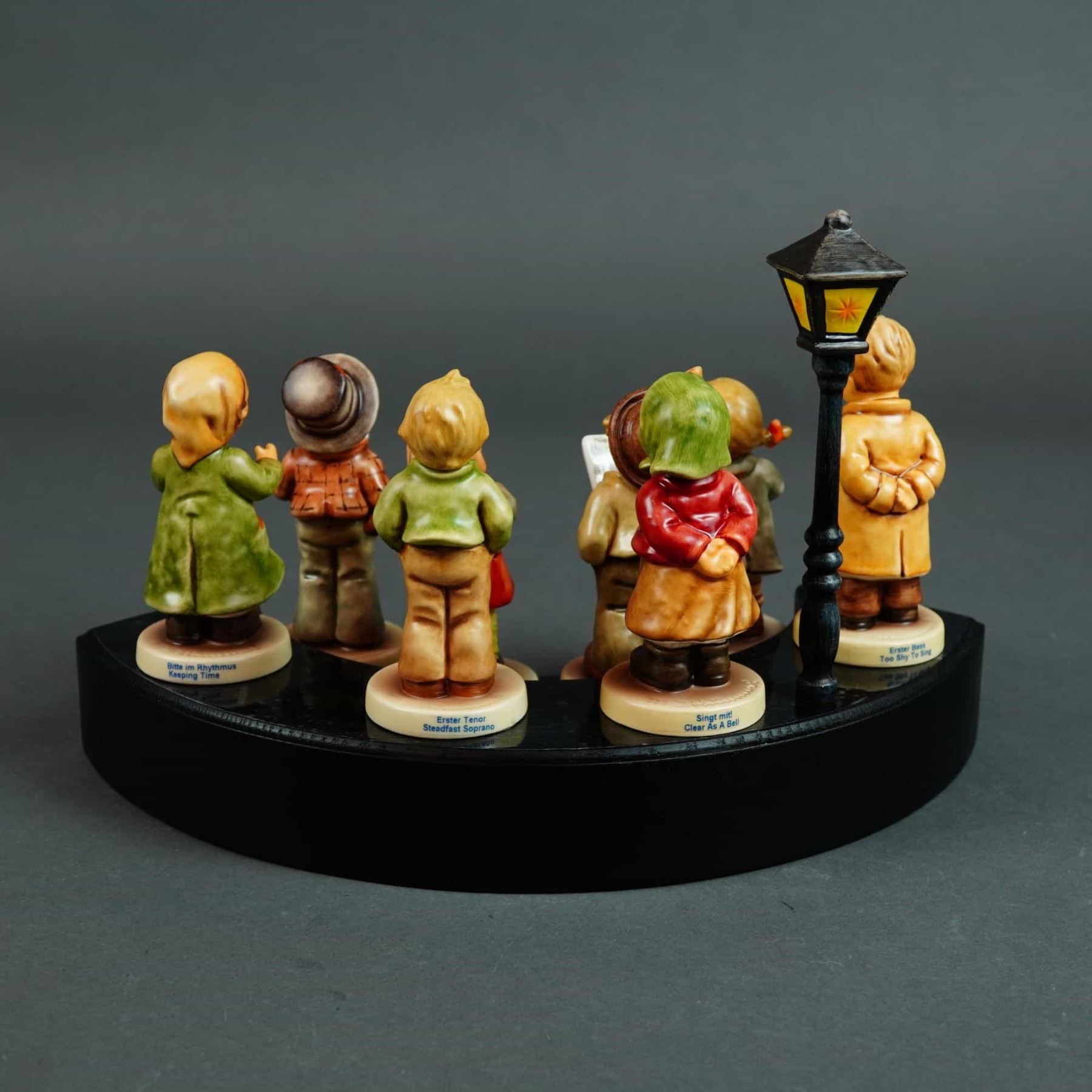 Lot 97 Goebel M.I. Hummel Kinder Choir 8-Piece Figurine Set with Lamppost Display Stand