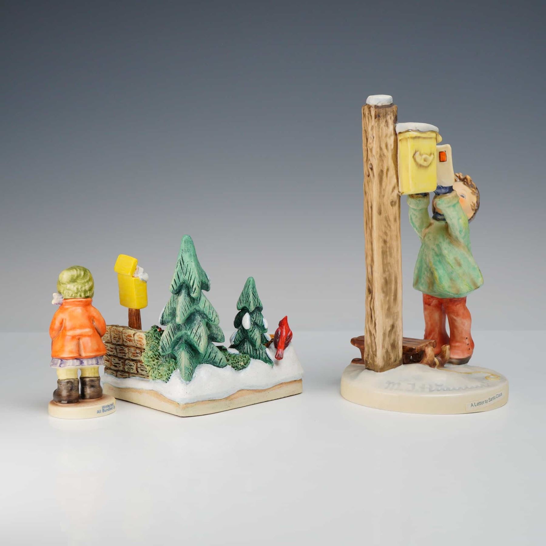 Lot 105 Three Goebel M.I. Hummel Winter Figurines and Scenic Display Base including A Letter to Santa Claus
