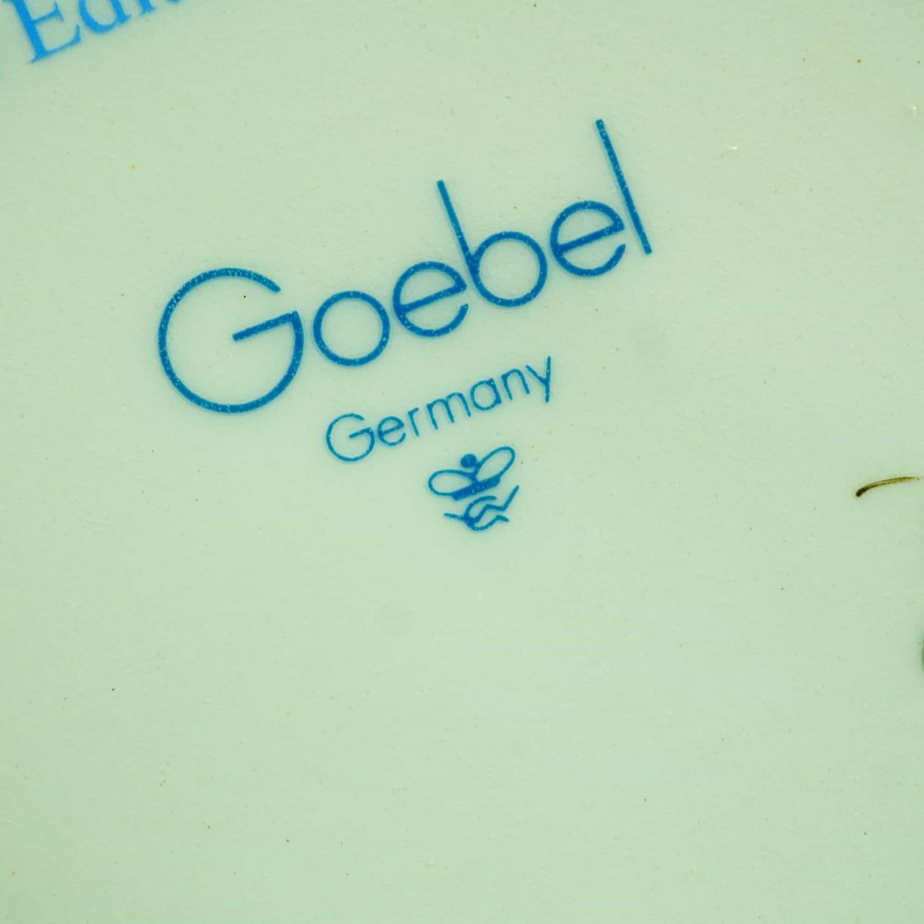 This collection of four hand-painted porcelain figurines was produced by Goebel, Germany, based on the designs of Sister Maria Innocentia Hummel. The set includes I'm Carefree (Model No. 688), a 1994 First Issue depicting a child in a yellow cart; Spotlight (Model No. 784), a limited edition of 7,598 pieces featuring a boy reading a Goebel-Gazette with a Warner Bros. Looney Tunes logo; The Runaway (Model No. 327), showing a young boy with a walking stick and basket; and The Professor (Model No. 320), depicting a young scholar at a desk with a small dog. Each 4 hum figurine features a matte bisque finish and is marked with the blue Goebel Germany or W. Germany trademark, impressed model numbers, and various edition or title stickers. Heights range from 4 to 5.75 inches.