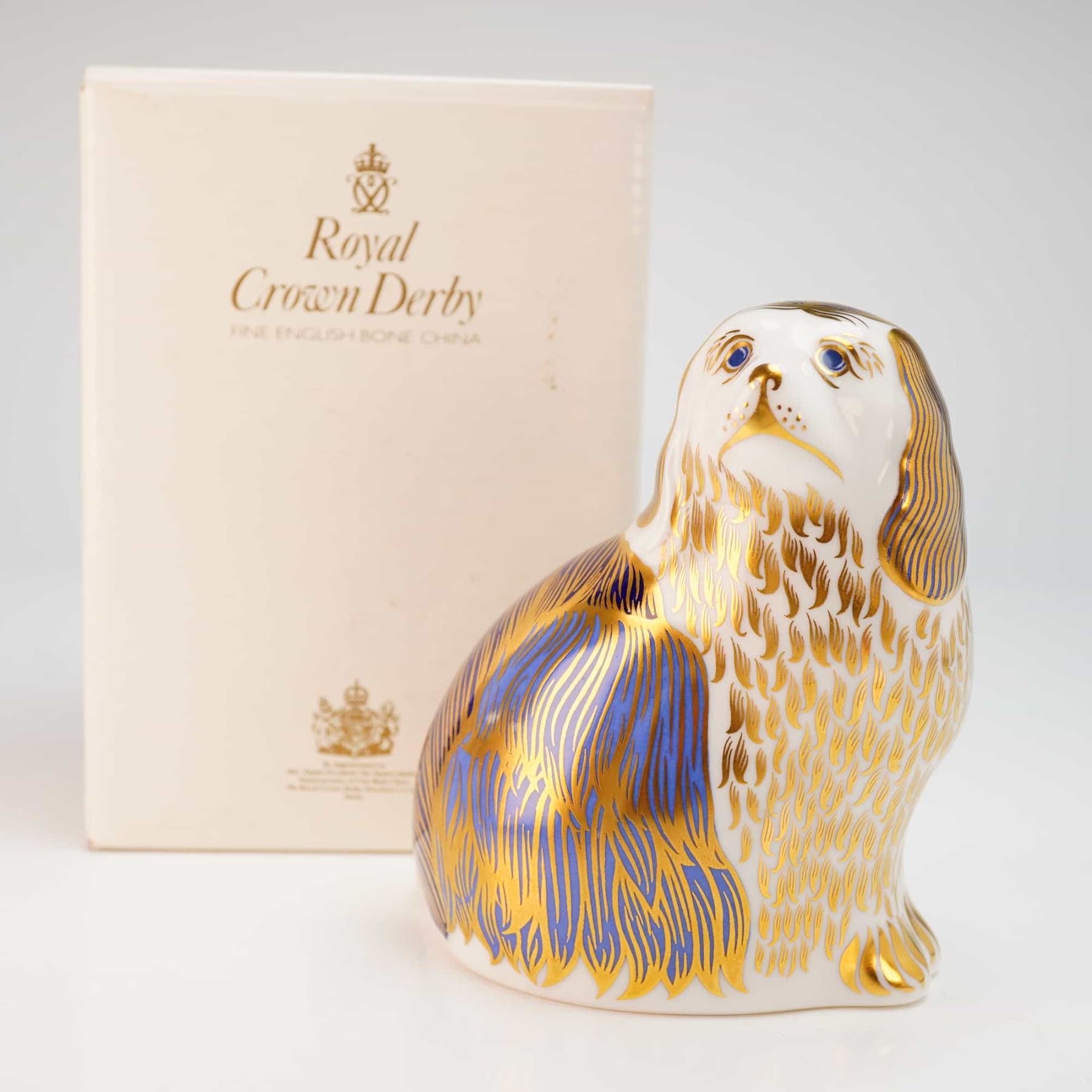 Lot 128 Royal Crown Derby King Charles Spaniel Paperweight with Box
