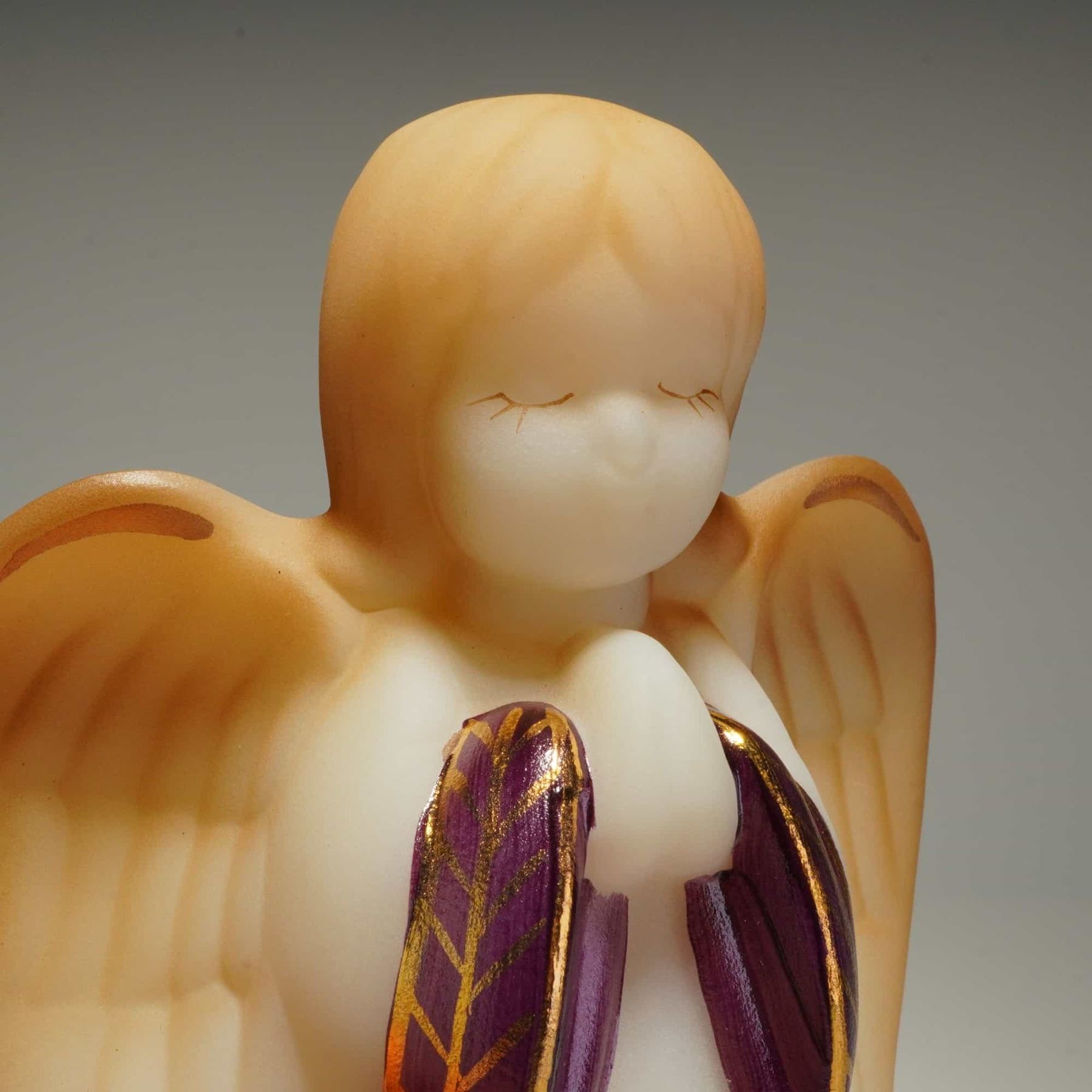 Lot 145 Fenton Satin Art Glass Hand Painted Praying Angel Bell Figurine by P. Fleak