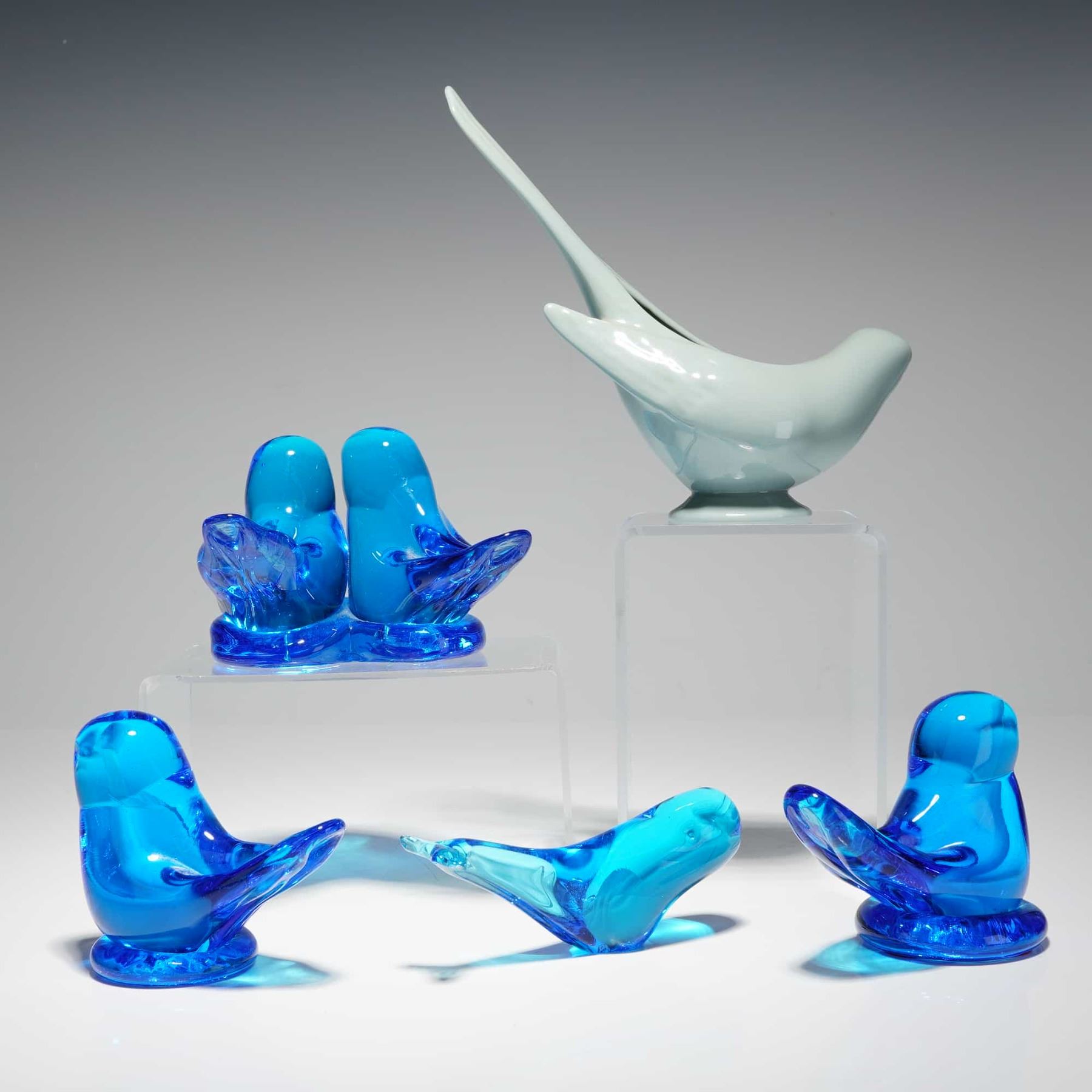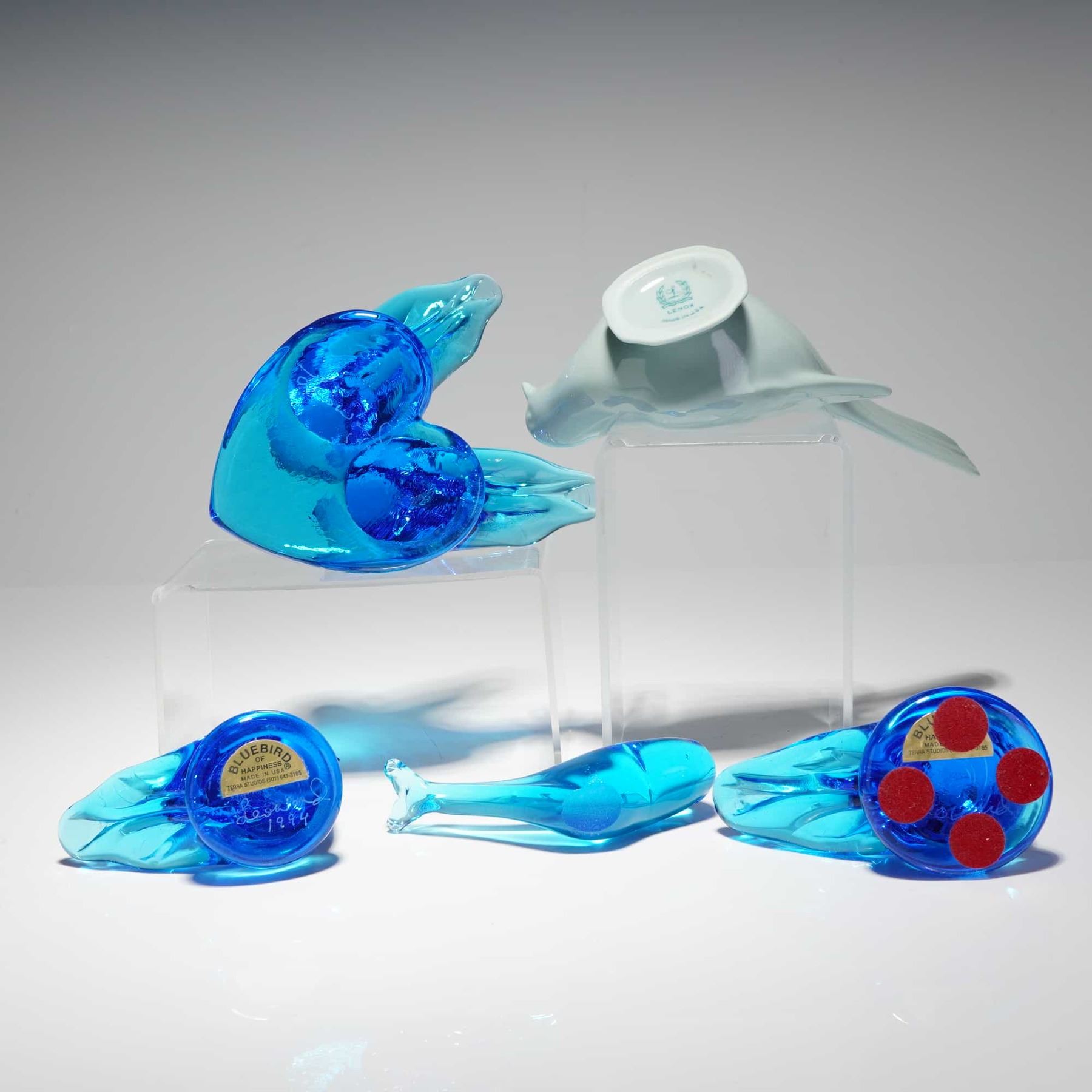 Lot 178 5pc Terra Studios and Lenox, Bluebird of Happiness, Cobalt and Celadon, Animal Figurines