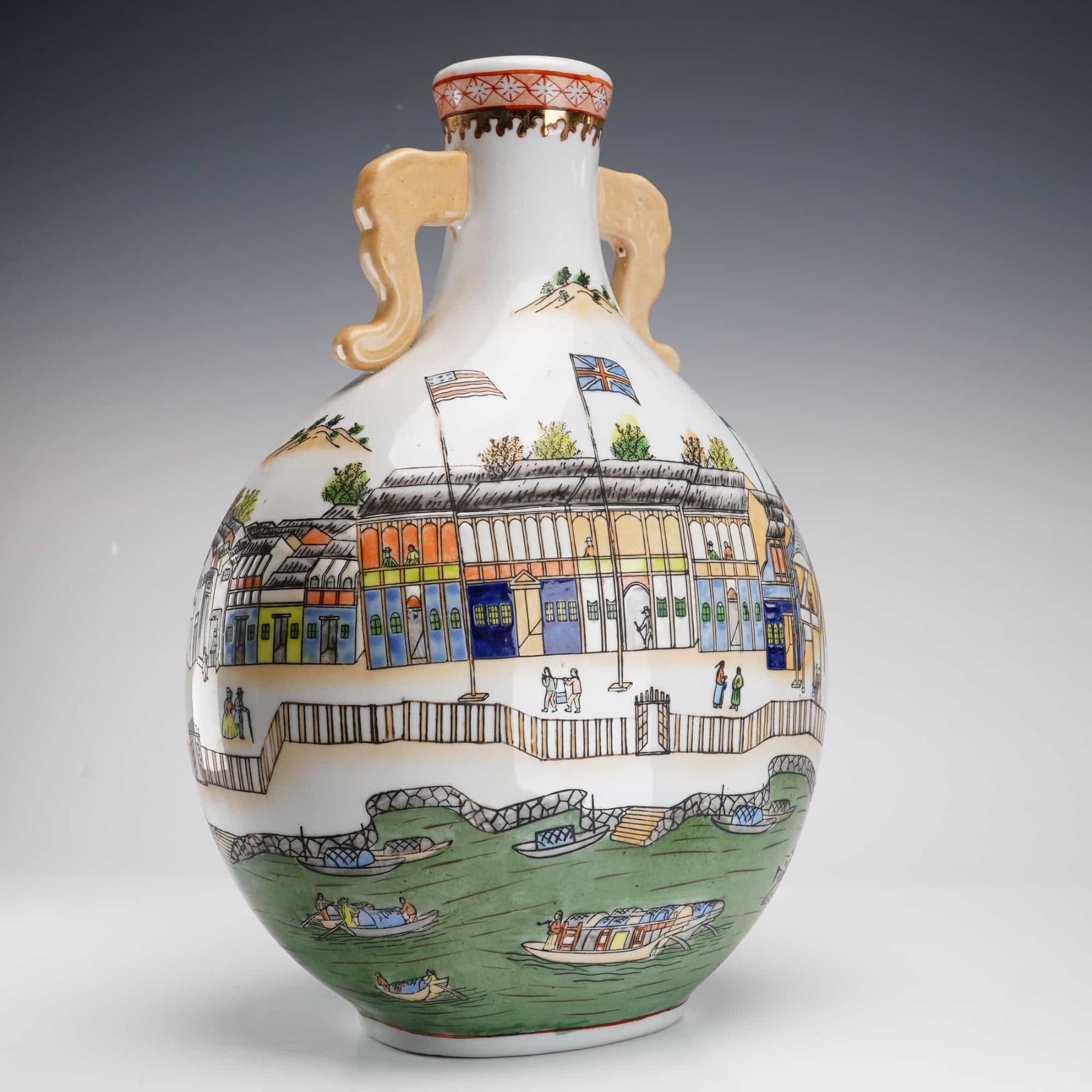 Lot 192 Chinese Porcelain Double-Handle Vase, View of Canton, China