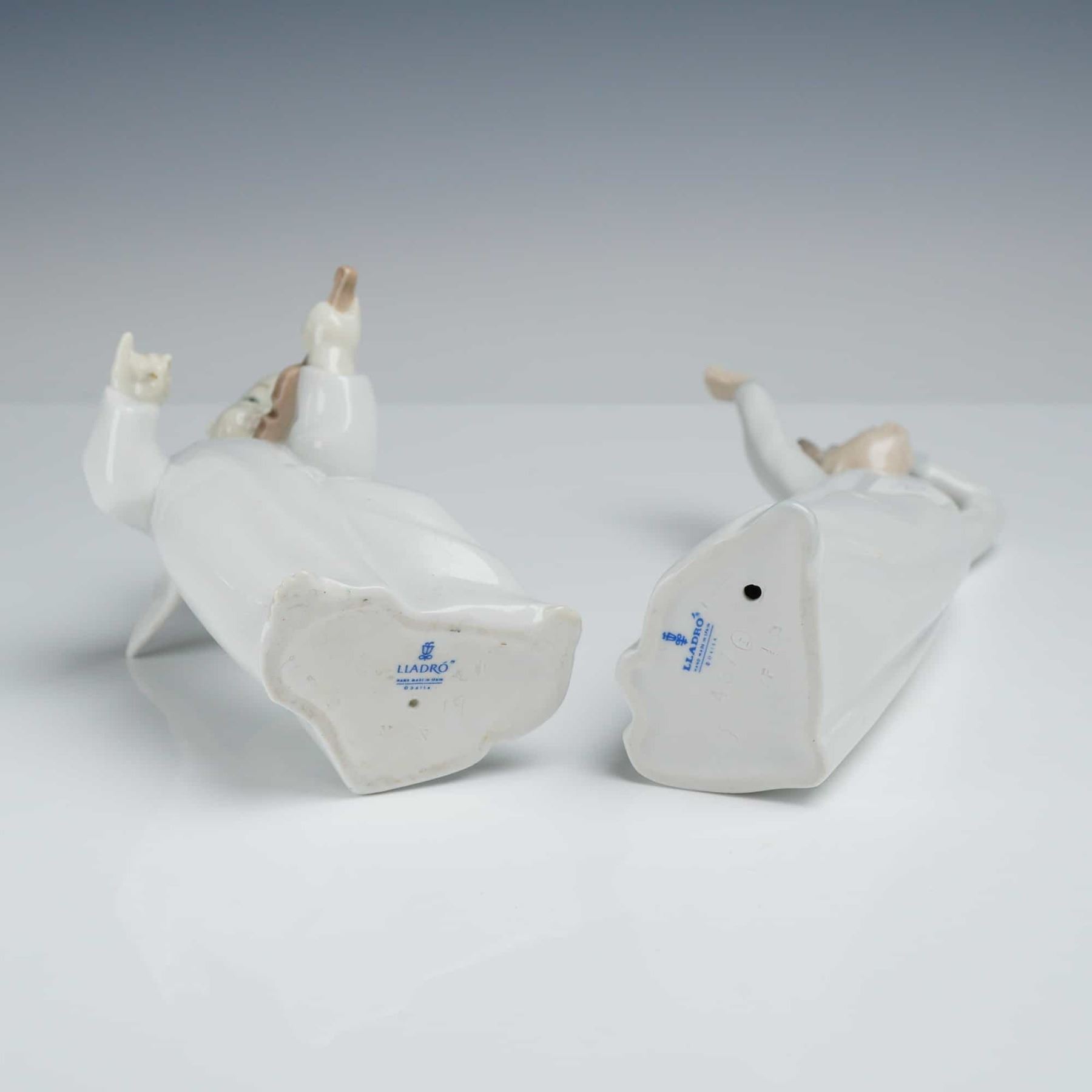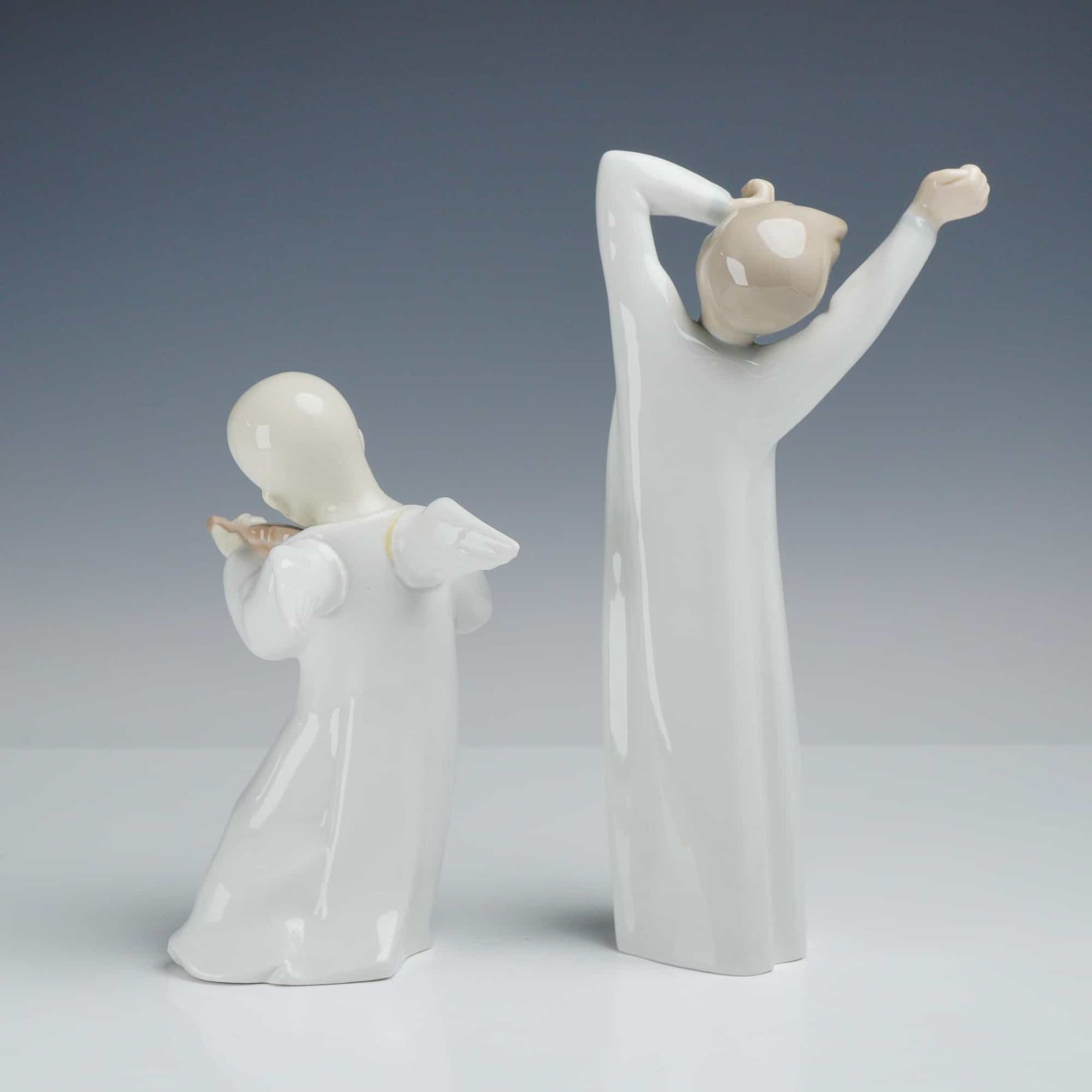 Collection of Lladro porcelain figures, including Chinese Angel (01004536) and Boy Yawning (01004870). Both figures are crafted by Fulgencio Garcia. Each figure bears the Lladro backstamps.