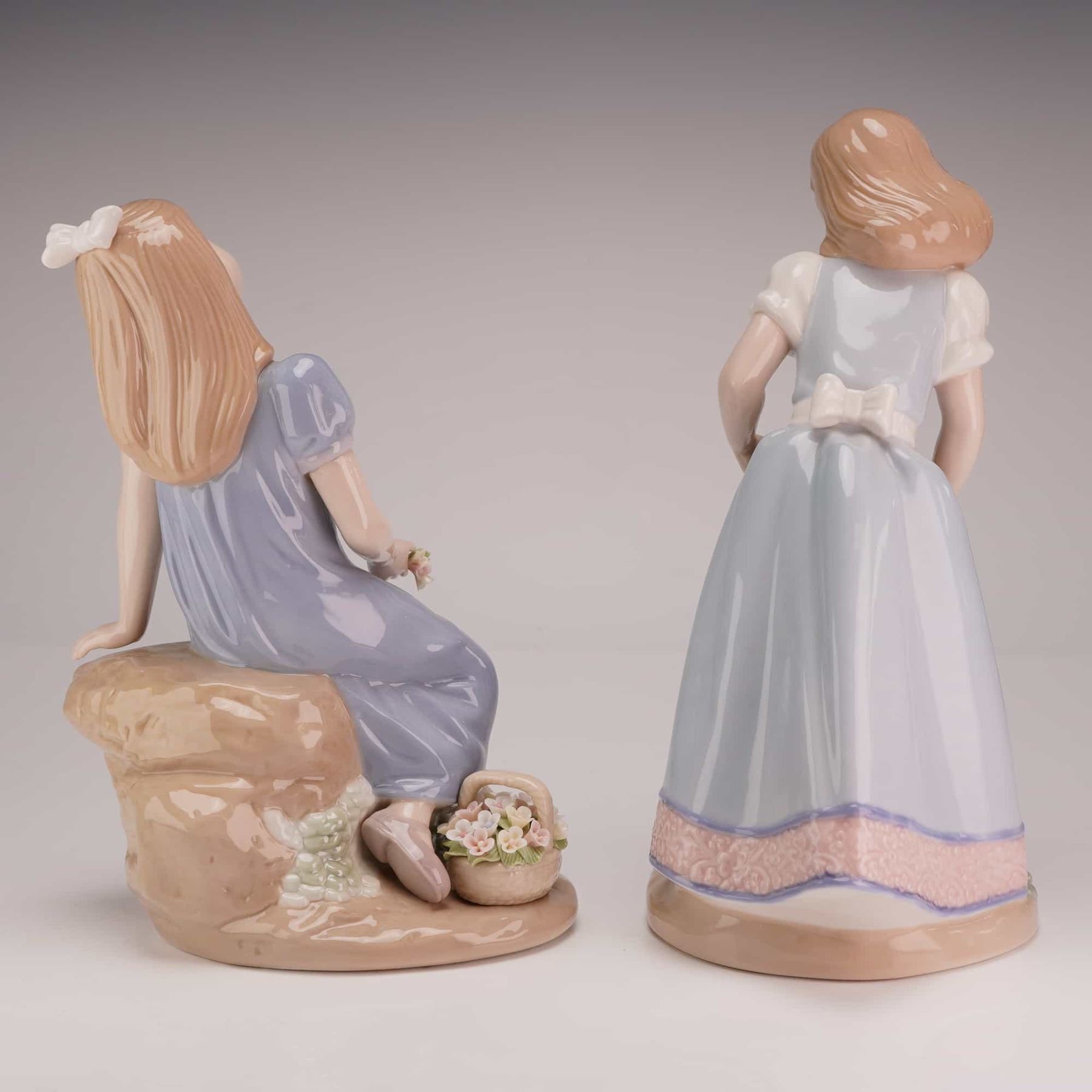 Lot 252 2pc Nadal Glazed Porcelain Figurines of Girls with Flowers