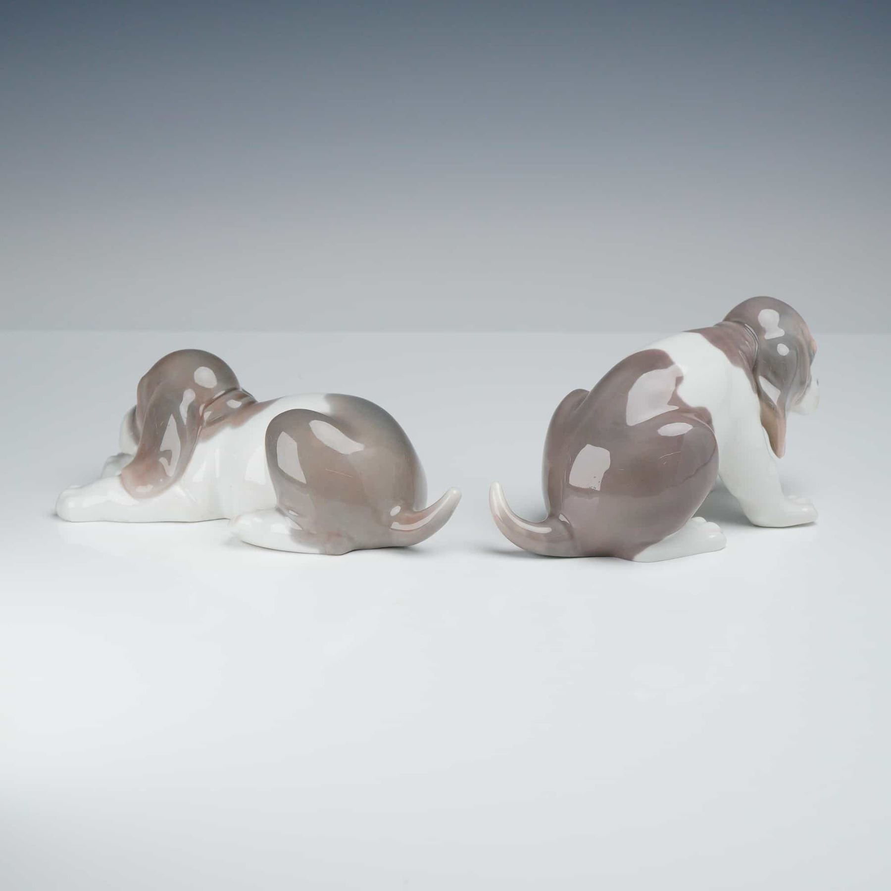 Lot 254 Two Lladro Porcelain Beagle Puppy Figurines, Sitting 01001071 and Lying 01001072