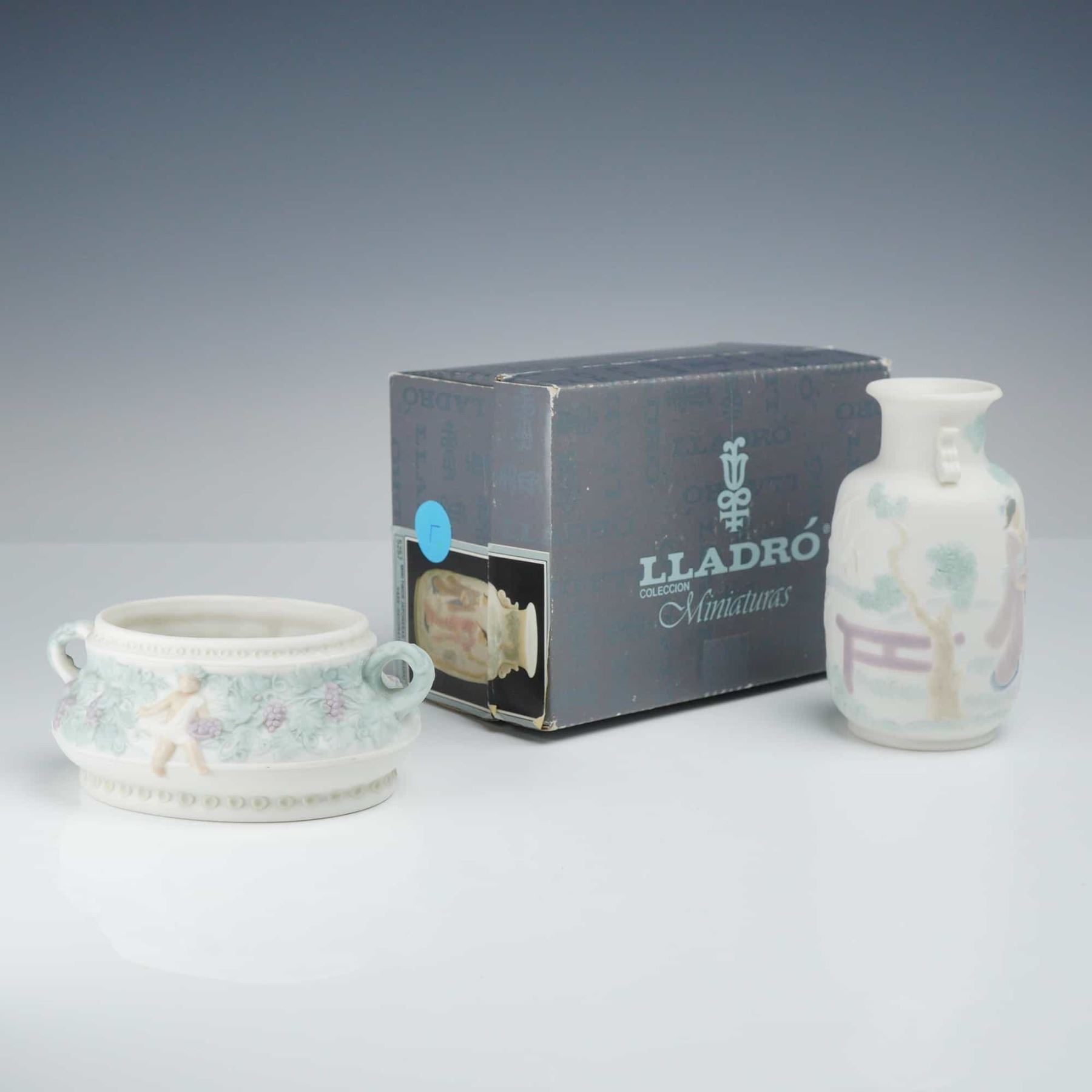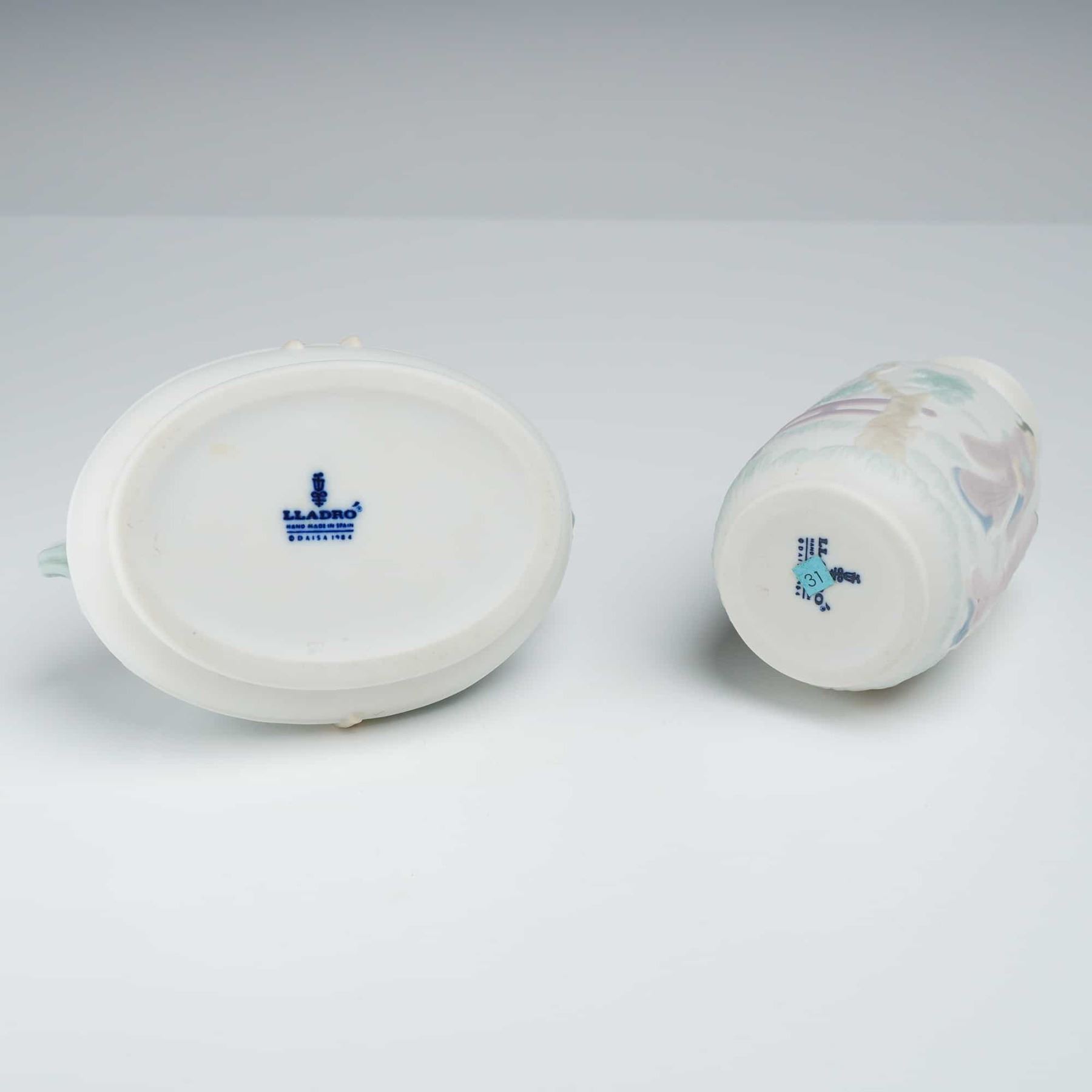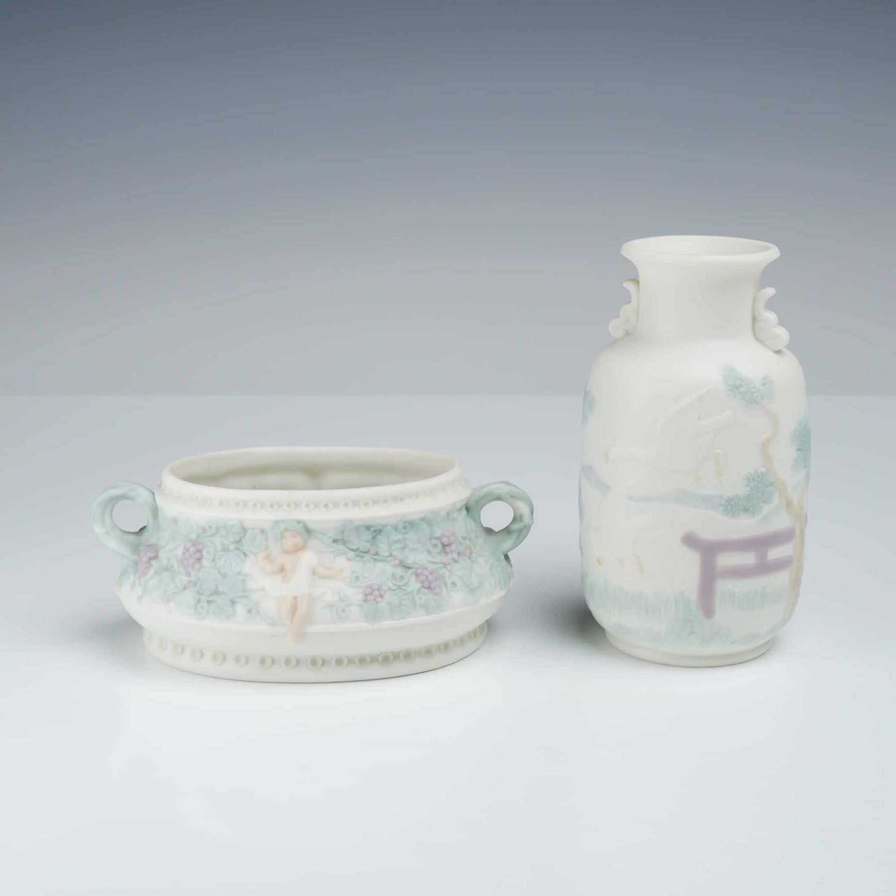 Lot 266 Two Lladro Miniature Bisque Porcelain Vase and Handled Dish